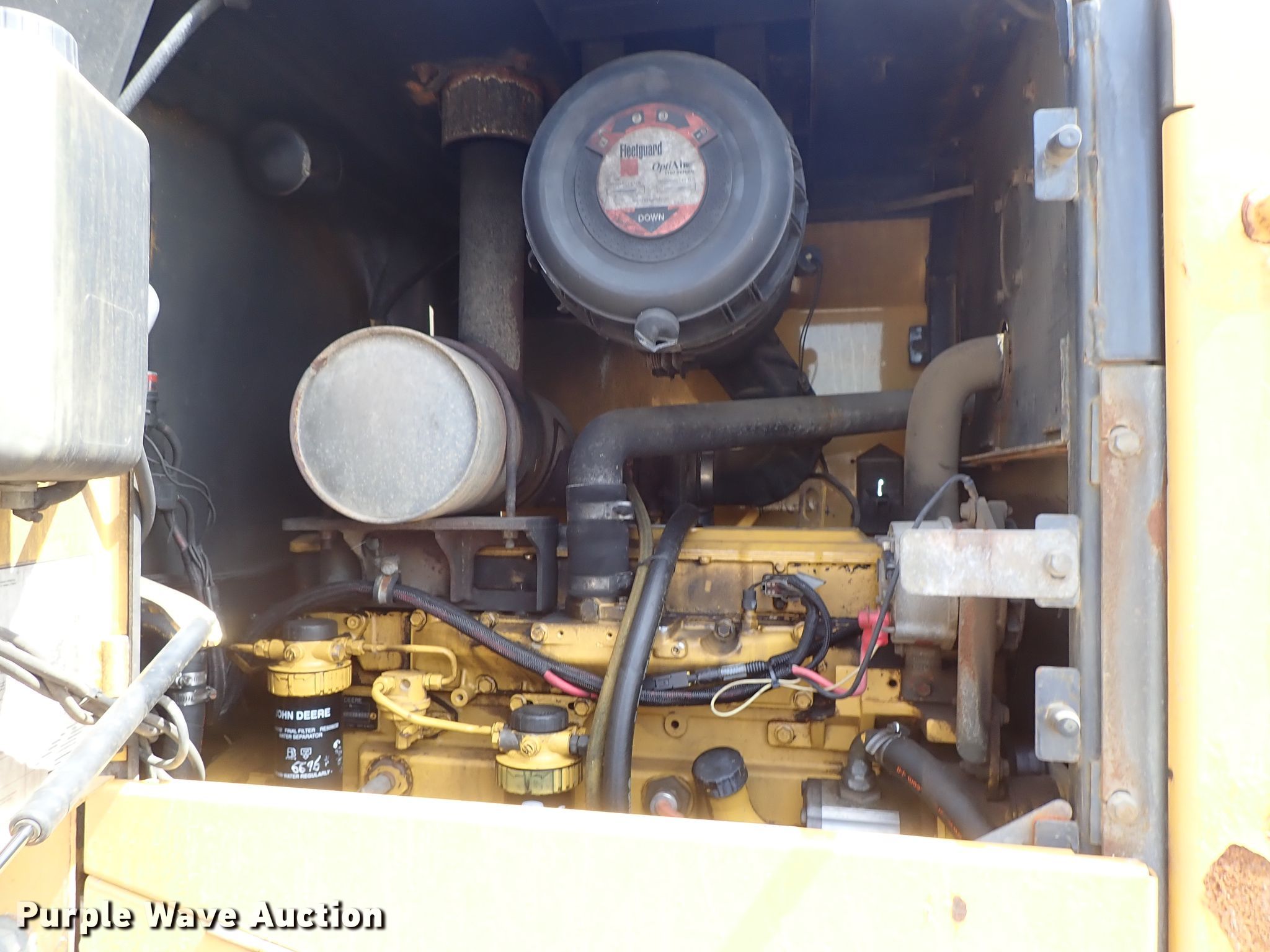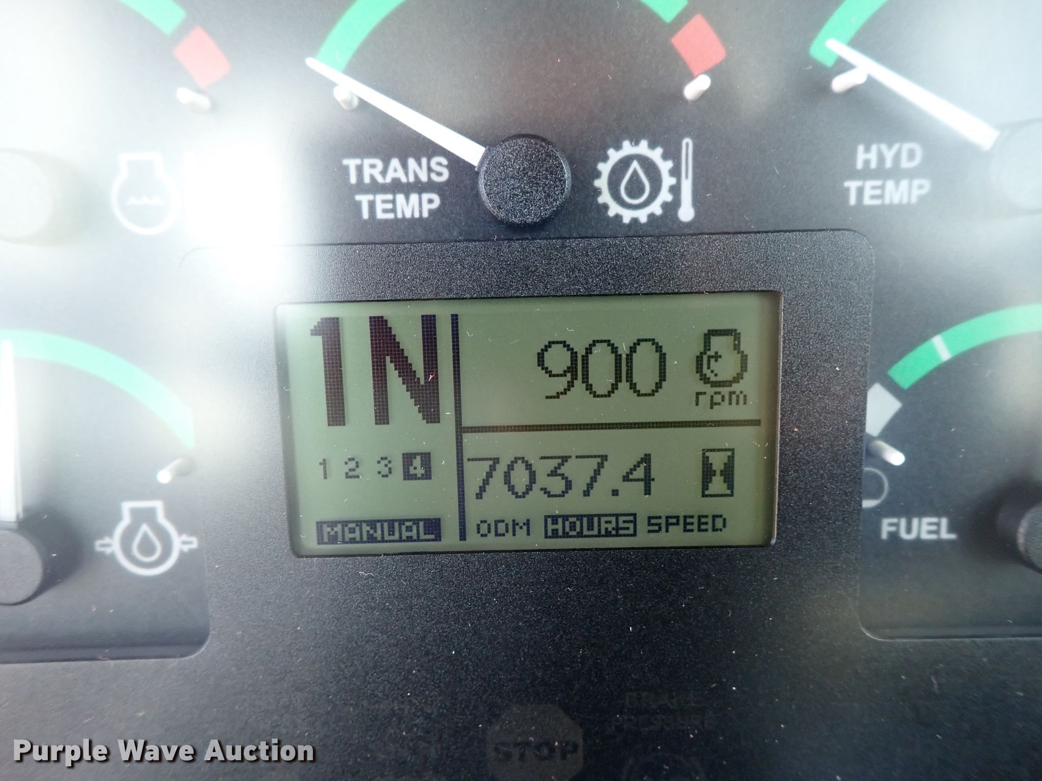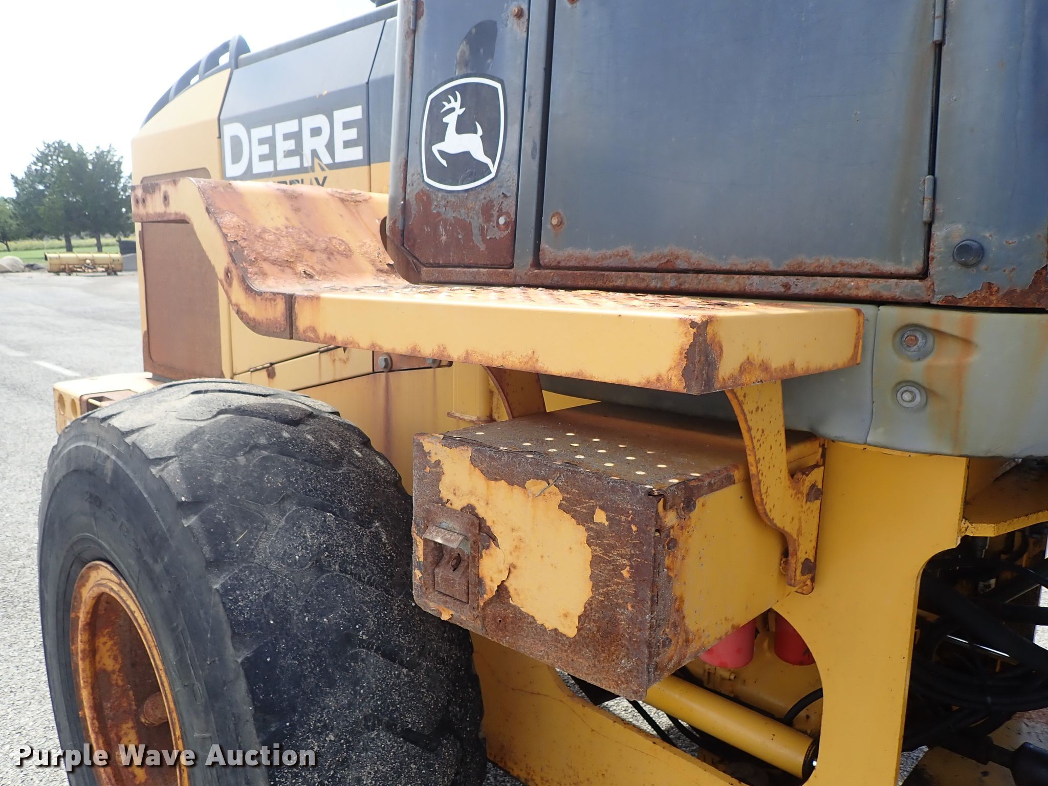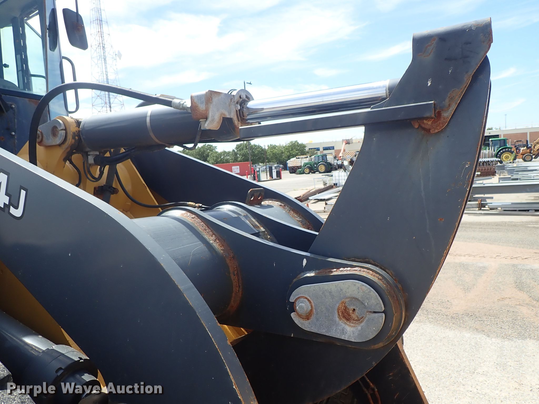 Purple Wave is selling a used Wheel Loader in Kansas. This item is a 2005 John Deere 624J wheel loader with the following: 7,037 hours on meter, John Deere six cylinder diesel engine, Powershift transmission, 4F-4R gears, Enclosed cab, AC and heat, Joystick bucket controls, 104"W general purpose bucket, Bolt-on cutting edge, Pallet forks, 20.5R25 tires, Serial DW624JZ596003, Unit# 2201