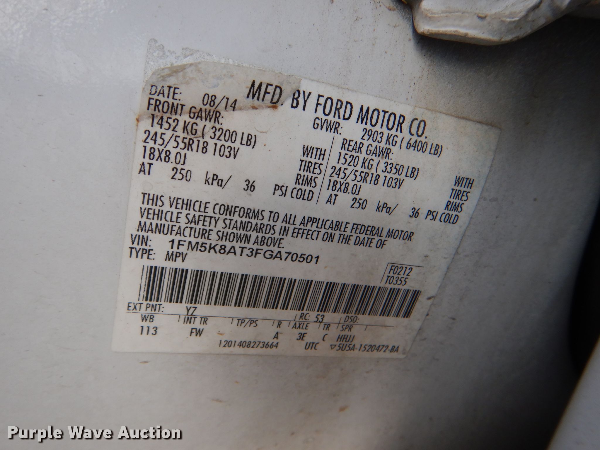 1FM5K8AT3FGA70501