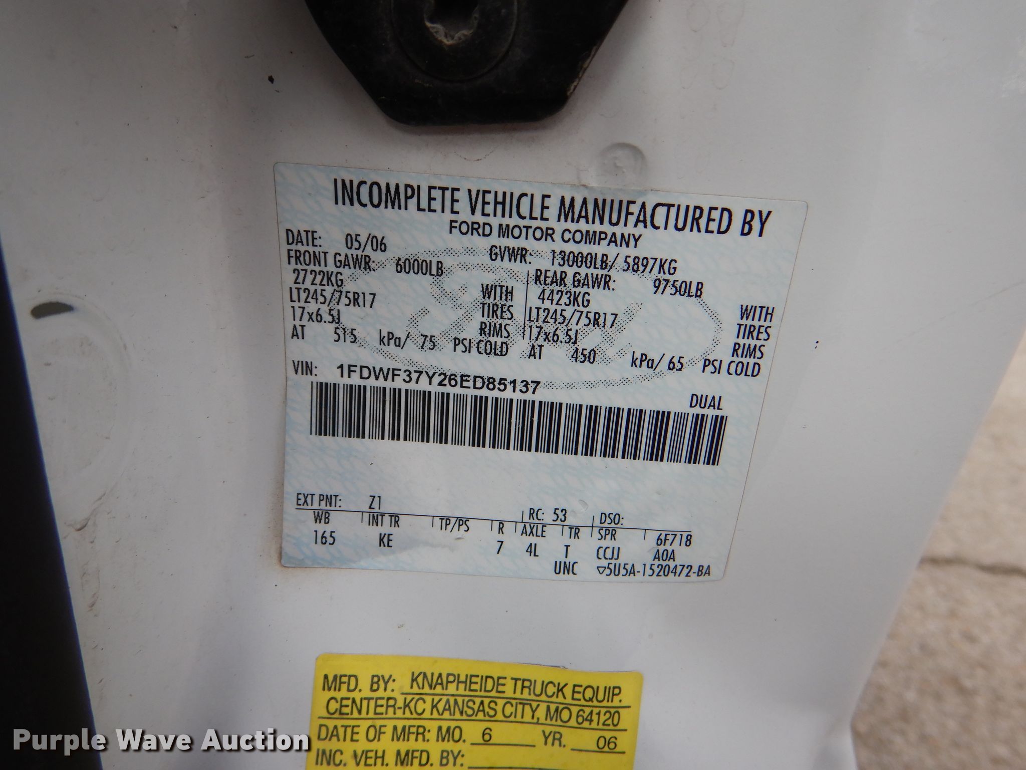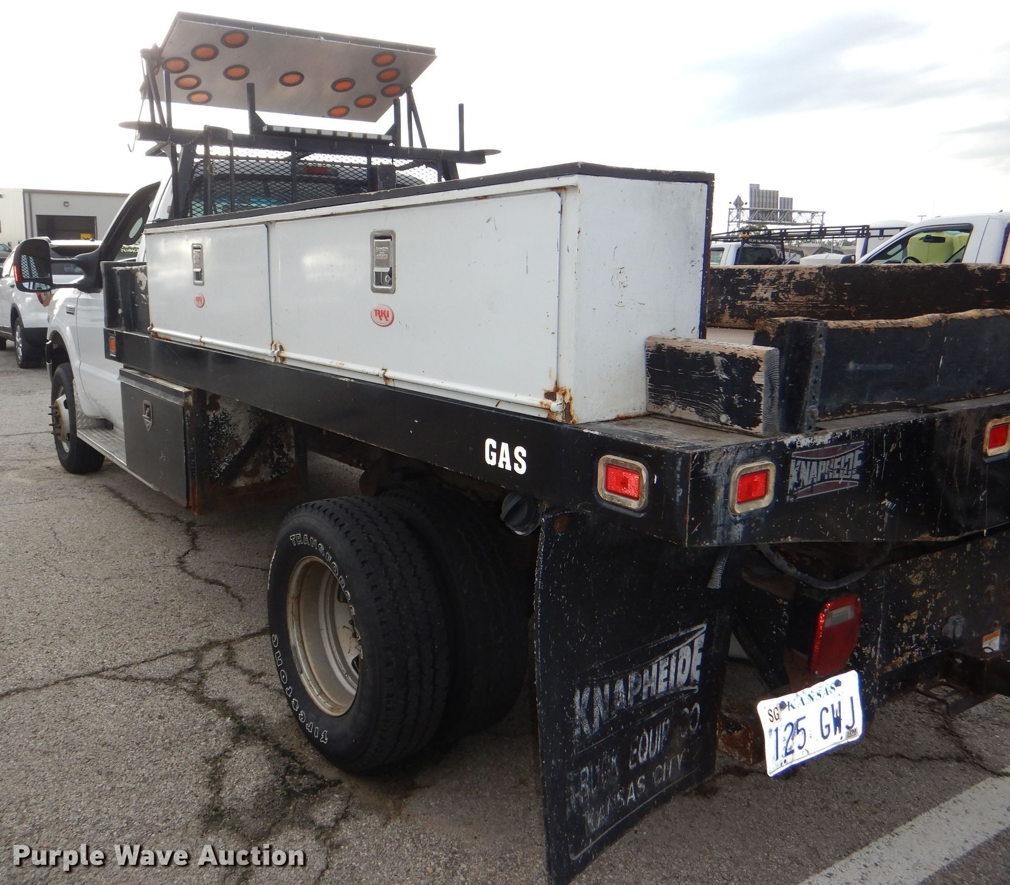 Purple Wave is selling a used 3/4 or 1 Ton Pickup or Van in Kansas. This item is a 2006 Ford F350 Super Duty flatbed pickup truck with the following: 140,732 miles on odometer, 6.8L V10 SOHC 30V gas engine, Automatic transmission, Four wheel drive, AC and heat, Cruise, Power windows and locks, Knapheide PVMXS-113C flatbed, 11'L x 96"W, Arrow board, 245/75R17 tires, Check engine light on, Exhaust needs to be repaired, Maintenance records available upon request, Unit# 5262