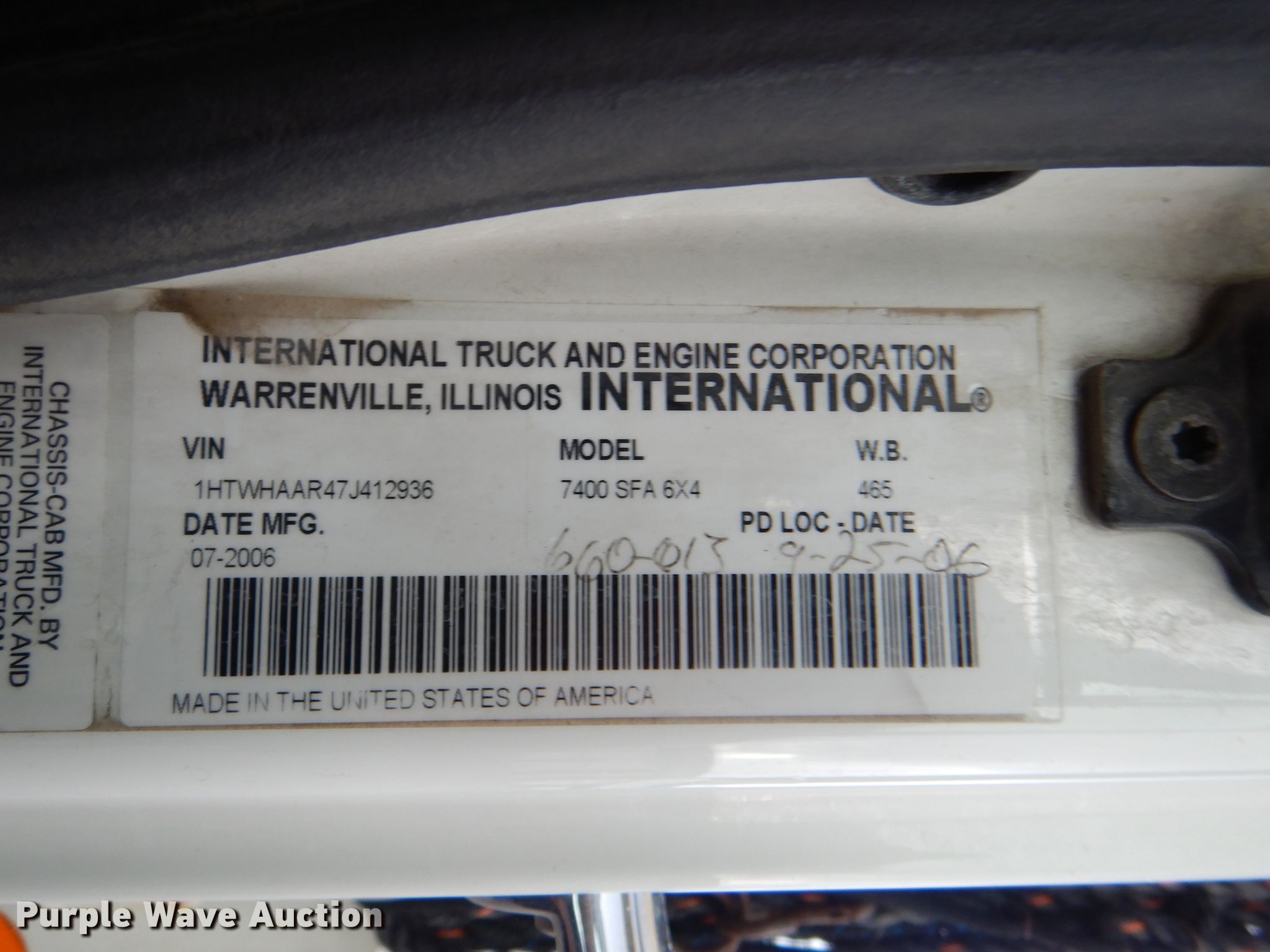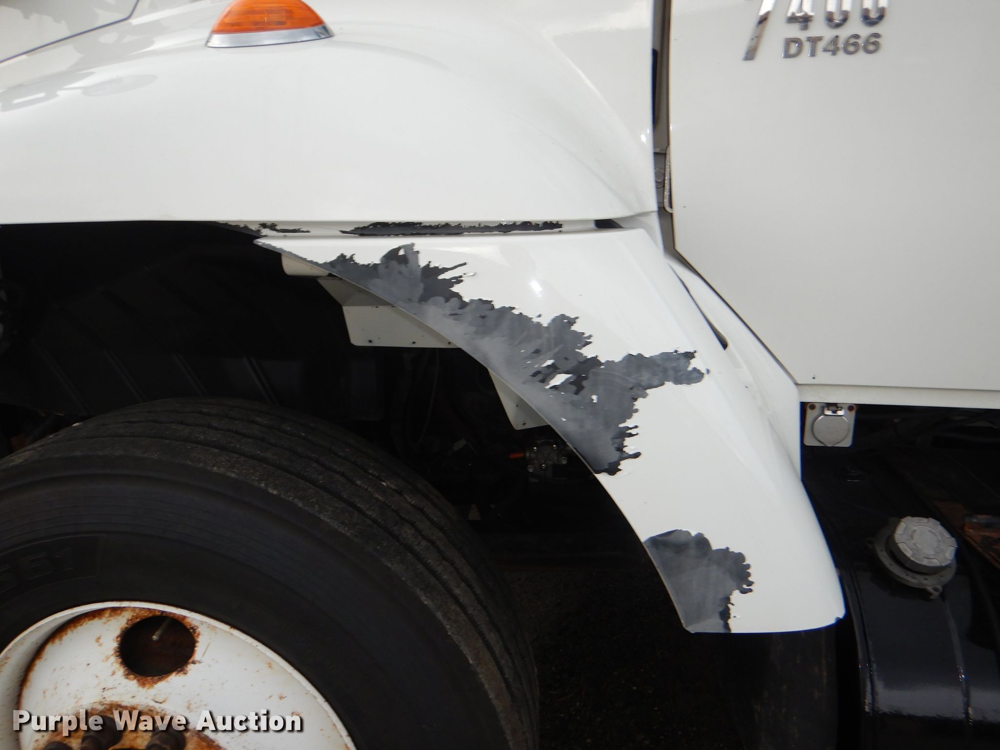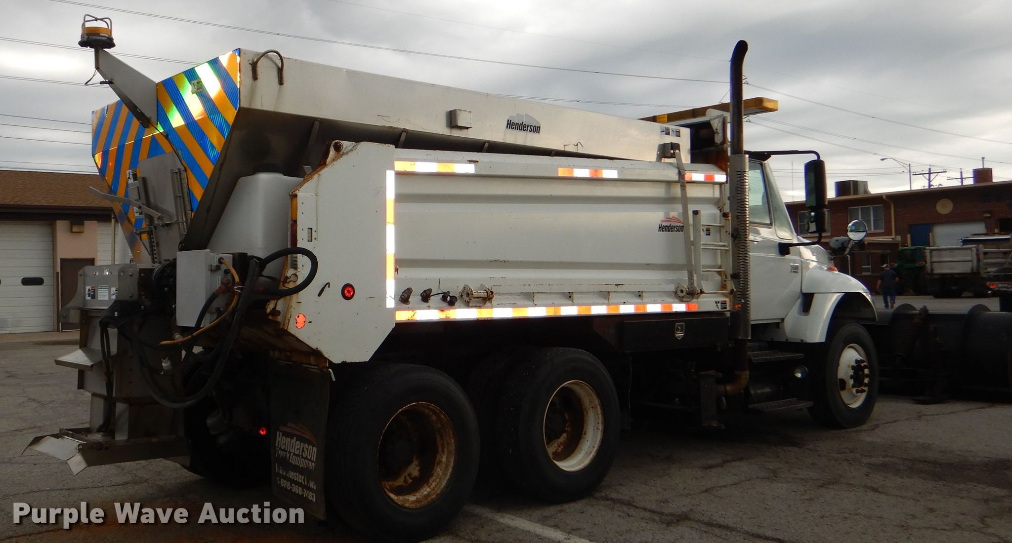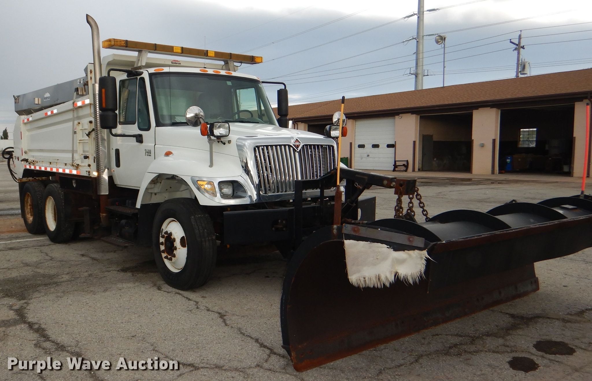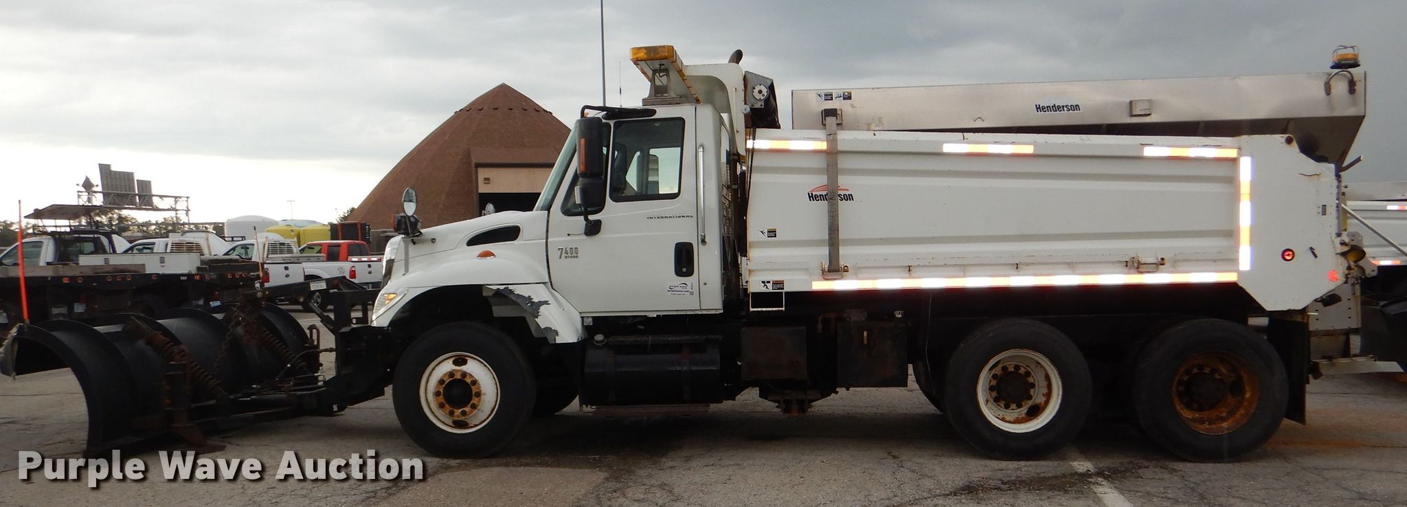 Purple Wave is selling a used Construction Dump Truck in Kansas. This item is a 2007 International 7400 dump truck with the following: 83,899 miles on odometer, International DT466 7.6L L6 diesel engine, 280 HP, Allison 3500 automatic transmission, Tandem axle, Inter-axle differential lock, AC and heat, Power windows, Heated mirrors, Brake controller, Front mounted PTO, Henderson 13.5x109427 steel dump bed, 13.5'L, Roll tarp, Single ram hoist, Air operated end gate, Anti-ice tanks, Henderson spreader, Henderson 11x42xHX25275 plow, 132"W, 8'W wing plow, 6:17 gear ratio, Spring over walking suspension, Air brakes, 295/75R22.5 tires, GVWR 52,350 lbs, FAWR 12,350 lbs, IAWR 20,000 lbs, RAWR 20,000 lbs, Check AC light on, Maintenance records available upon request, Unit# 5214