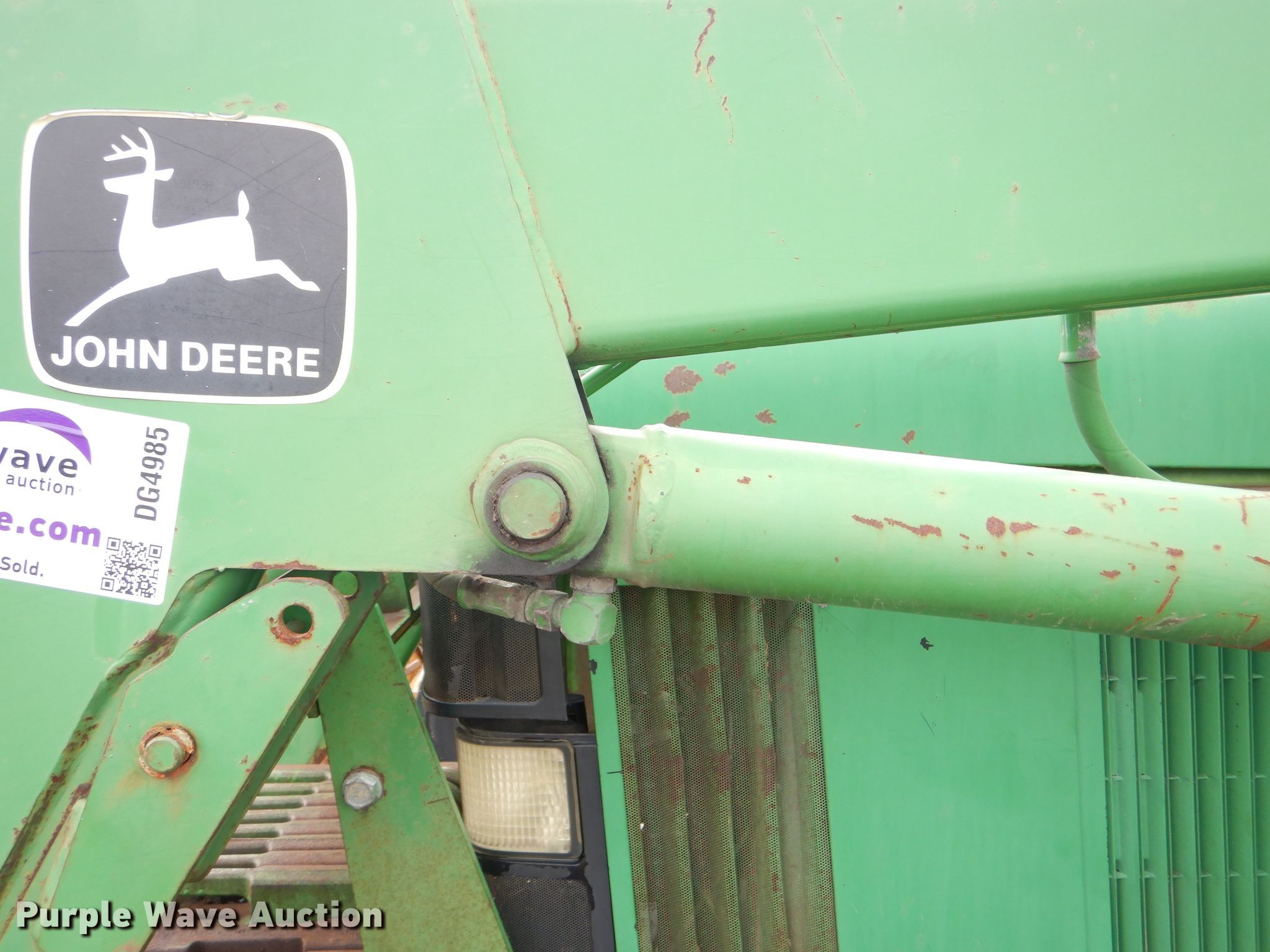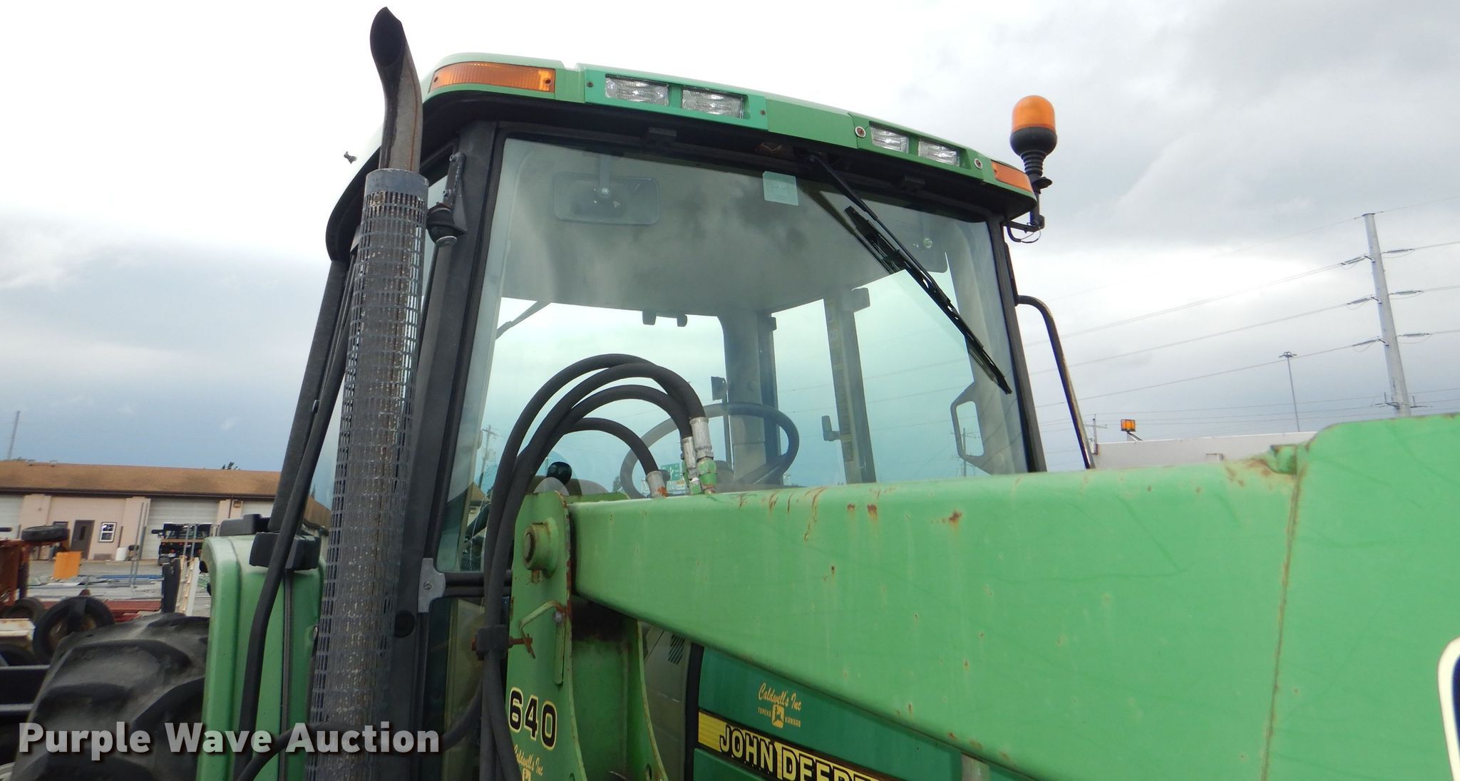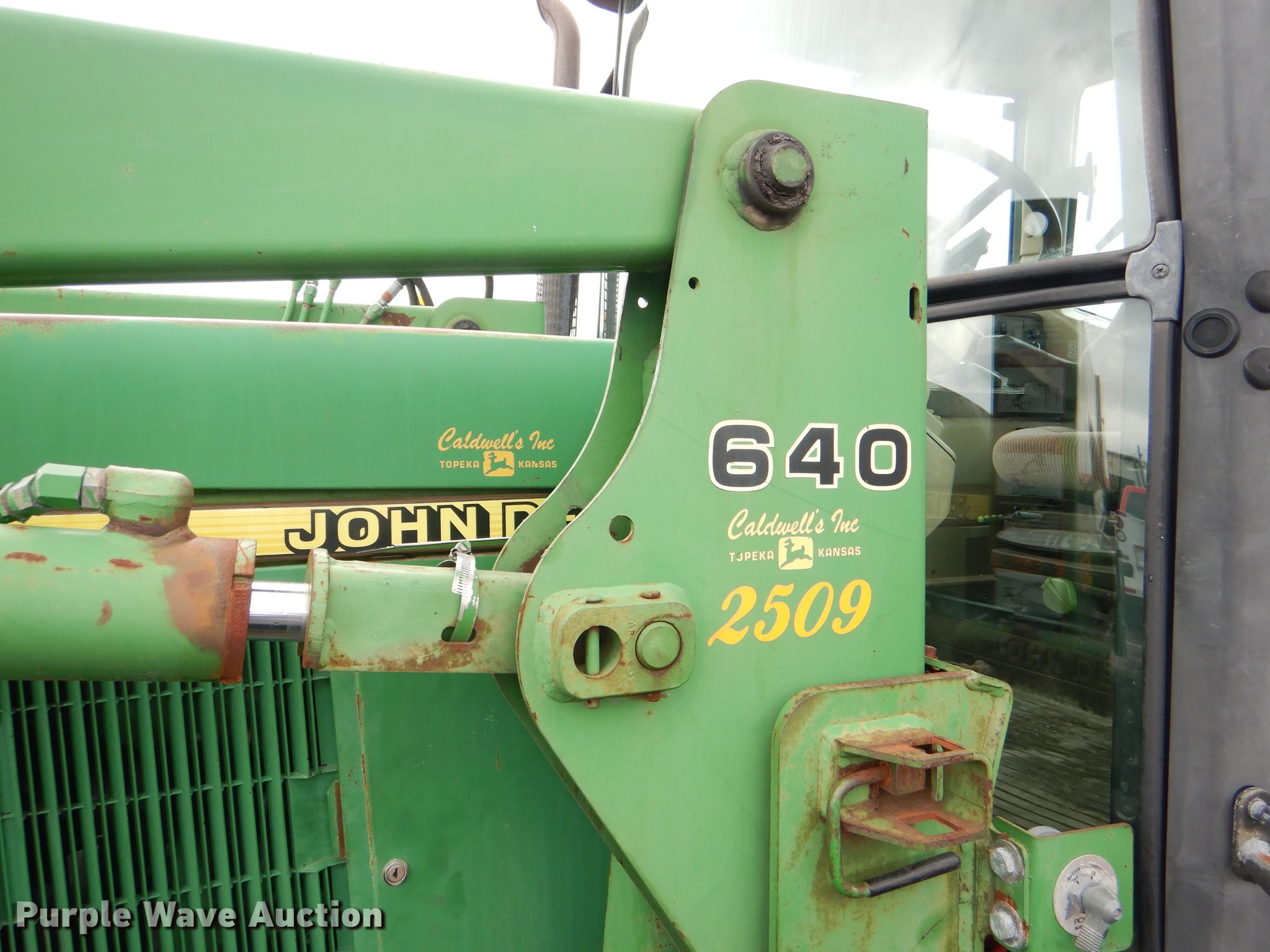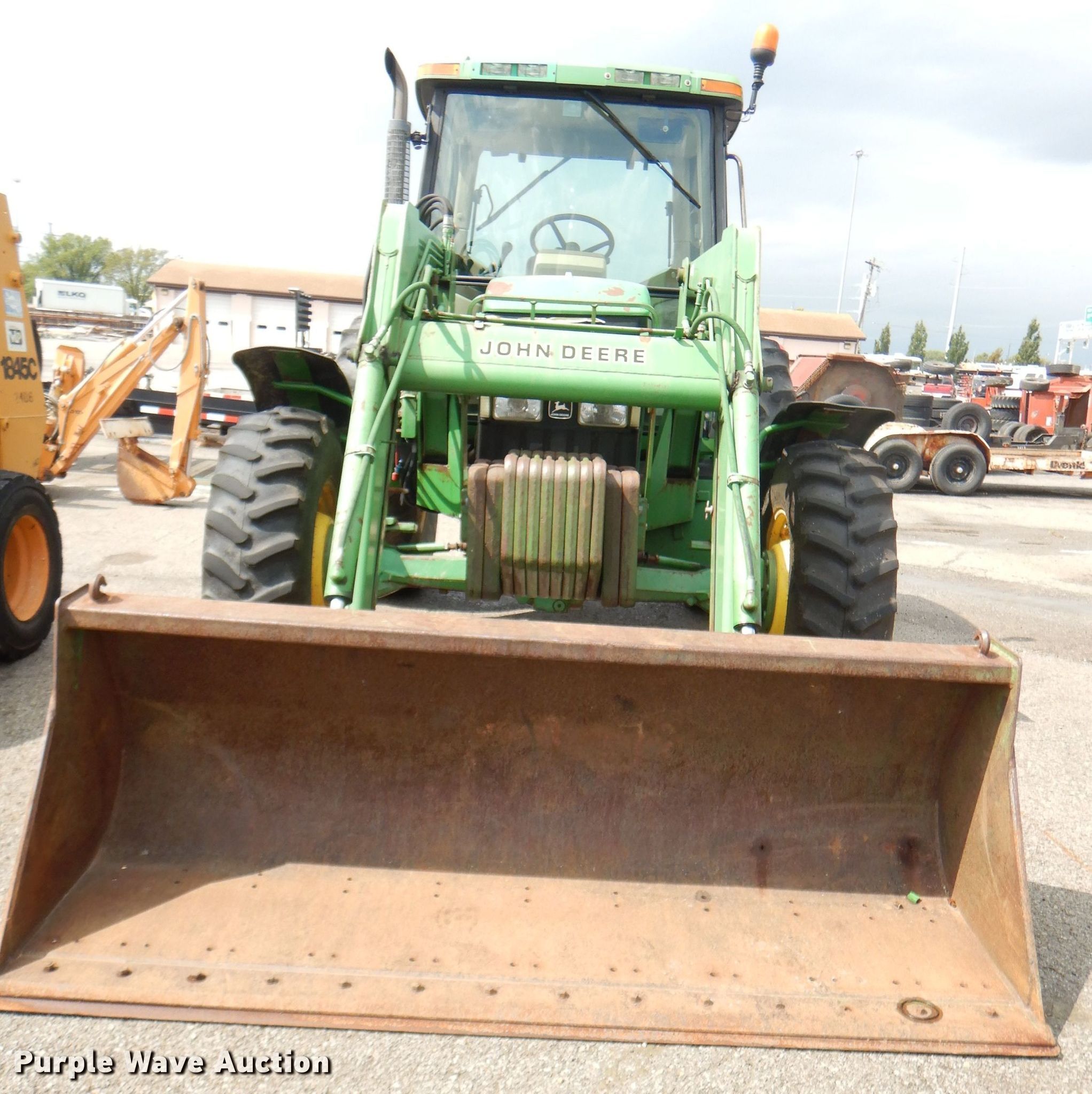 Purple Wave is selling a used Tractor in Kansas. This item is a 1999 John Deere 6310 MFWD tractor with the following: 4,276 hours on meter, 1,017 hours on second hour meter, John Deere four cylinder diesel engine, Synchro transmission, 12F-4R gears, AC and heat, John Deere 640 loader, 86"W bucket, Quick attach, Joystick controls, Three point, Top link, 540/1000 PTO, (3) rear hydraulic remotes, (12) suitcase weights, (12) wheel weights, 13.6-24 front tires, 18.4-34 rear tires, Maintenance records available upon request, Serial L06310M248317, Unit# 2504