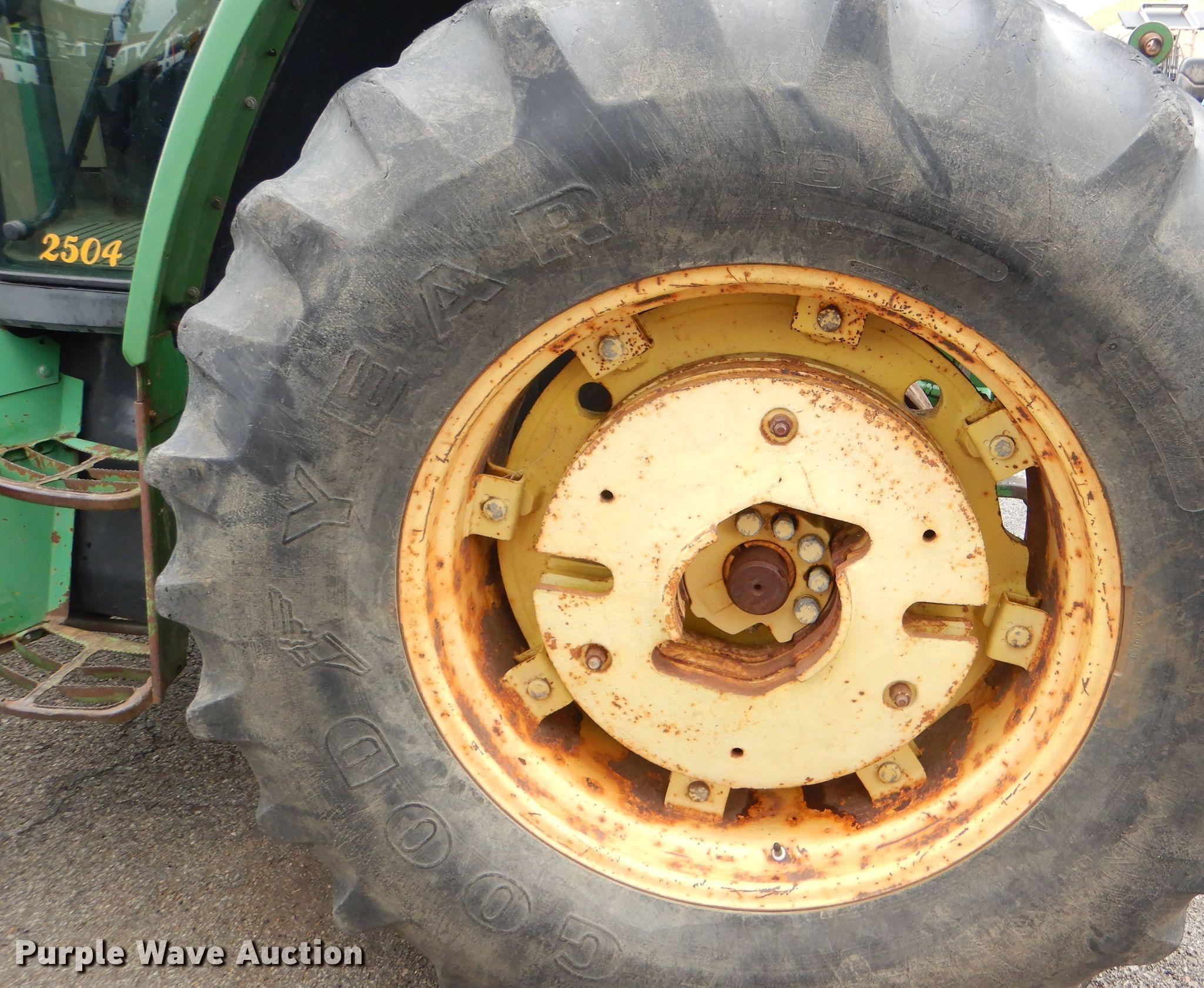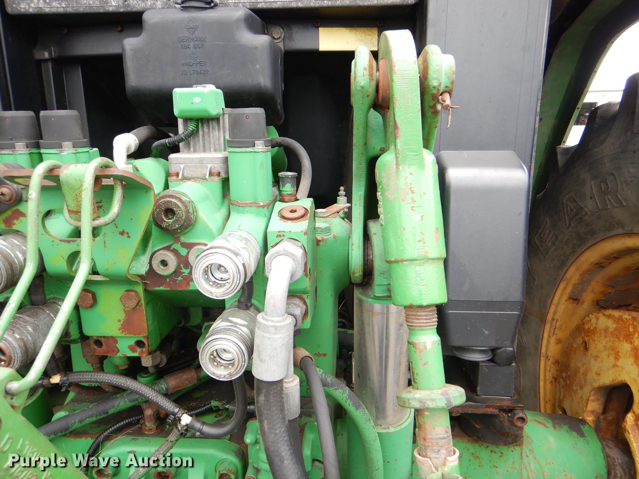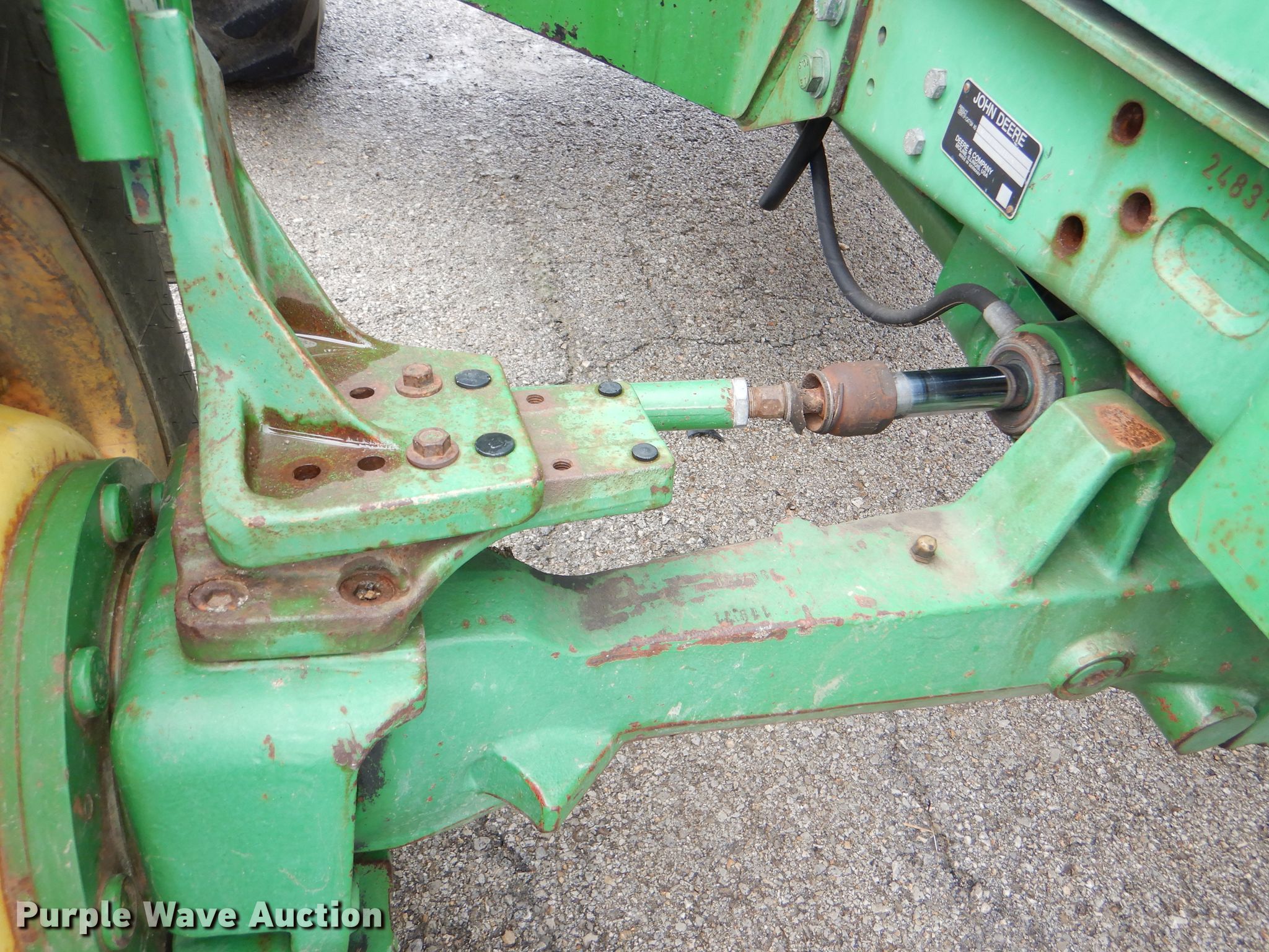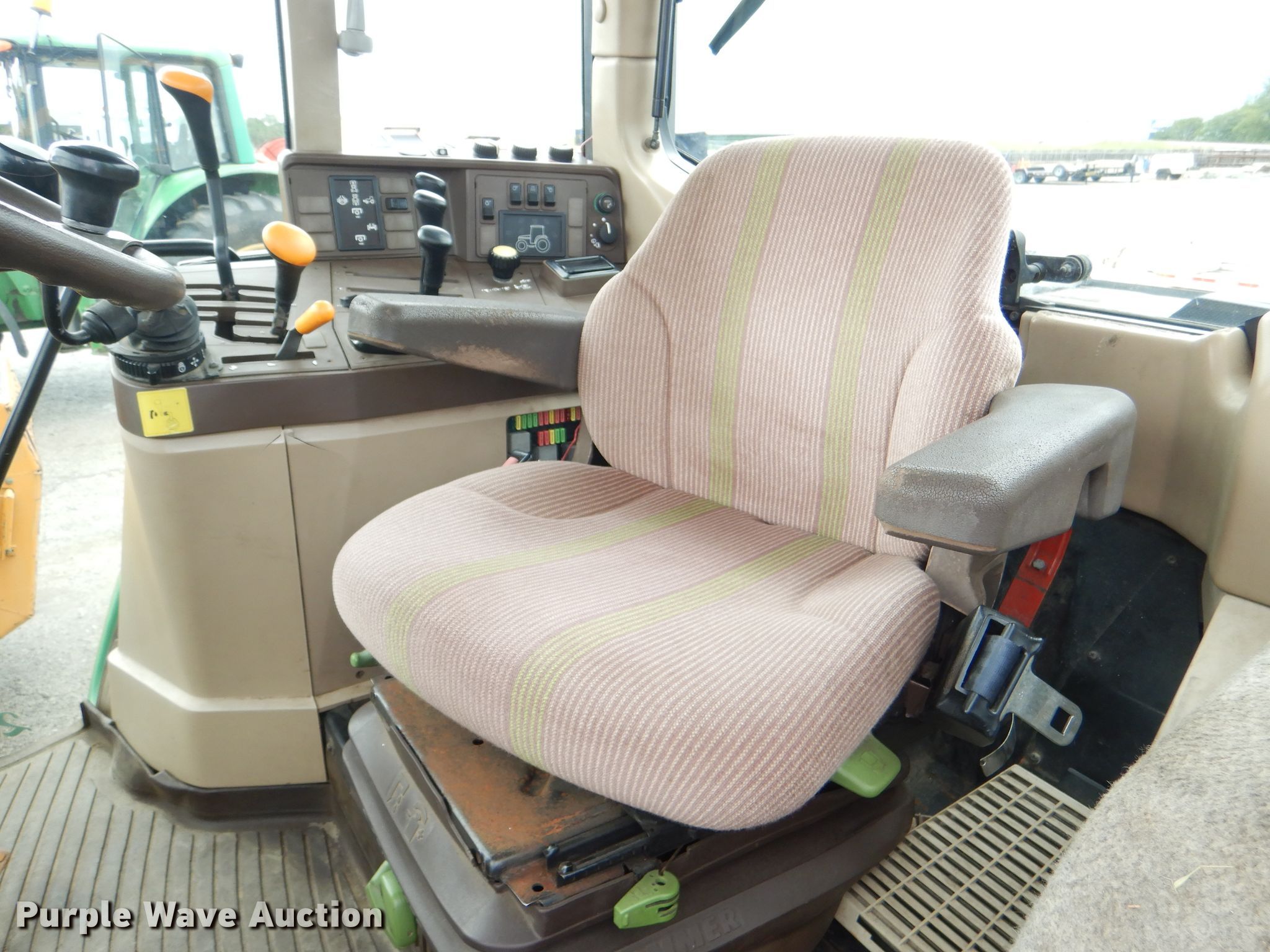Purple Wave is selling a used Tractor in Kansas. This item is a 1999 John Deere 6310 MFWD tractor with the following: 4,276 hours on meter, 1,017 hours on second hour meter, John Deere four cylinder diesel engine, Synchro transmission, 12F-4R gears, AC and heat, John Deere 640 loader, 86"W bucket, Quick attach, Joystick controls, Three point, Top link, 540/1000 PTO, (3) rear hydraulic remotes, (12) suitcase weights, (12) wheel weights, 13.6-24 front tires, 18.4-34 rear tires, Maintenance records available upon request, Serial L06310M248317, Unit# 2504