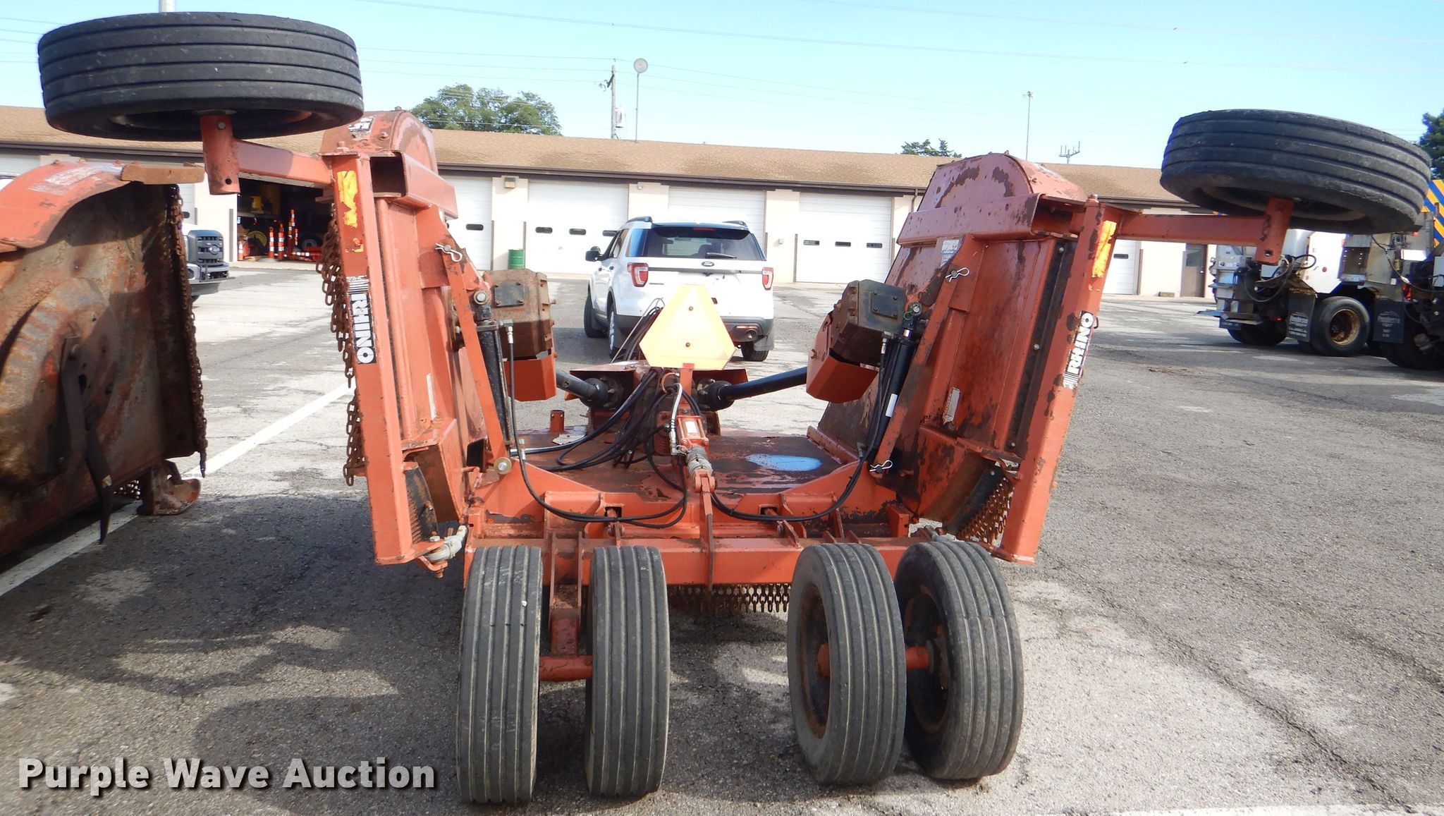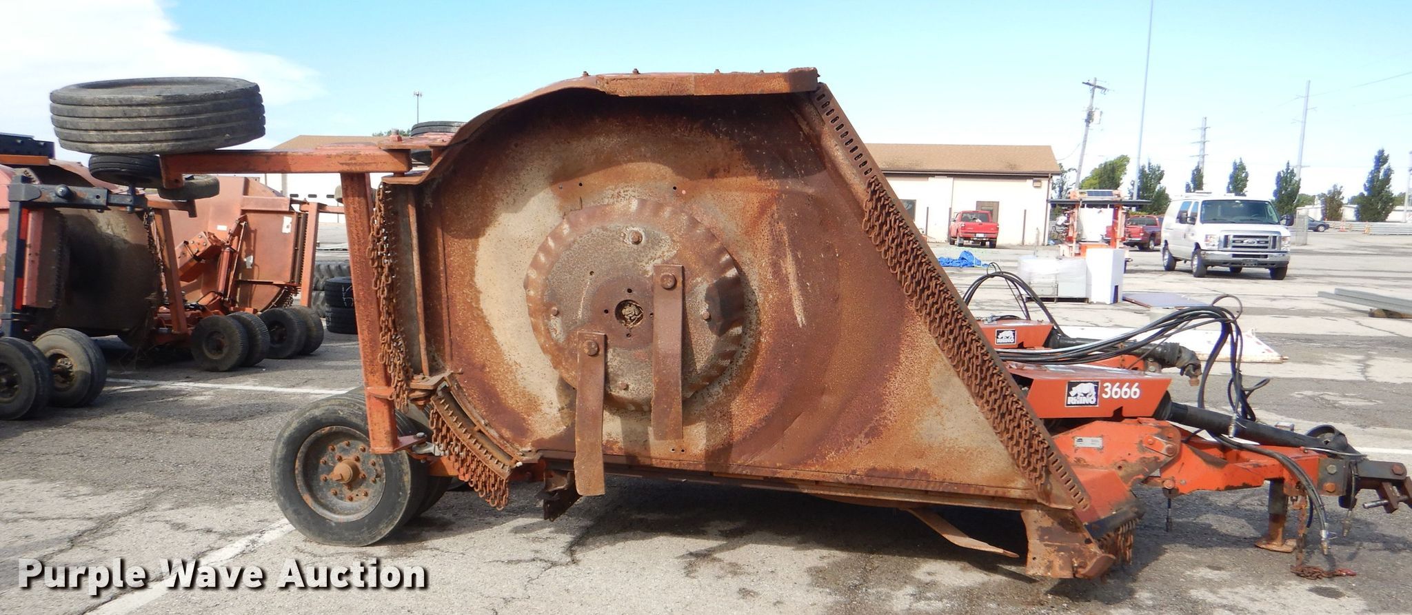 Purple Wave is selling a used Mower, Cutter, Shredder in Kansas. This item is a Rhino FR15 batwing rotary mower with the following: 15'W, 540 PTO, Worn tires, Serial 13262, Unit# 3666