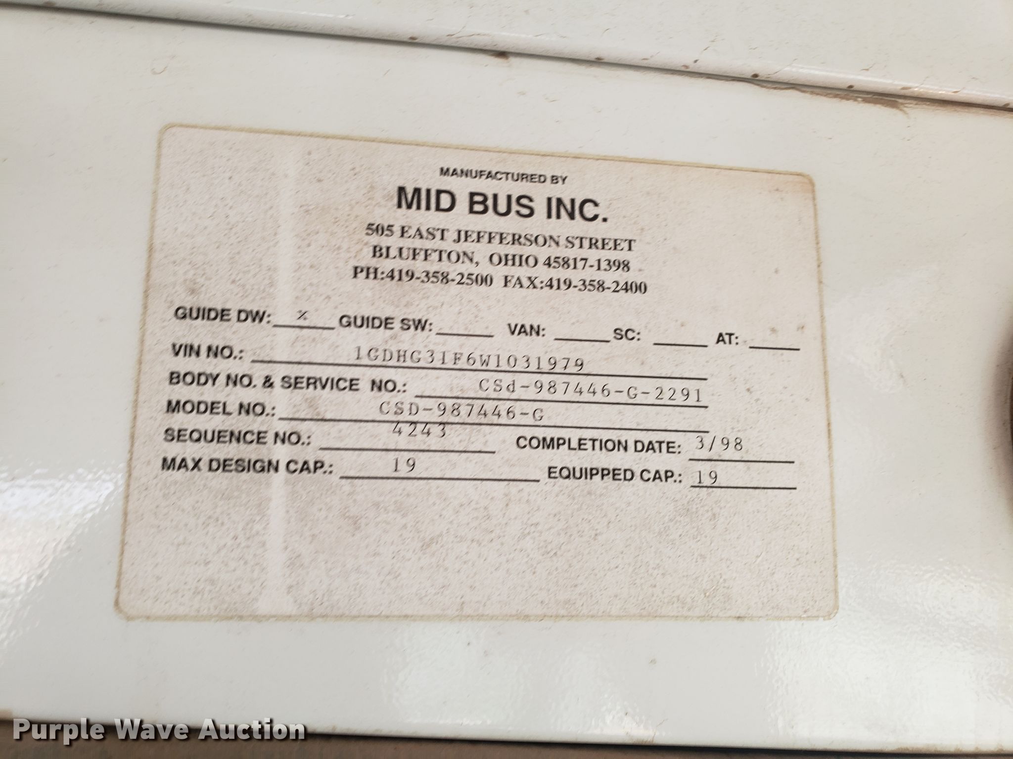 Take a look at this used 1998 GMC Savana G3500 school bus being sold on October 16th, 2019 in the SOLD! October 16 Vehicles and Equipment Auction made by GMC. Take a look at all of the item information below or take a look at similar auctions for Transit Vehicles.