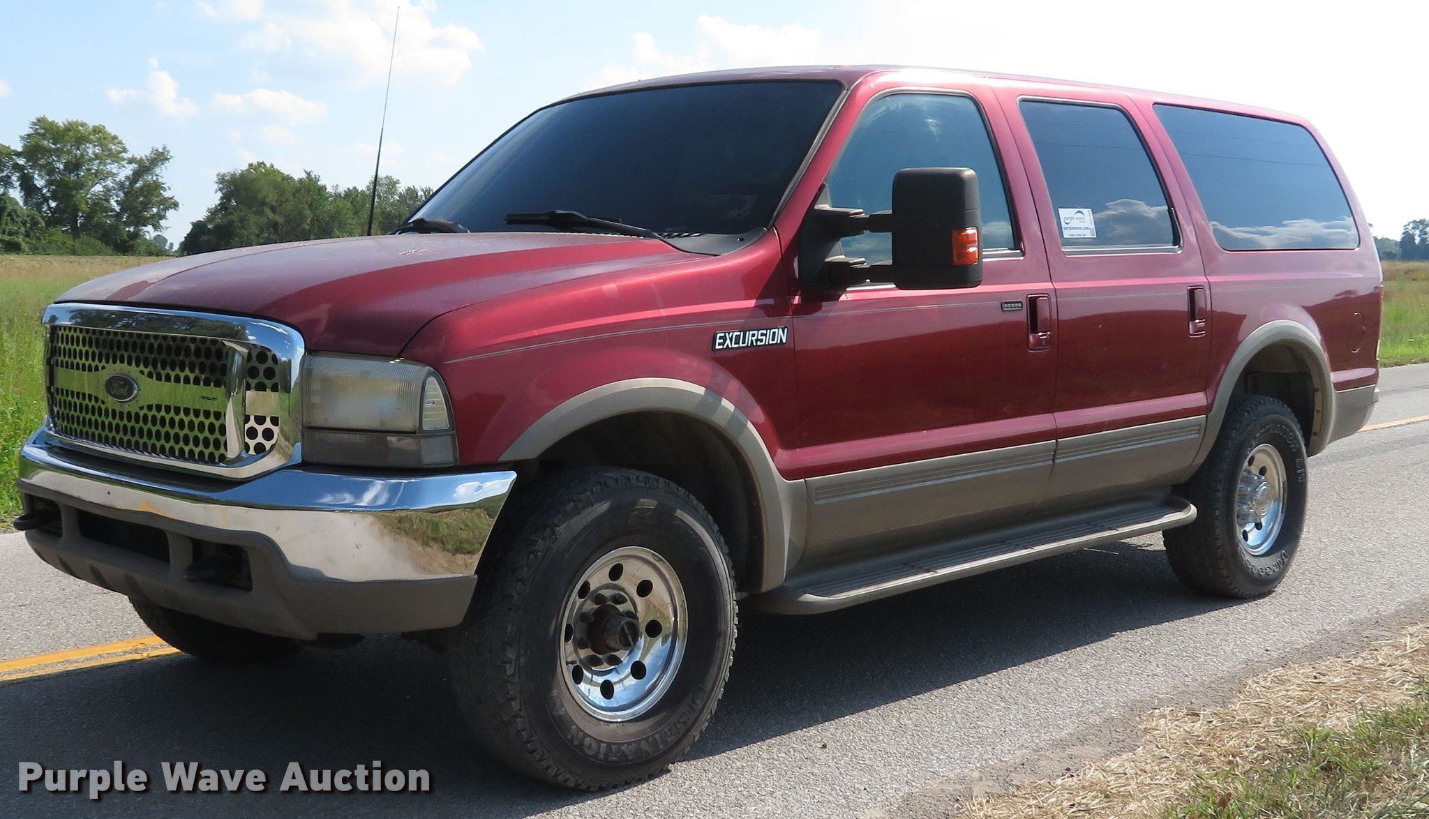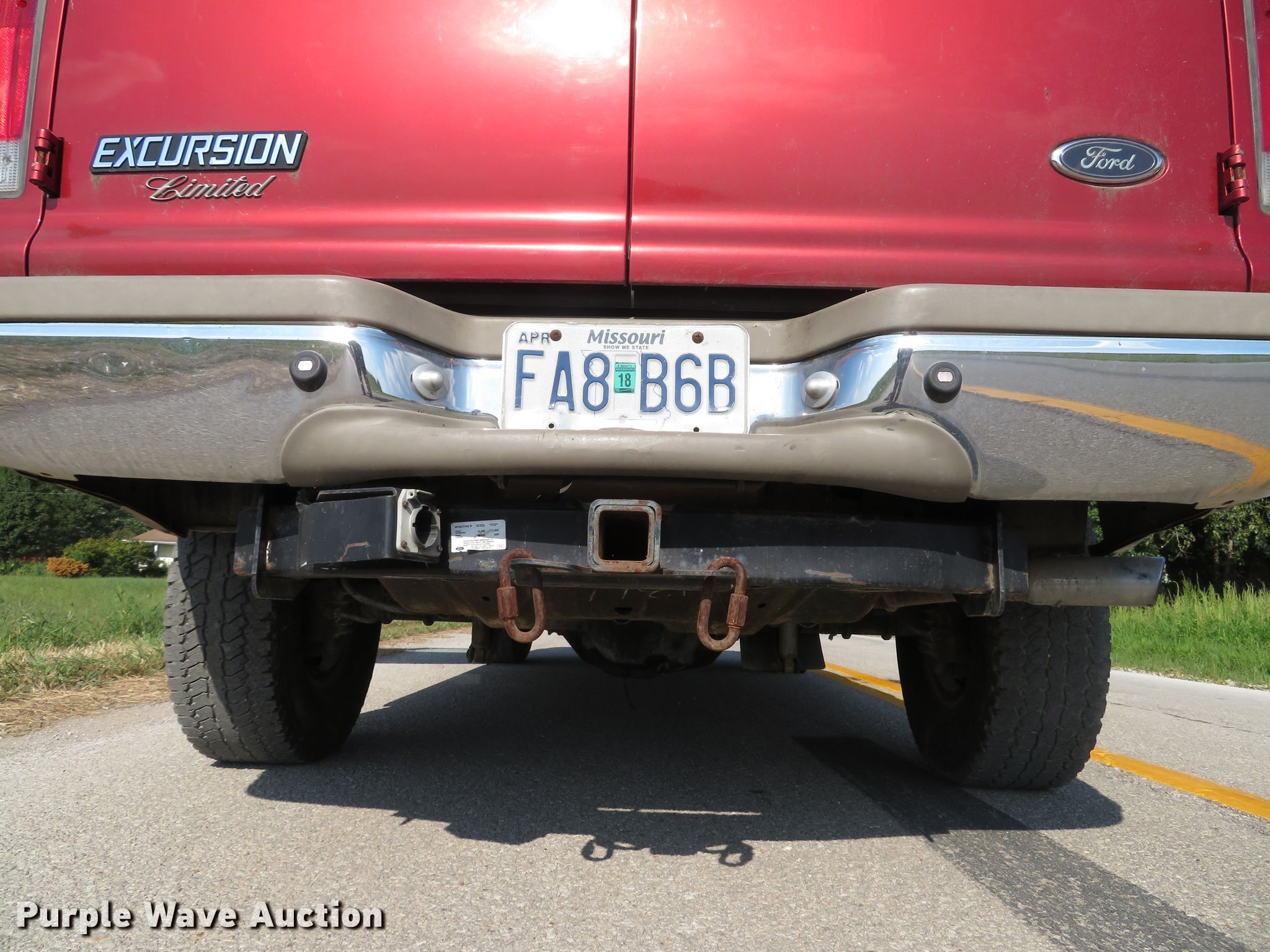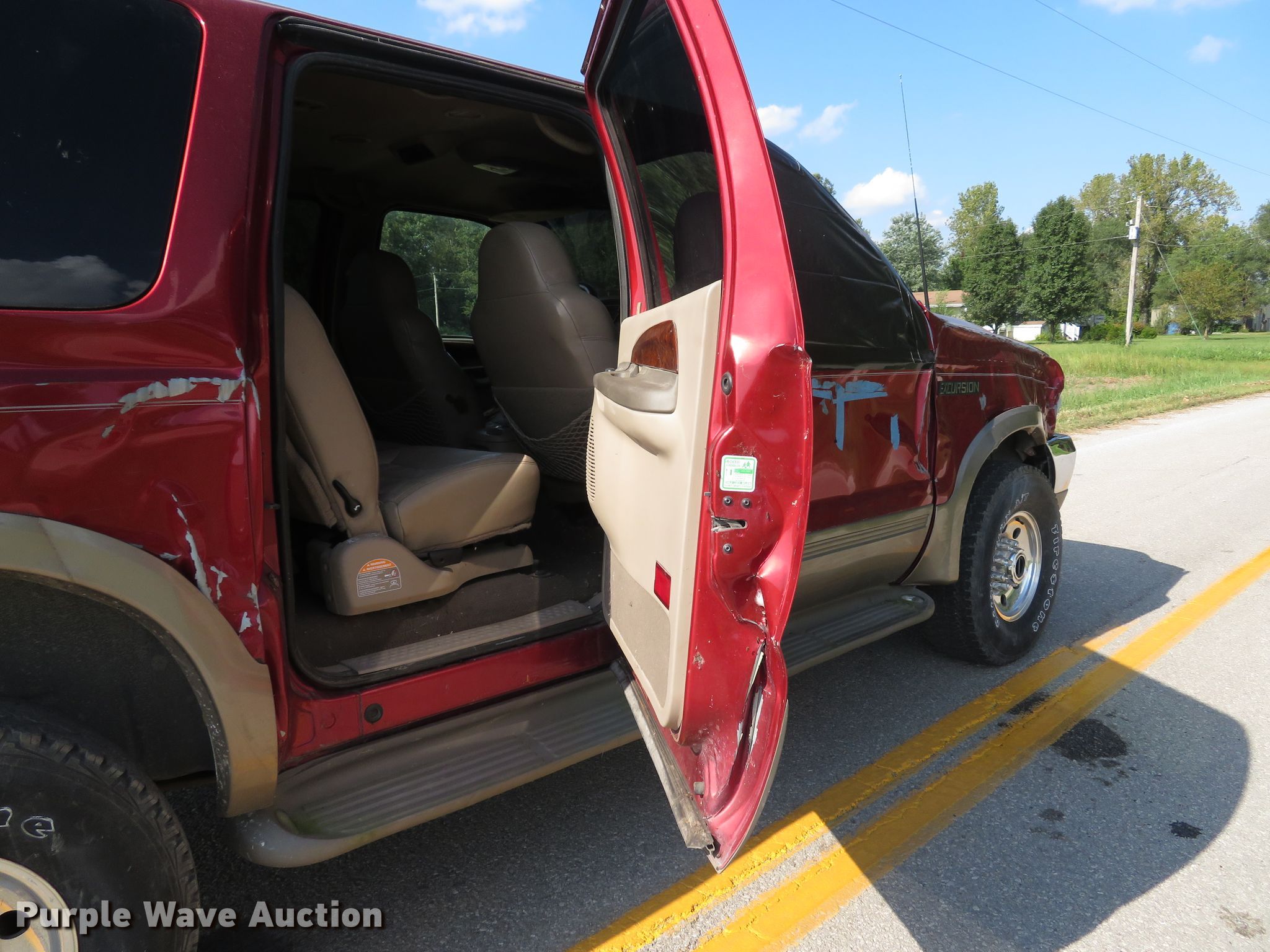 Purple Wave is selling a used Passenger Vehicle in Missouri. This item is a 2000 Ford Excursion Limited SUV with the following: 279,190 miles on odometer, 6.8L V10 SOHC 20V gas engine, Automatic transmission, Four wheel drive, AC and heat, Cruise, Power windows, locks, and seat, Heated seats, LT285/75R16 tires, AC does not blow cold, may need recharged