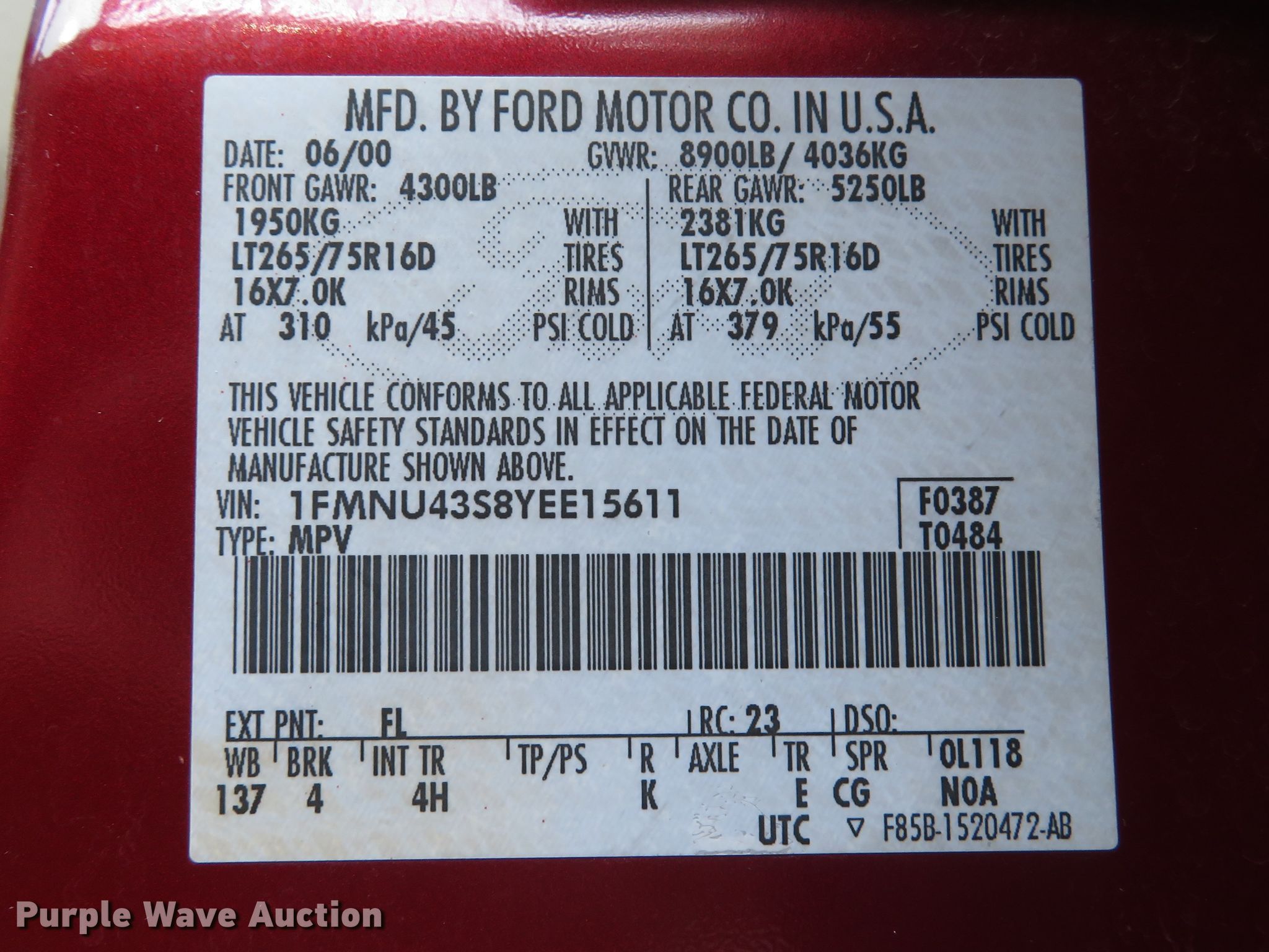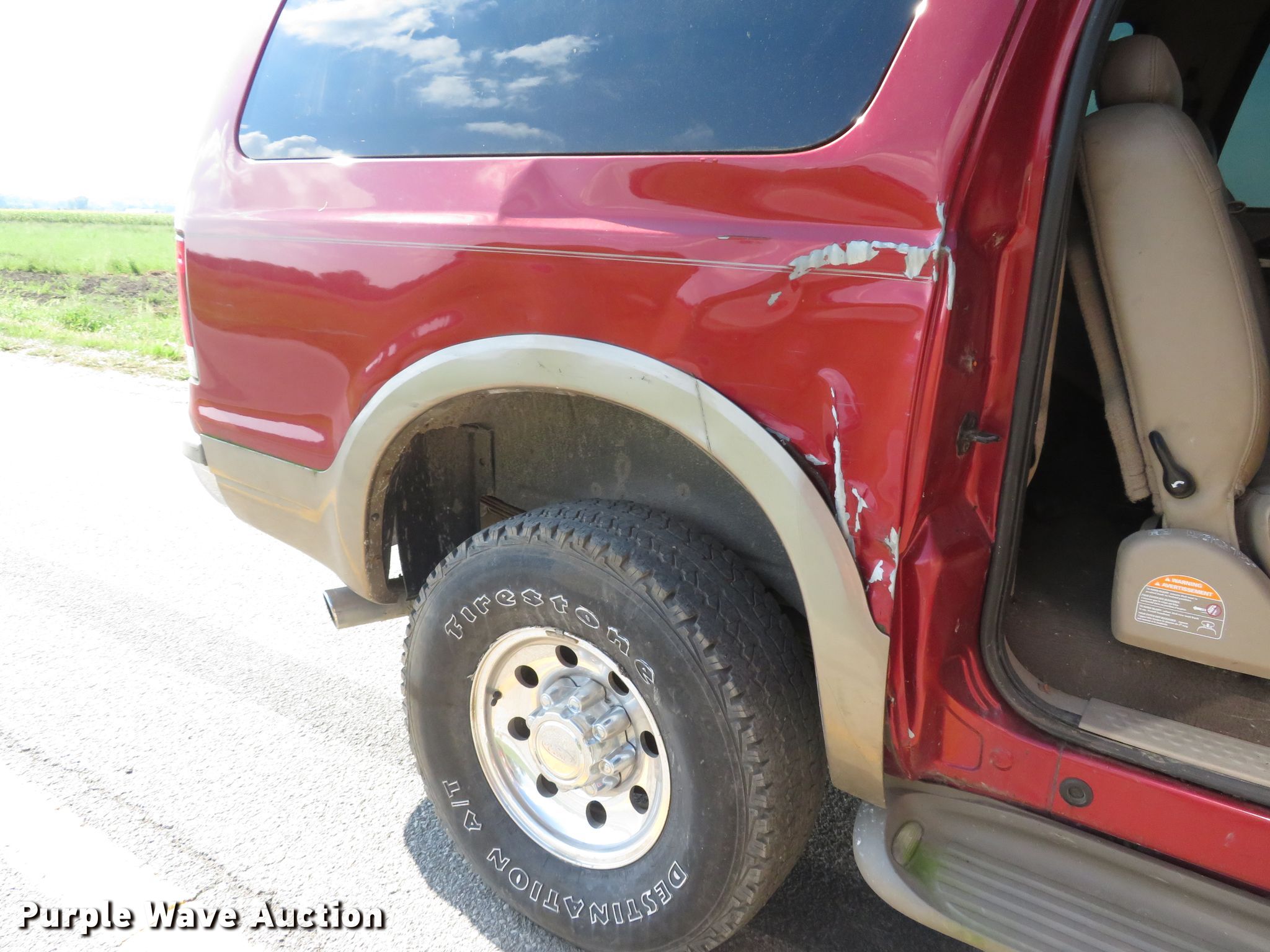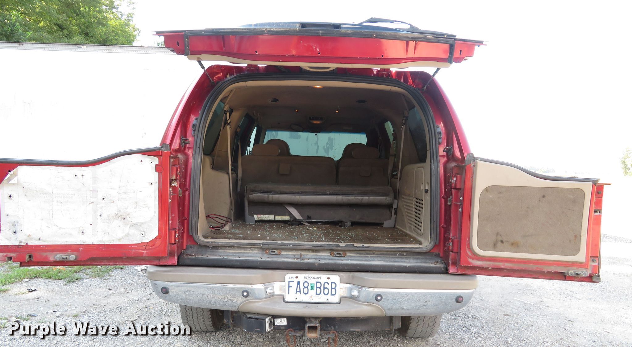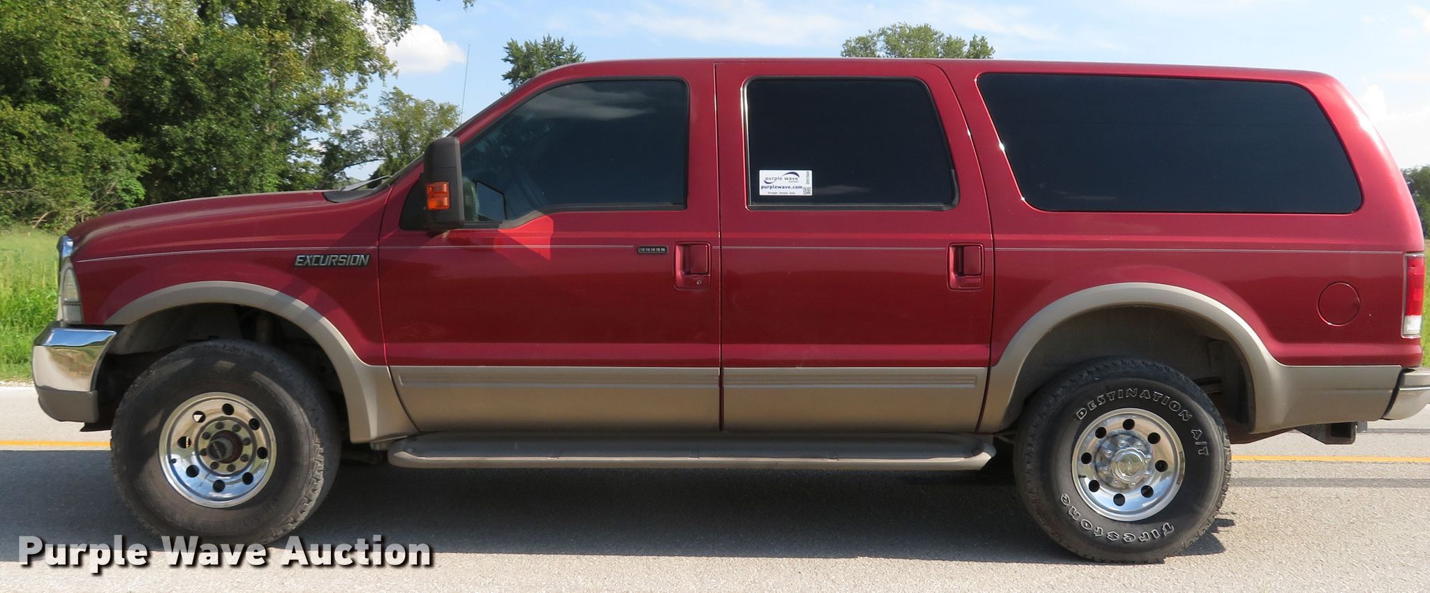 Purple Wave is selling a used Passenger Vehicle in Missouri. This item is a 2000 Ford Excursion Limited SUV with the following: 279,190 miles on odometer, 6.8L V10 SOHC 20V gas engine, Automatic transmission, Four wheel drive, AC and heat, Cruise, Power windows, locks, and seat, Heated seats, LT285/75R16 tires, AC does not blow cold, may need recharged
