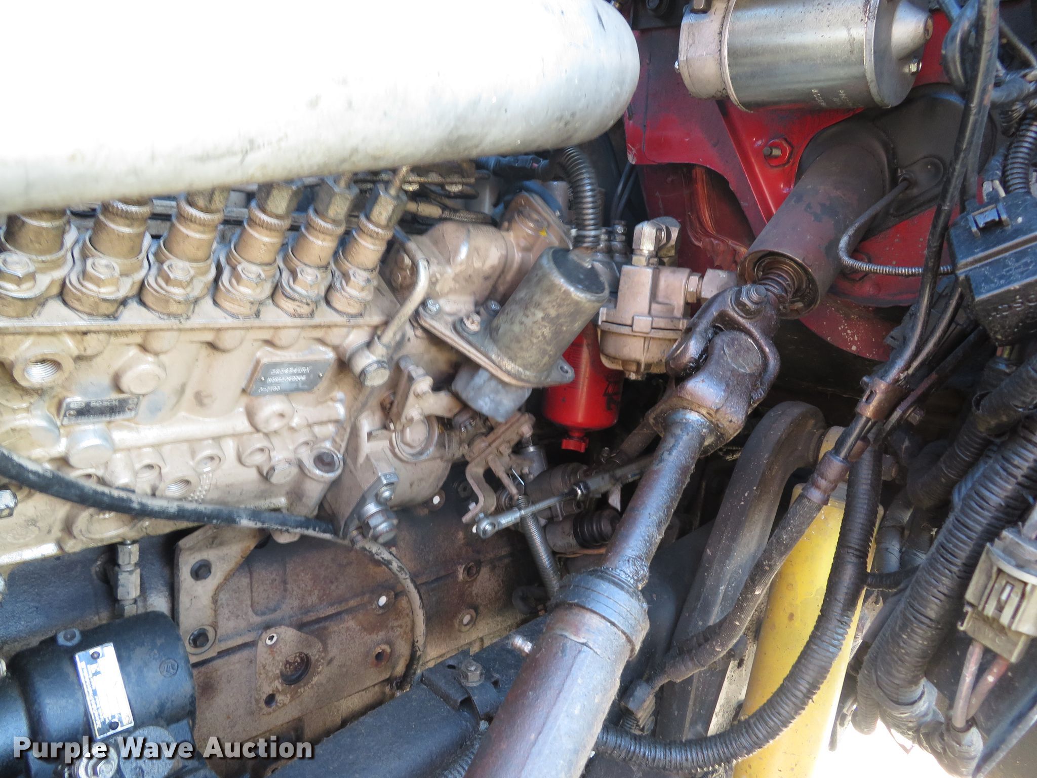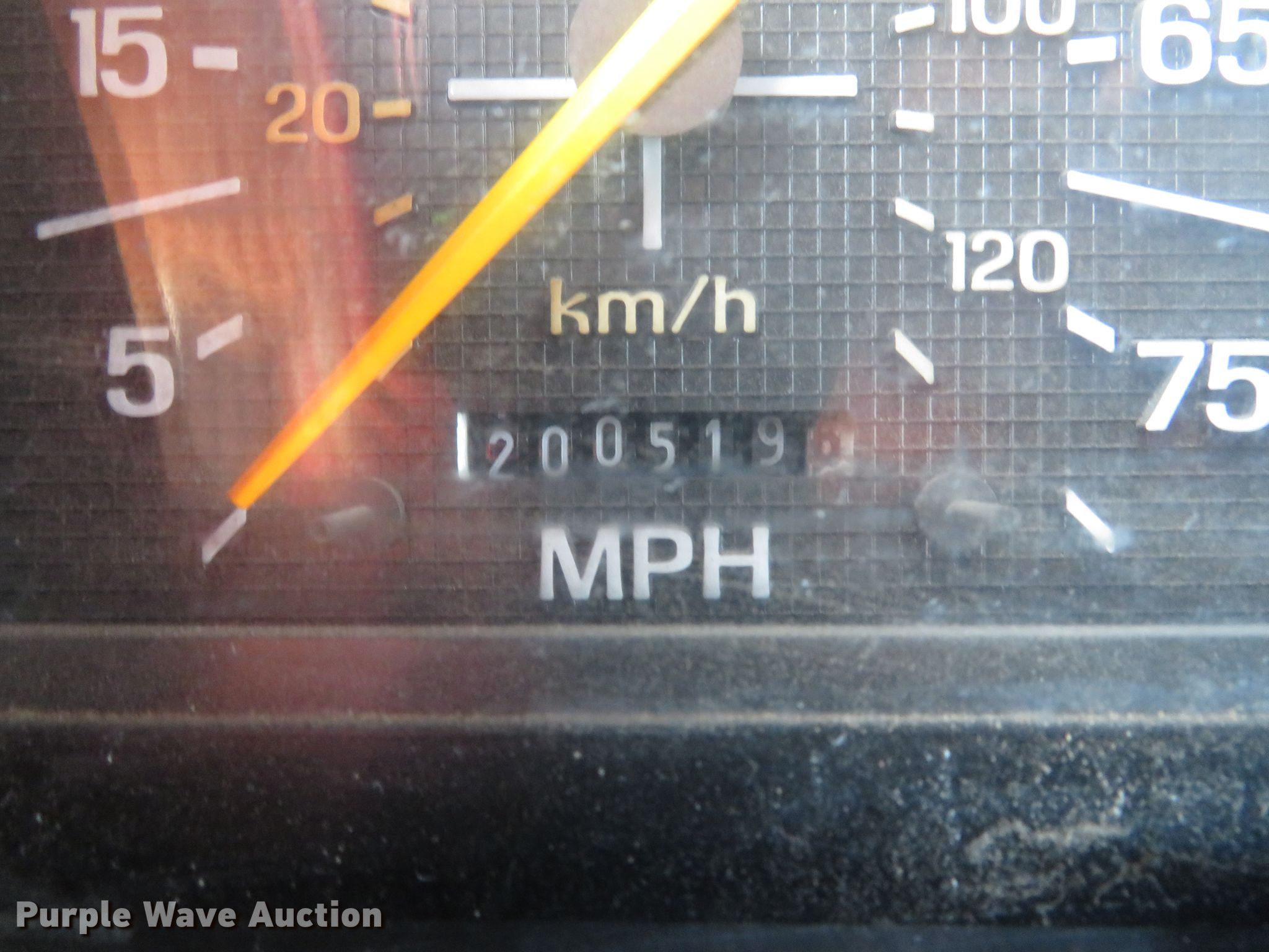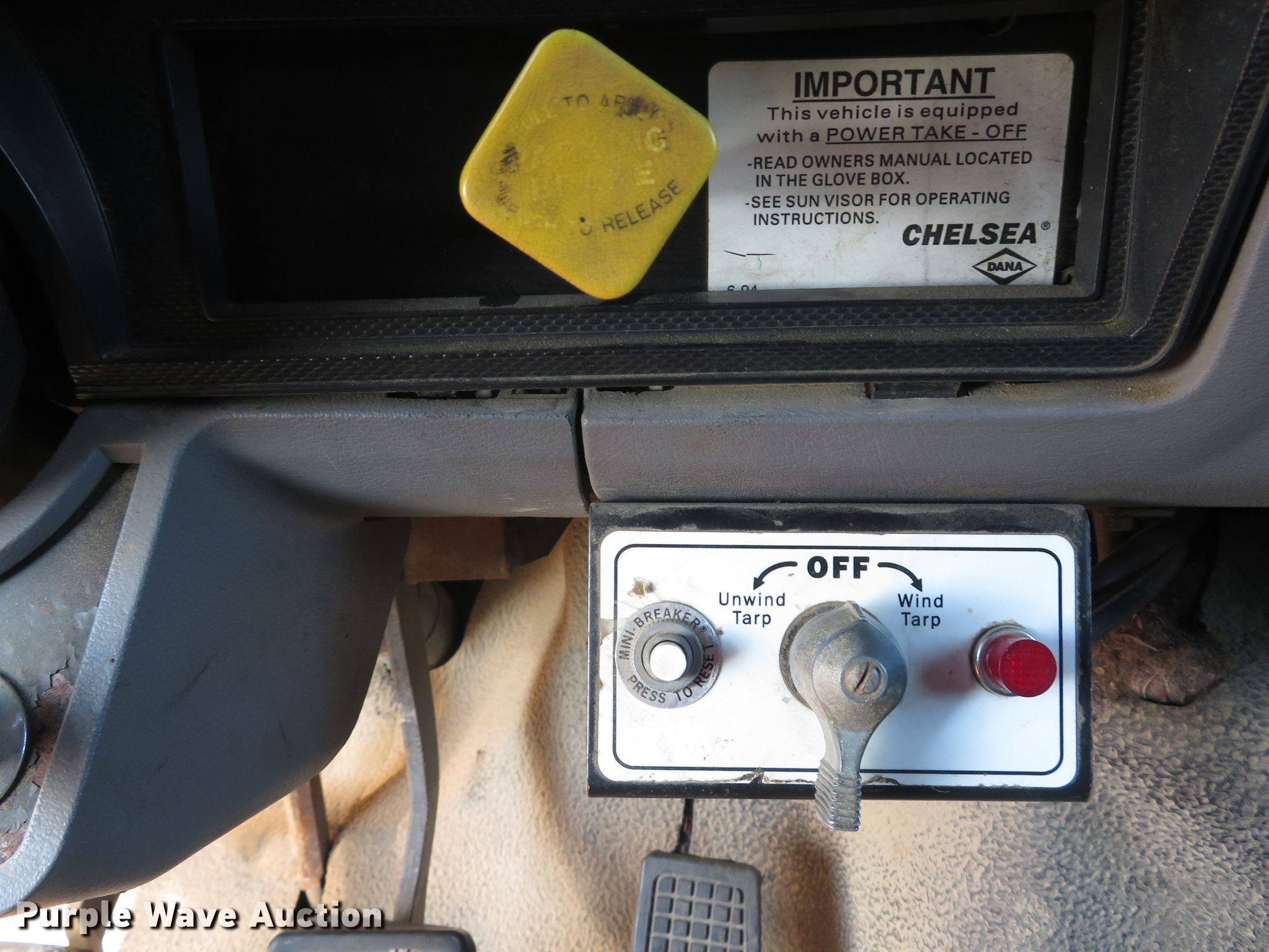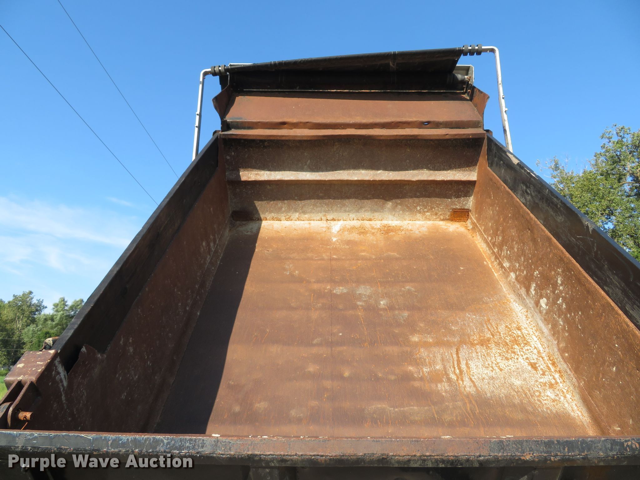 Purple Wave is selling a used Construction Dump Truck in Missouri. This item is a 1996 Ford F800 dump truck with the following: 200,519 miles on odometer, Cummins ISB 5.9L L6 diesel engine, Five speed manual transmission, Two speed rear end, Single axle, AC and heat, Brake controller, PTO, Rugby steel dump bed, 10'L x 96"W, 24" side height, 10" side board height, Single ram hoist, Manual end gate, Spring suspension, Hydraulic brakes, 153" wheelbase, 11R22.5 tires, GVWR 28,000 lbs, FAWR 9,000 lbs, RAWR 19,000 lbs, Cracked windshield, Brake light on