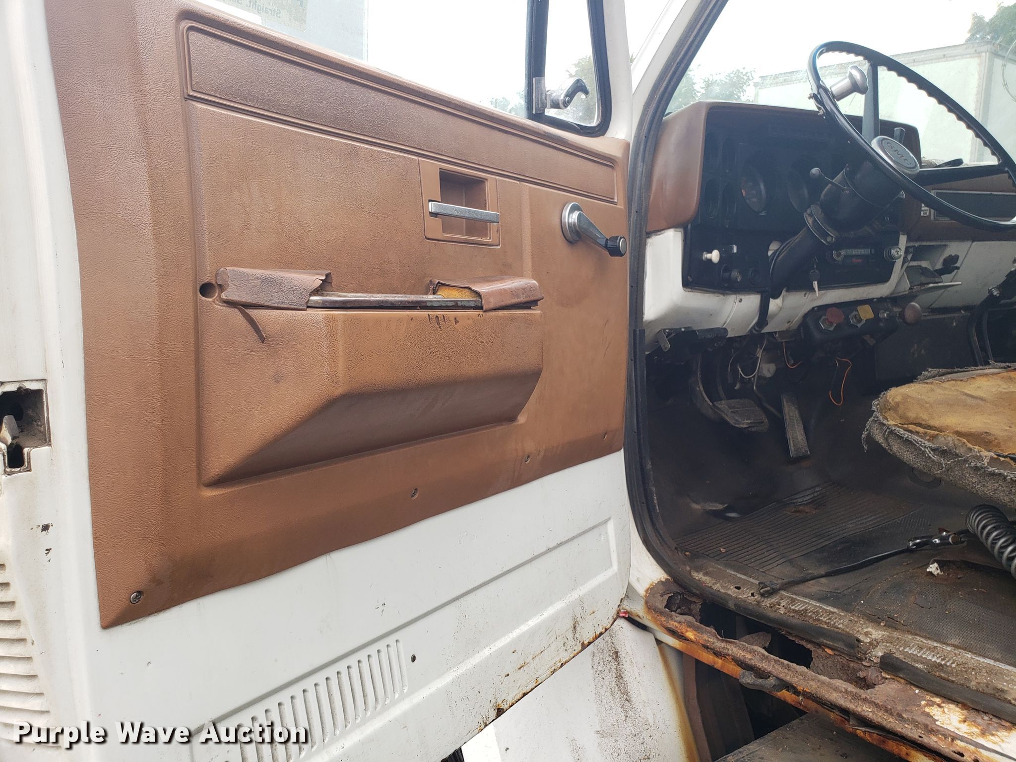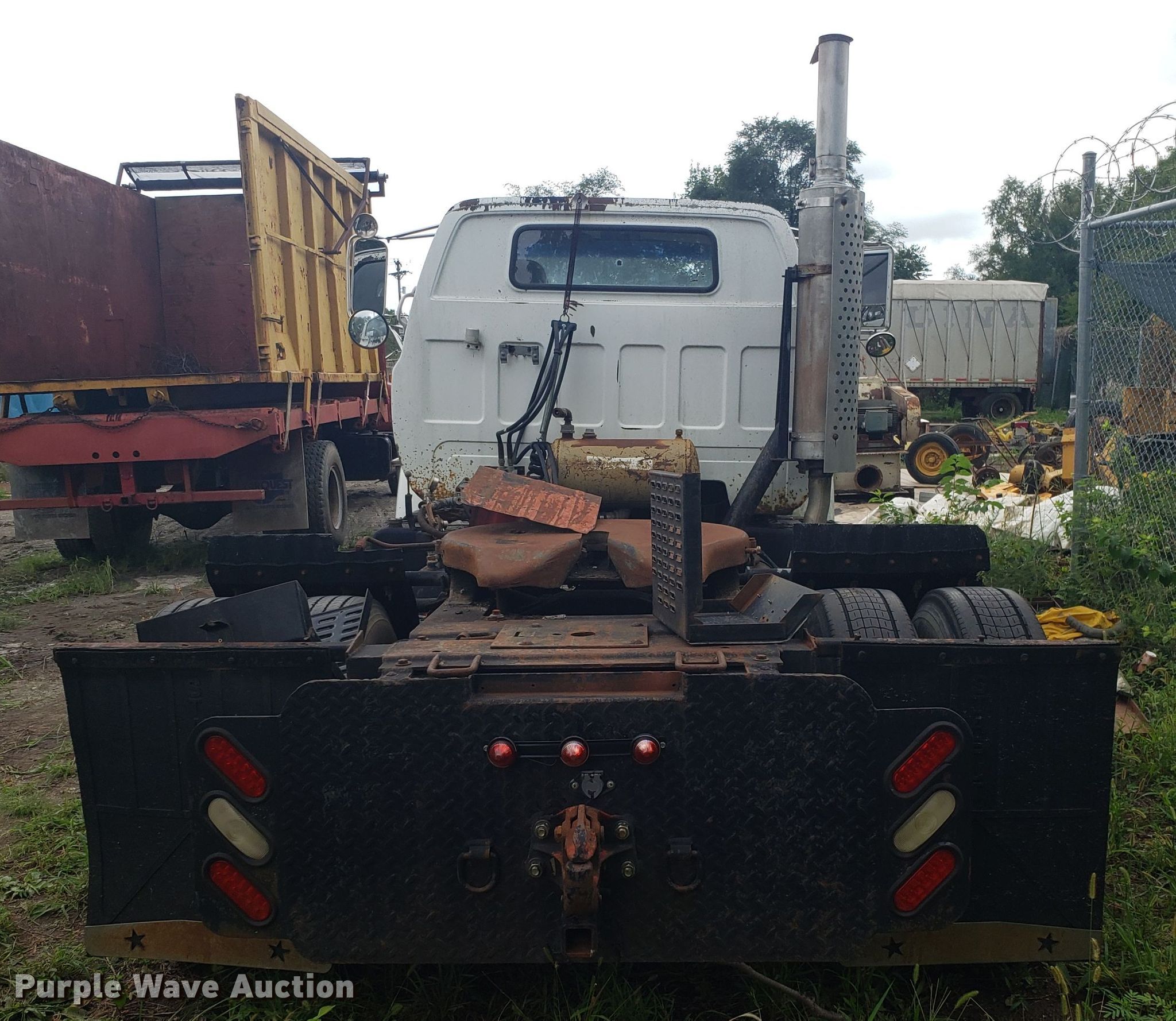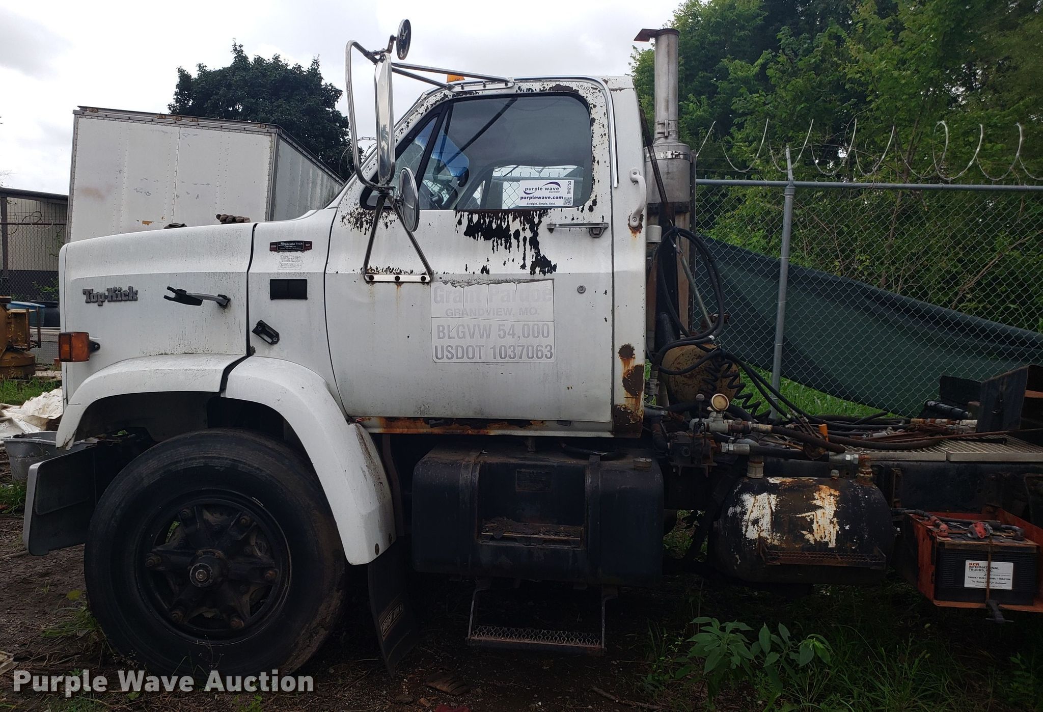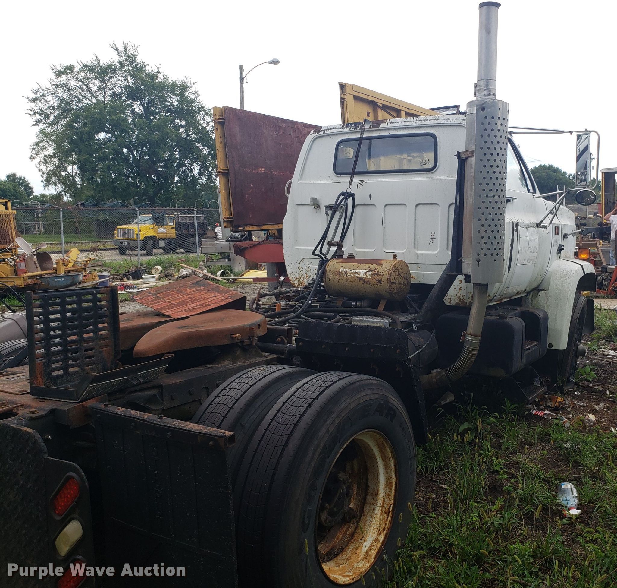 Purple Wave is selling a used Truck Tractor in Missouri. This item is a 1989 GMC TopKick C7000 semi truck with the following: 174,978 miles on odometer, Caterpillar 3208 10.4L V8 diesel engine, Five speed manual transmission, Two speed rear end, Single axle, Fixed fifth wheel plate, Spring suspension, Air brakes, 295/75R22.5 tires, Unknown operating condition