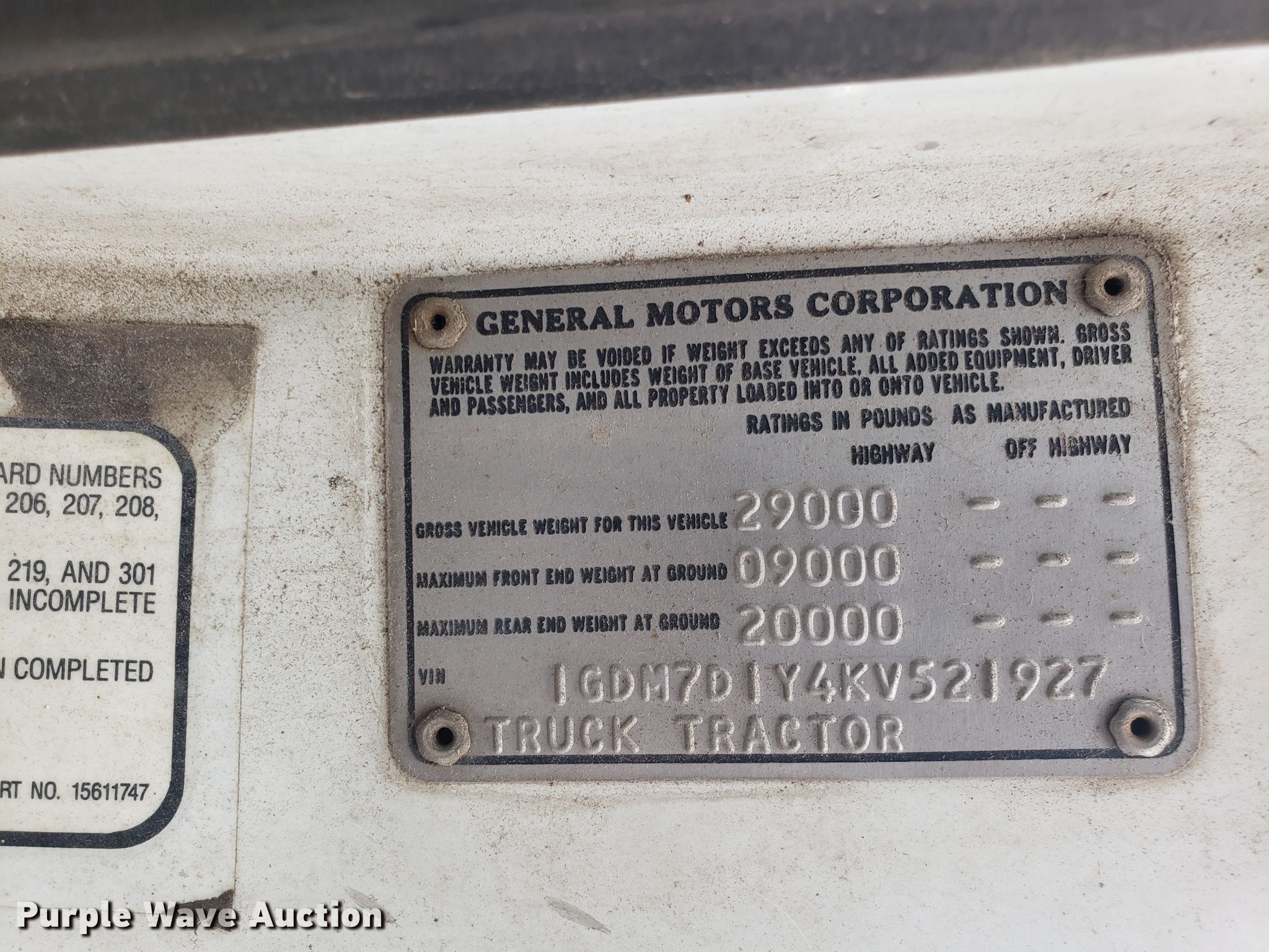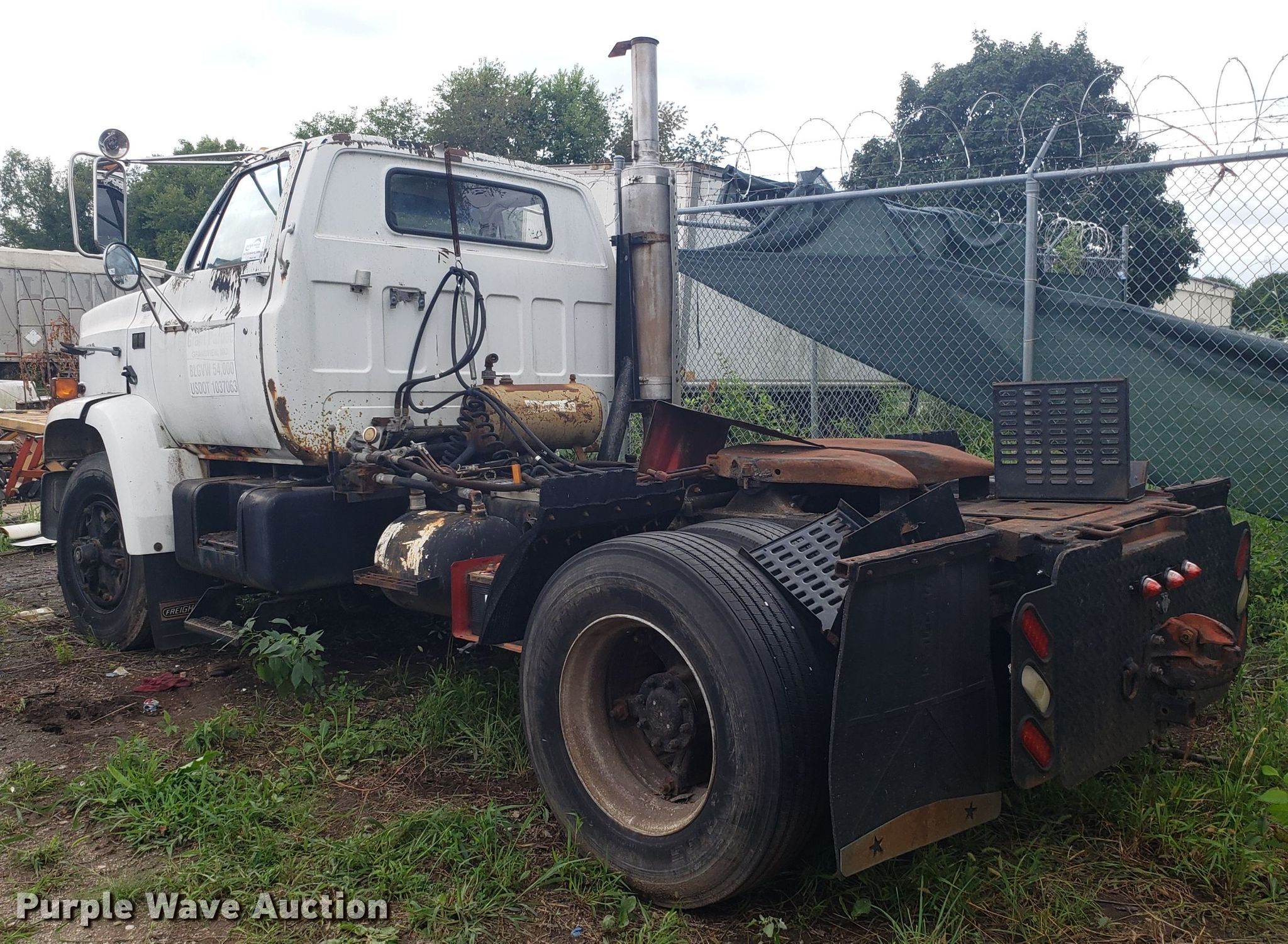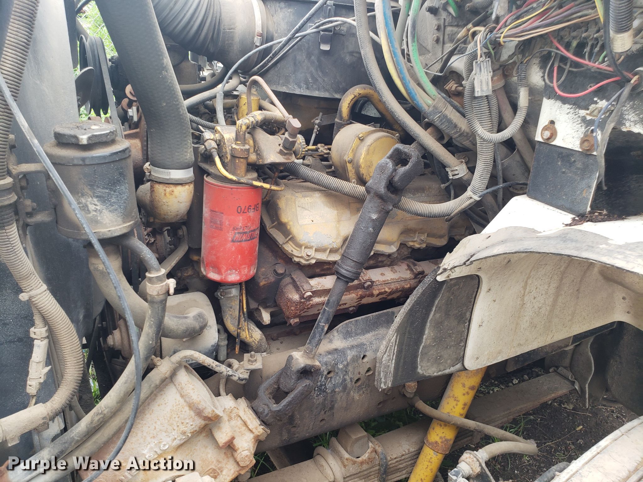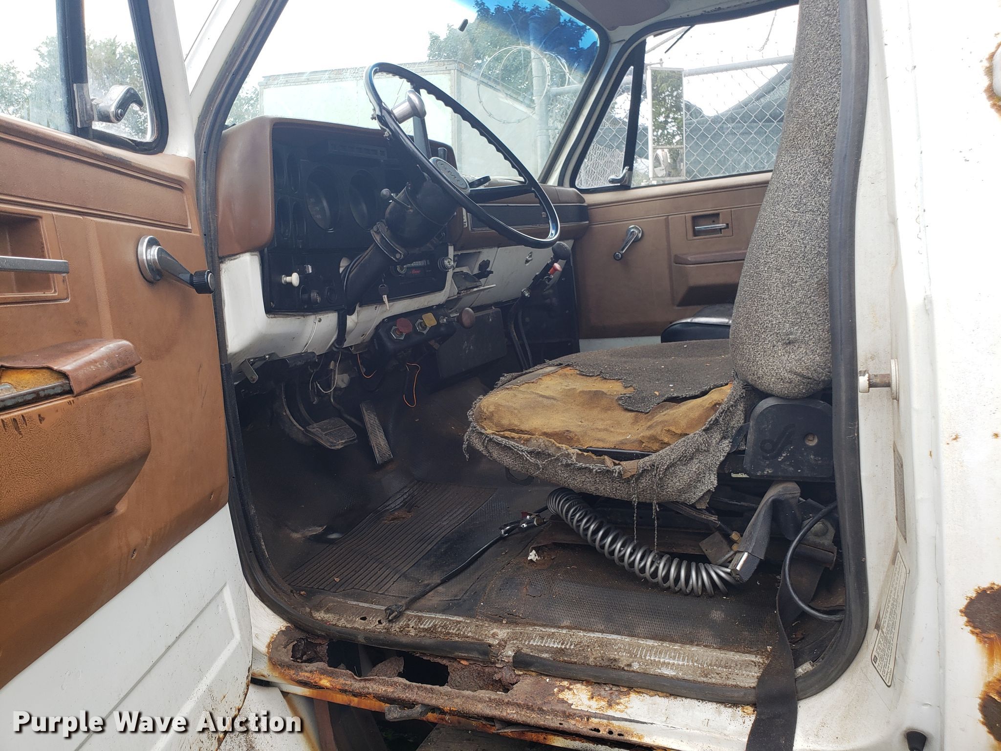 Purple Wave is selling a used Truck Tractor in Missouri. This item is a 1989 GMC TopKick C7000 semi truck with the following: 174,978 miles on odometer, Caterpillar 3208 10.4L V8 diesel engine, Five speed manual transmission, Two speed rear end, Single axle, Fixed fifth wheel plate, Spring suspension, Air brakes, 295/75R22.5 tires, Unknown operating condition