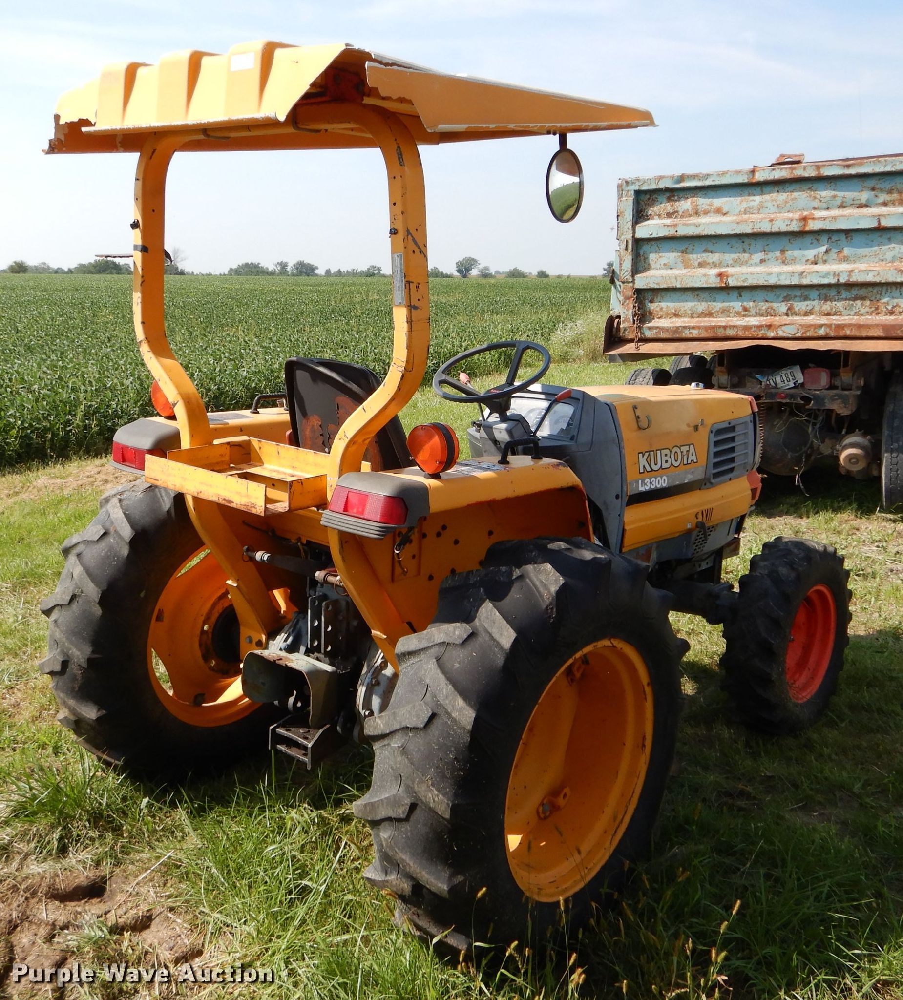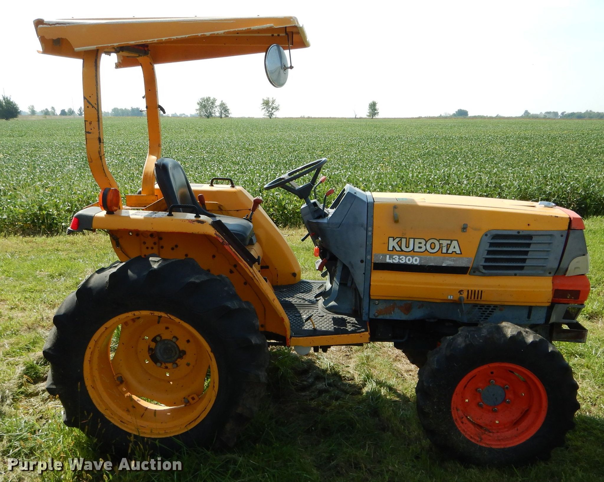 Purple Wave is selling a used Tractor in Iowa. This item is a Kubota L3300 MFWD tractor with the following: 5,189 hours on meter, Kubota 1.6L three cylinder diesel engine, Synchro transmission, 8F-8R gears, 540 PTO, 8-16 front tires, 12.4-24 rear tires, Dead battery