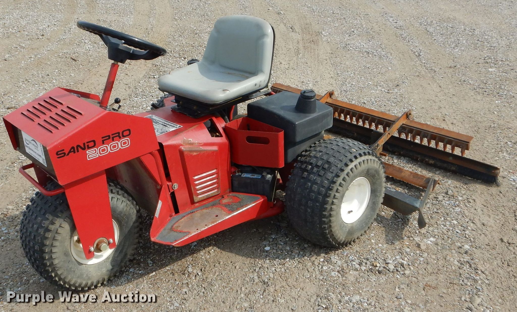 Purple Wave is selling a used Lawn and Garden in Iowa. This item is a Toro Sand Pro 2000 sand rake with the following: 1,137 hours on meter, Single cylinder gas engine, Hydrostatic transmission, 6'W hydraulic drag, 21x11.00-8 tires, Serial 08882-60173