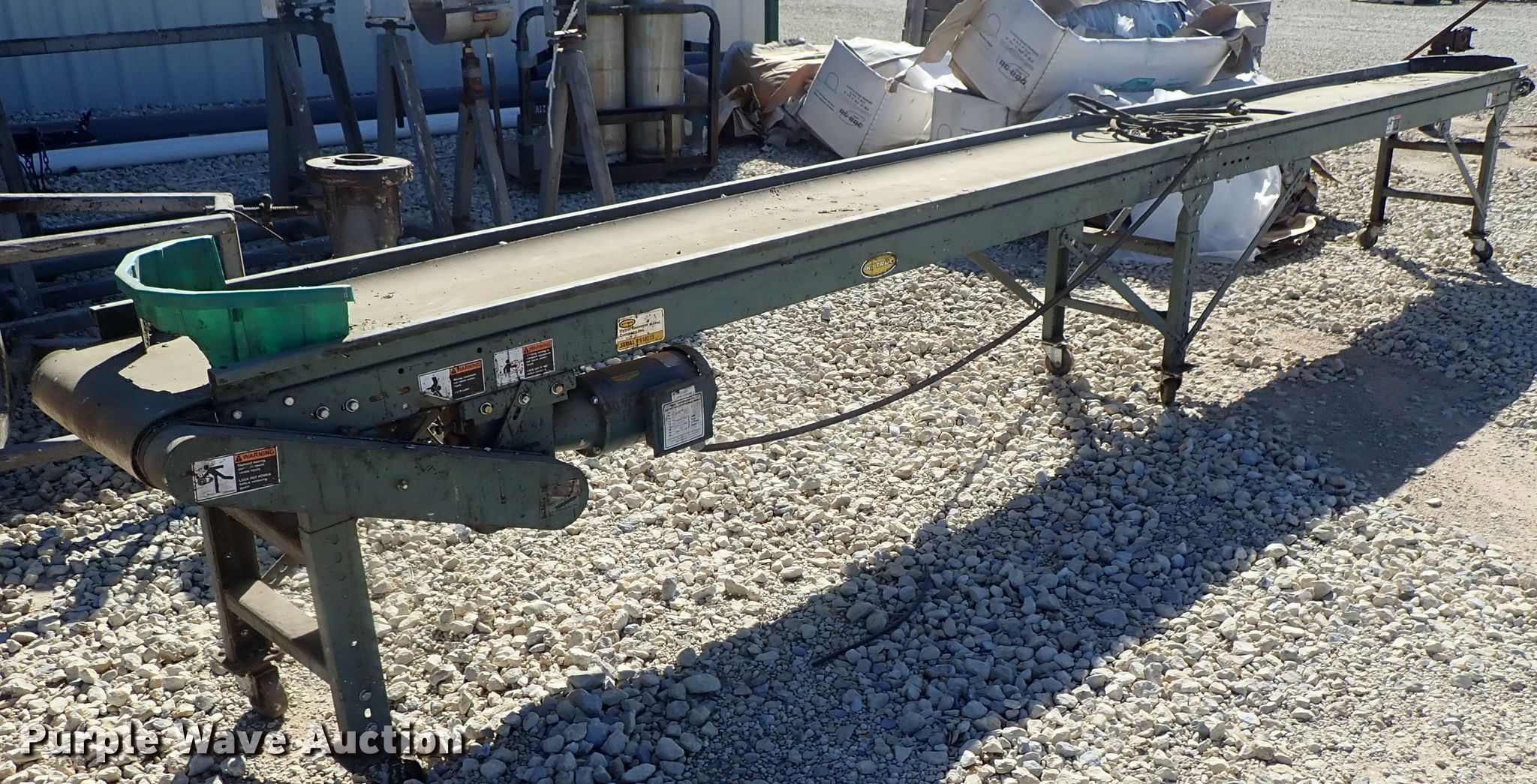 Purple Wave is selling a used Tools in Kansas. This item is a Hytrol conveyor with the following: 20'L x 21"W, Approx. 18"W belt, 230V input, Three phase, Adjustable legs, Wheels, Serial 618019