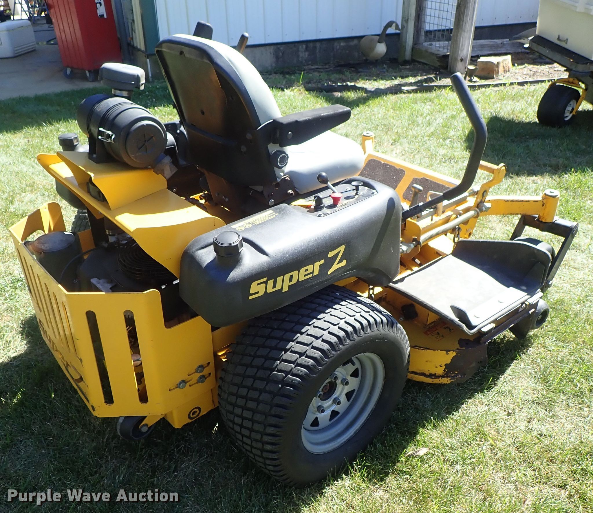 Purple Wave is selling a used Commercial Turf Mower in Kansas. This item is a Hustler Super Z 926741 ZTR lawn mower with the following: 713 hours on meter, 60" cut, Kohler gas engine, Hydrostatic transmission, 24x12.00-12 tires, Serial 04040699
