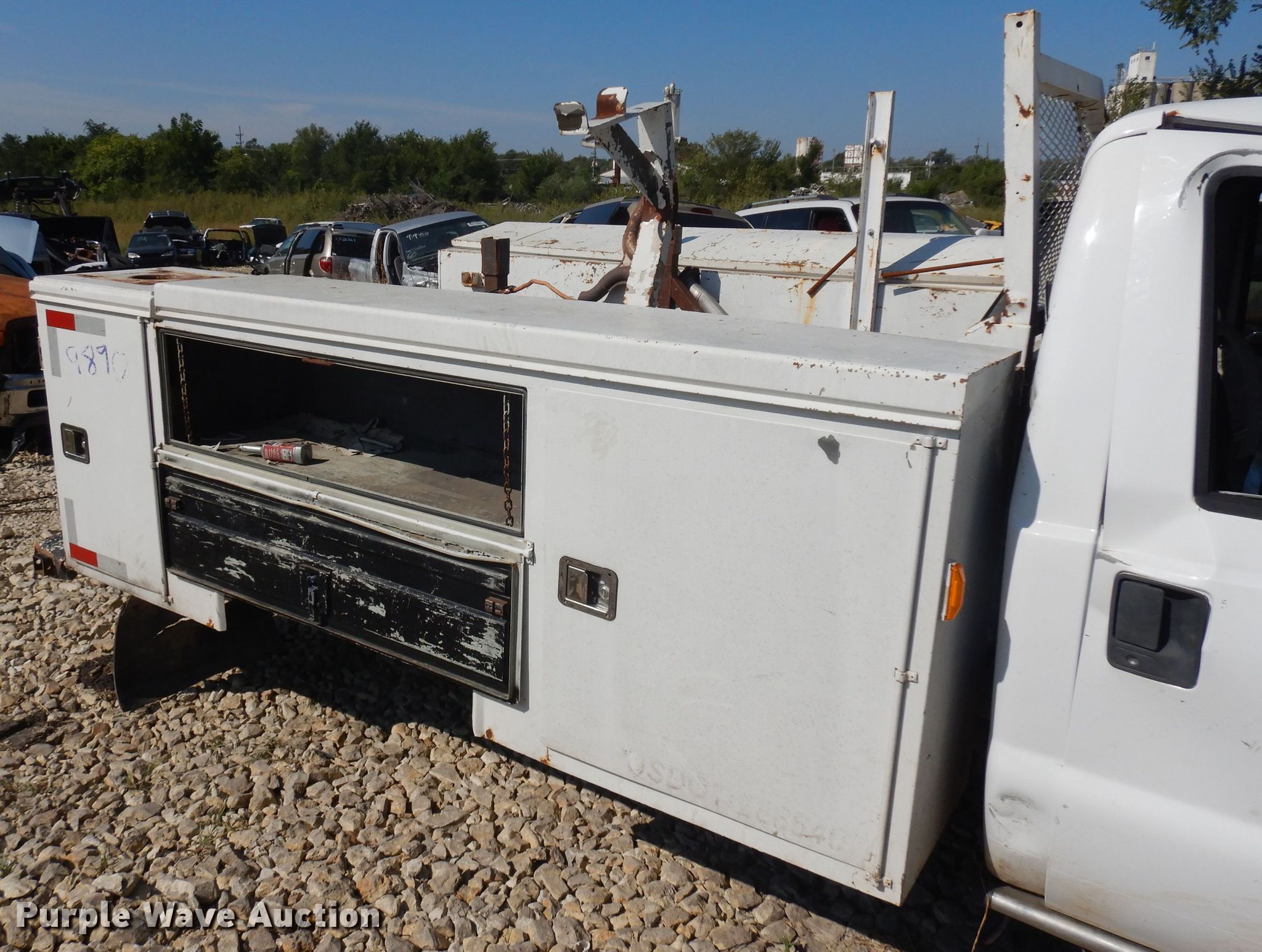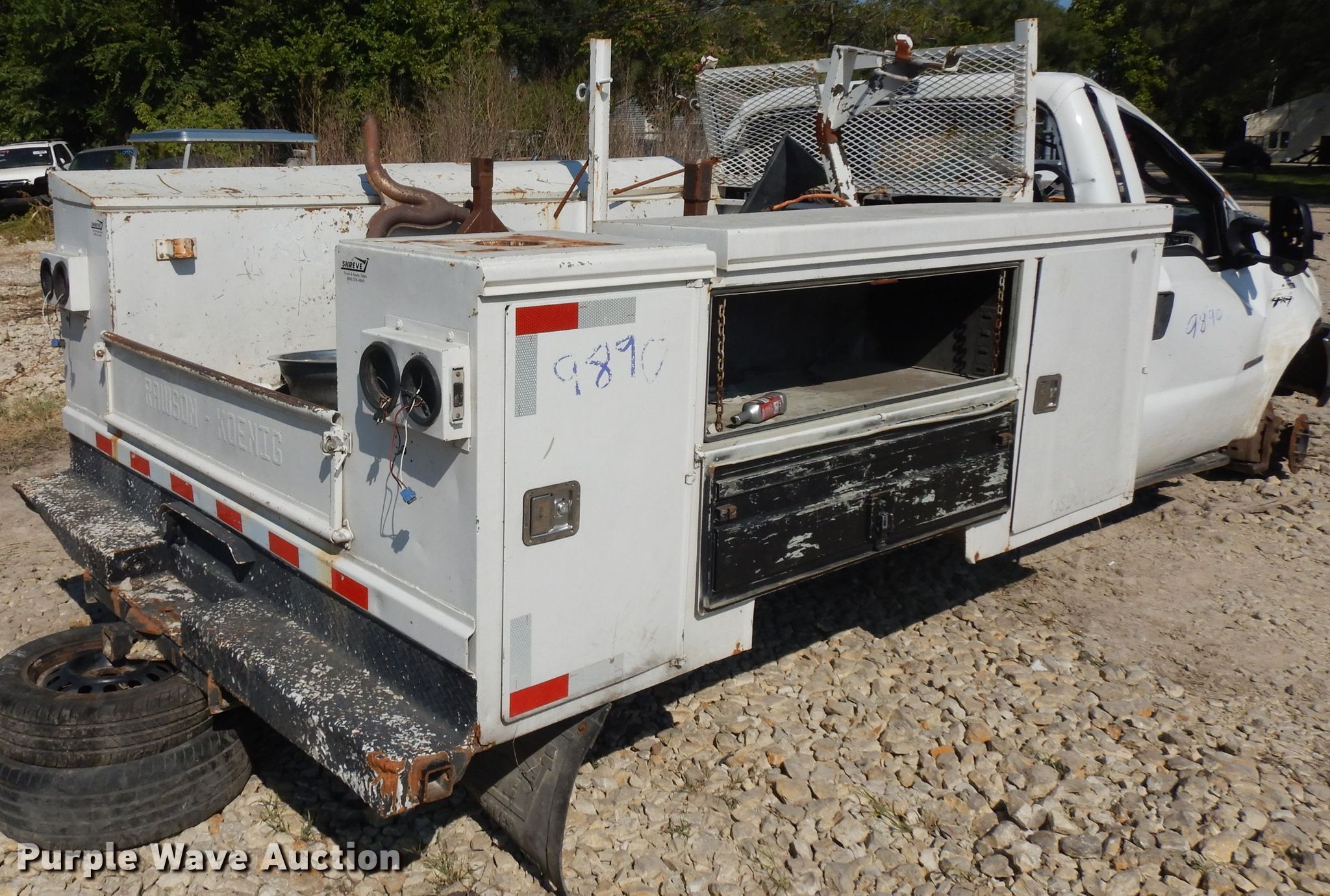 Purple Wave is selling a used Automotive Parts or Acces. in Kansas. This item is a Rawson Koenig utility bed with the following: 9.5'L x 52"W, Removed from 2004 Ford F450 truck