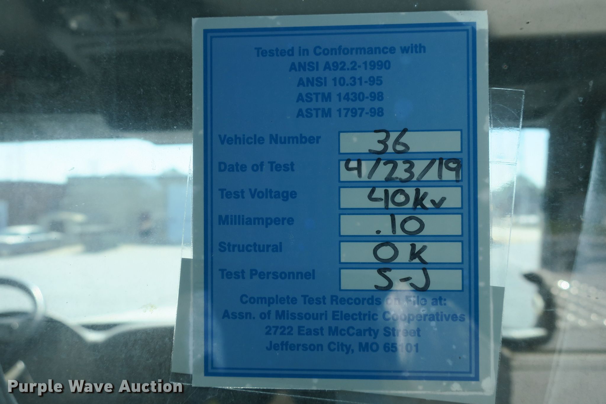 2005 International 7400 bucket truck. 107,881 miles on odometer, International DT466 7.6L L6 diesel engine, Eaton Fuller 10 speed manual transmission, Tandem axle, Heat, PTO, Dakota 182-LB utility bed 17'3"L, DB06248, Lift ALL L0M25-55 articulating boom 600 lbs maximum lift capacity, 55' maximum lift height, Man baskets Platform controls, Material handler, Air suspension, Air brakes, 195" wheelbase, 315/80R22.5 front tires, 11R22.5 rear tires, Unit# 36. Missouri title. 1HTWHAAR55J036809. Southwest Electric Coop. 1023 S Springfield Ave. Bolivar, MO 65613