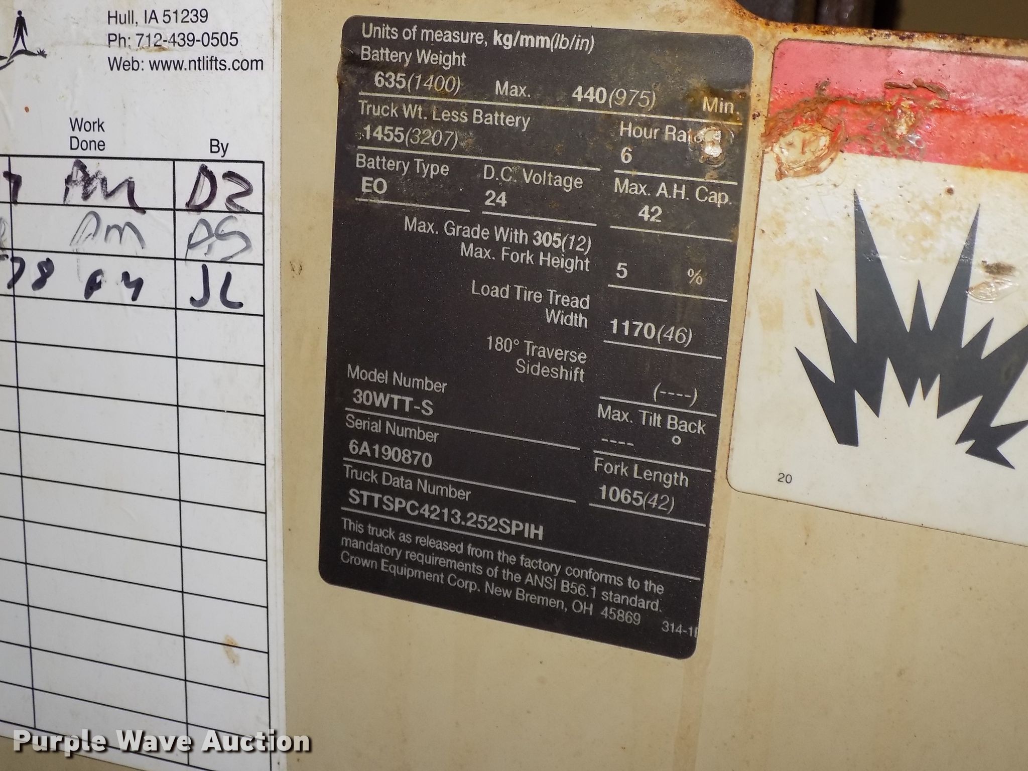 Crown 30WTT-S forklift has sold in Omaha, Nebraska for $132. Item DG2455 sold on October 17th, 2019.