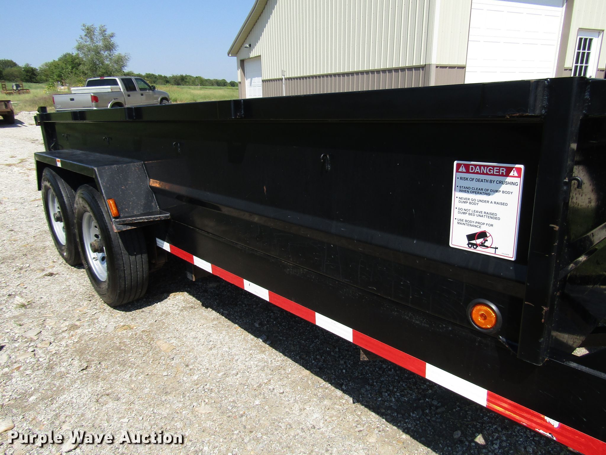 Purple Wave is selling a used Dump Trailer in Kansas. This item is a 2008 Hillsboro dump trailer with the following: 22'L x 102"W overall dimensions, 14'L x 81"W steel deck, 23" side height, 5'L ramps, Dual cylinder hoist, Manual operated end gate, Trailer controls, Single leg landing gear, Spring suspension, Electric brakes, Tandem axle, Steel wheels, 235/85R16 tires, GVWR 14,500 lbs, GAWR 6,400 lbs
