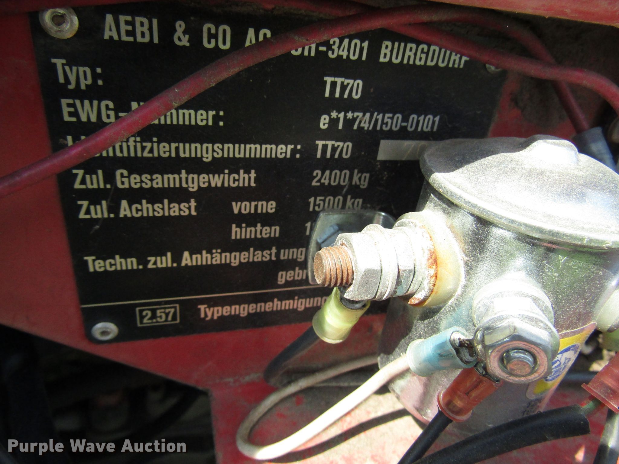 Purple Wave is selling a used Tractor in Illinois. This item is a Aebi Terratrac TT70S tractor with the following: 762 hours on meter, Four cylinder diesel engine, Hydrostatic transmission, Four wheel drive, Four wheel steer, Enclosed cab, AC, Front and rear 540 PTO, Three point, (2) front auxiliary hydraulic remotes, (2) rear auxiliary hydraulic remotes, 7-16/31 x 15.50-15 tires, Possible lift group issues