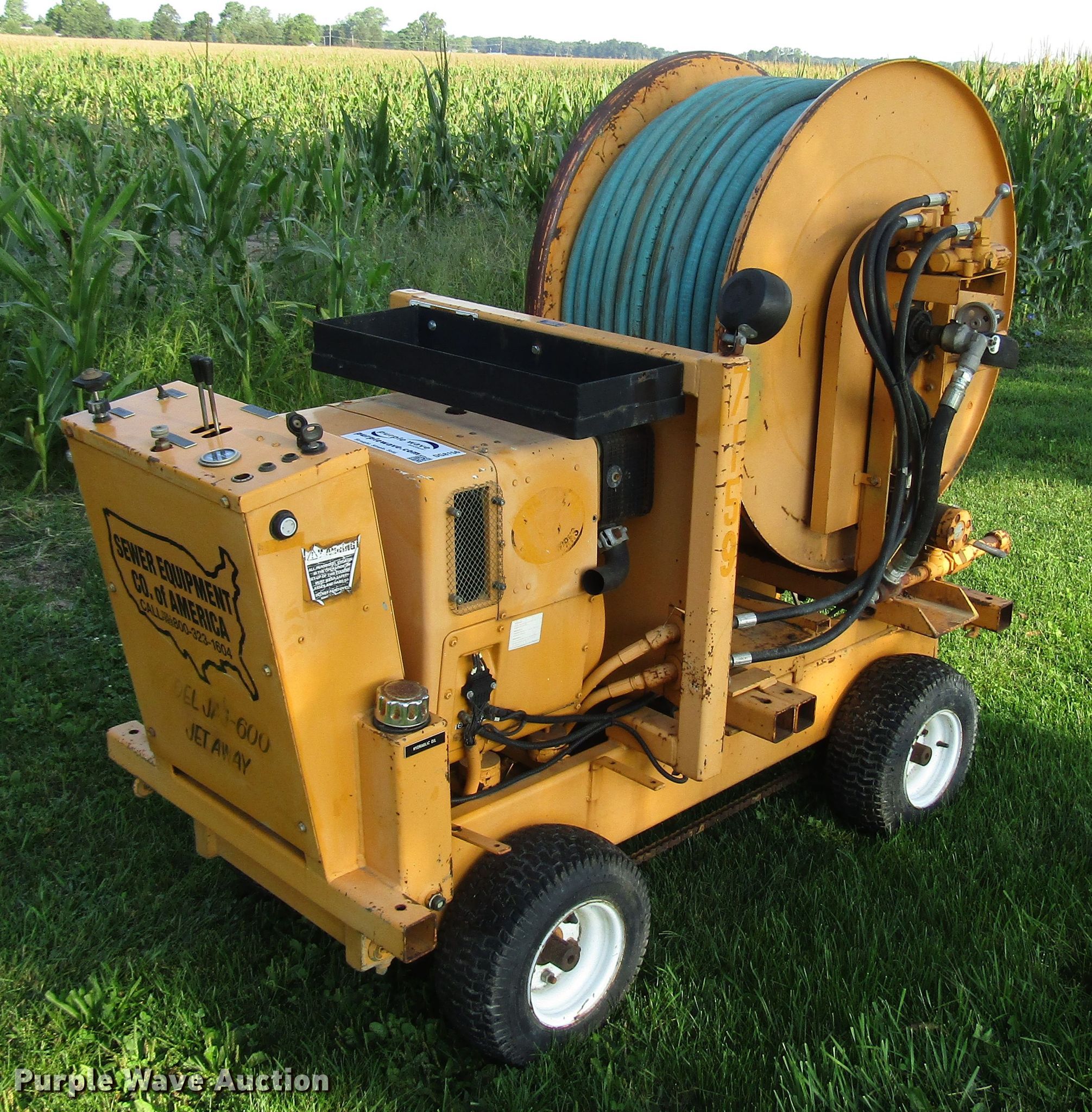 Purple Wave is selling a used Trailer Other in Indiana. This item is a 2000 Sewer Equipment Company of America JAJ600 sewer easement machine with the following: 646 hours on meter, Hatz 1D81C single cylinder diesel engine, Motor number 0731998025386, Approximately 475'L x 1" diameter hose, 10 x 6.50-8 tires, Serial 1829
