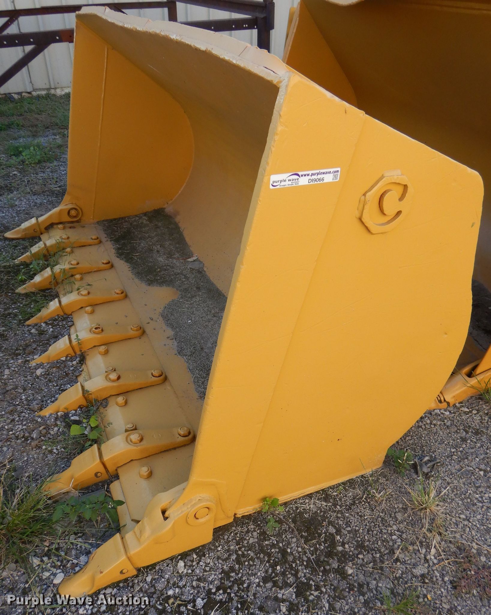 Purple Wave is selling a used Bucket or Loader Attach. in Kansas. This item is a 97"W bucket with the following: (8) teeth, 28.5" O.D. hooks, 25" O.D. ears, Fits Caterpillar 963