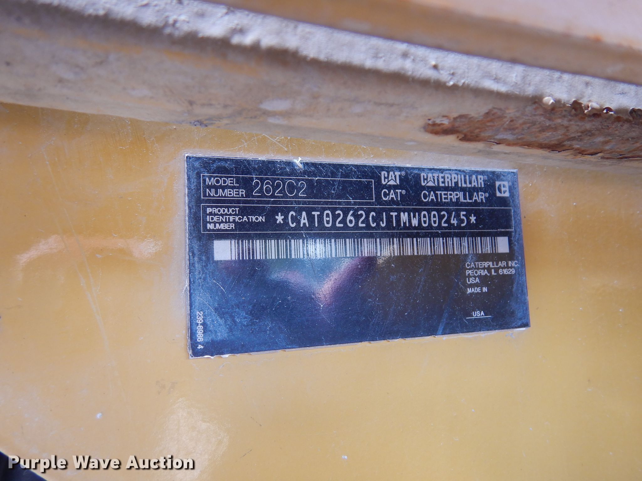 Purple Wave is selling a used Skid Steer Loader in Texas. This item is a 2012 Caterpillar 262C Series 2 skid steer with the following: 5,818 hours on meter, Caterpillar 3034T four cylinder diesel engine, Two speed hydrostatic transmission, Enclosed cab, Hand bucket controls, Hydraulic quick coupler, Solid tires, Door missing, Serial CAT0262CJTMW00245