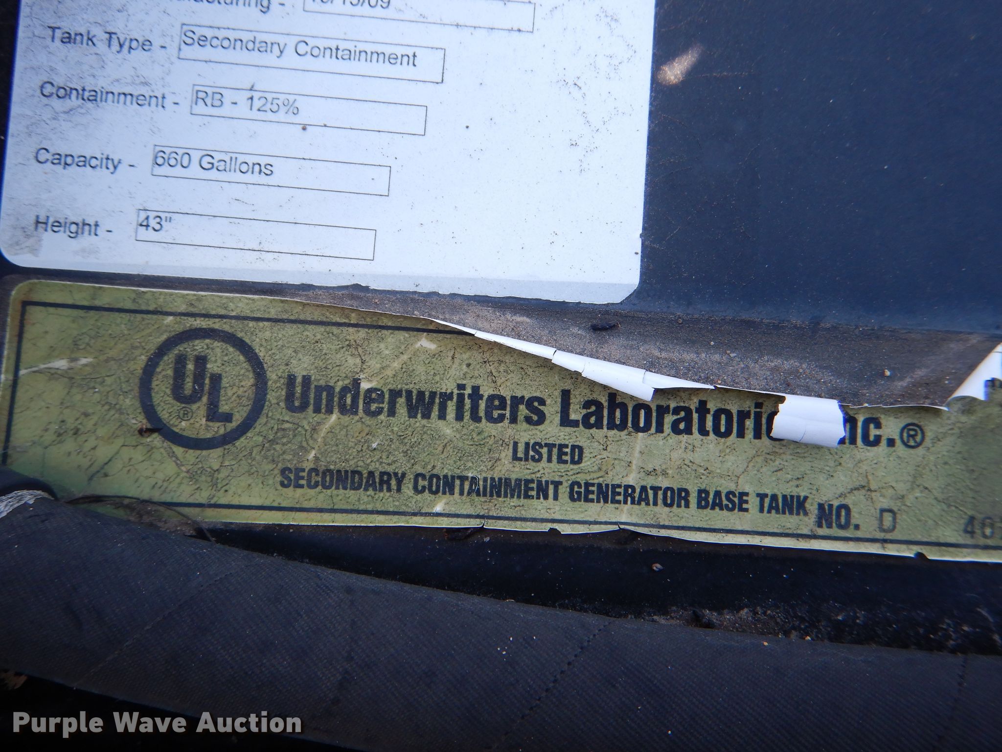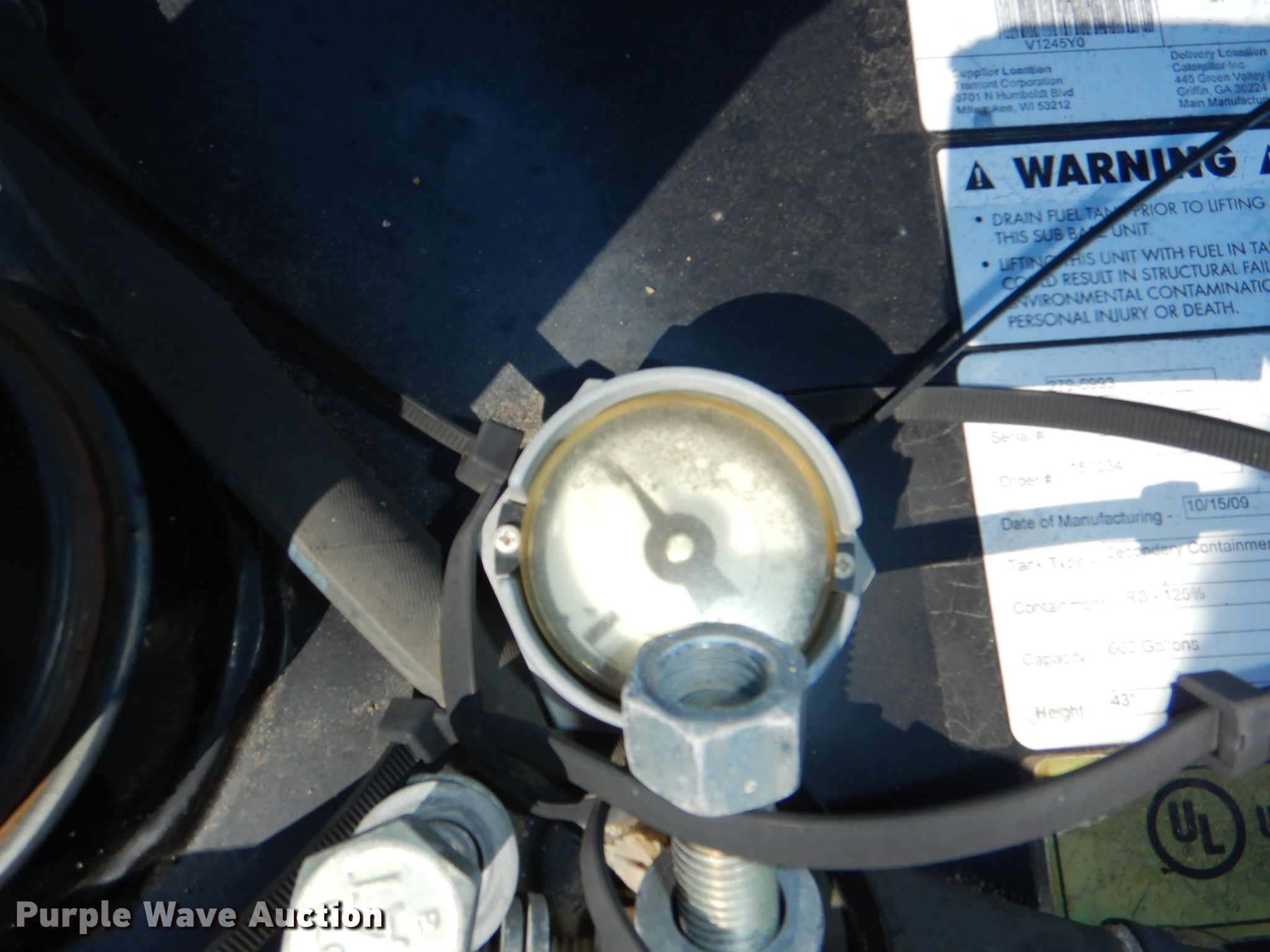 2009 Underwriters Laboratories Inc. fuel tank. 166" x 45" x 43", 660 gallon capacities, Containment RB-12590, Serial 71636, Unit# LEN00010. Foley Caterpillar. 1737 SW 42nd St. Topeka, KS 66609