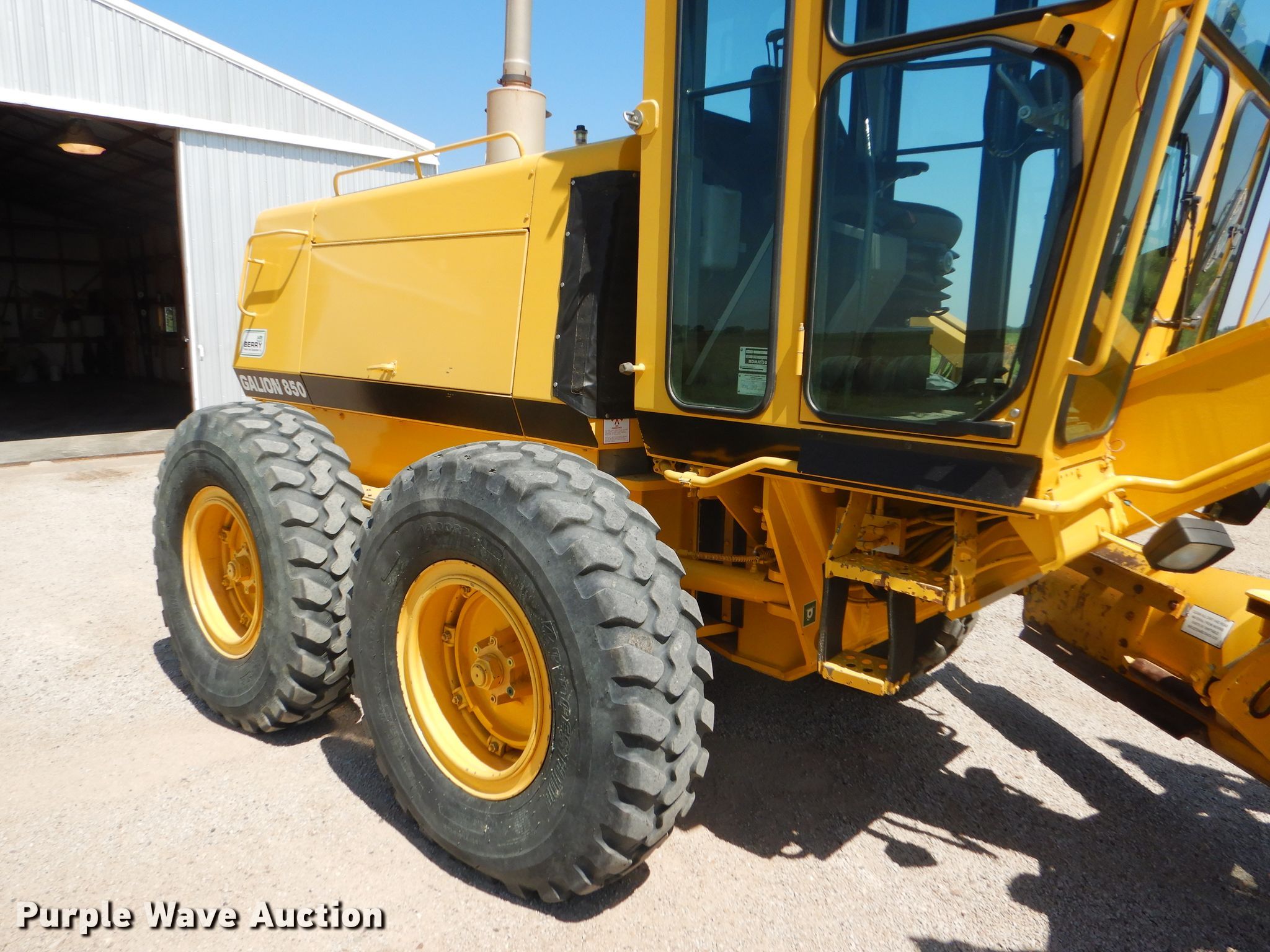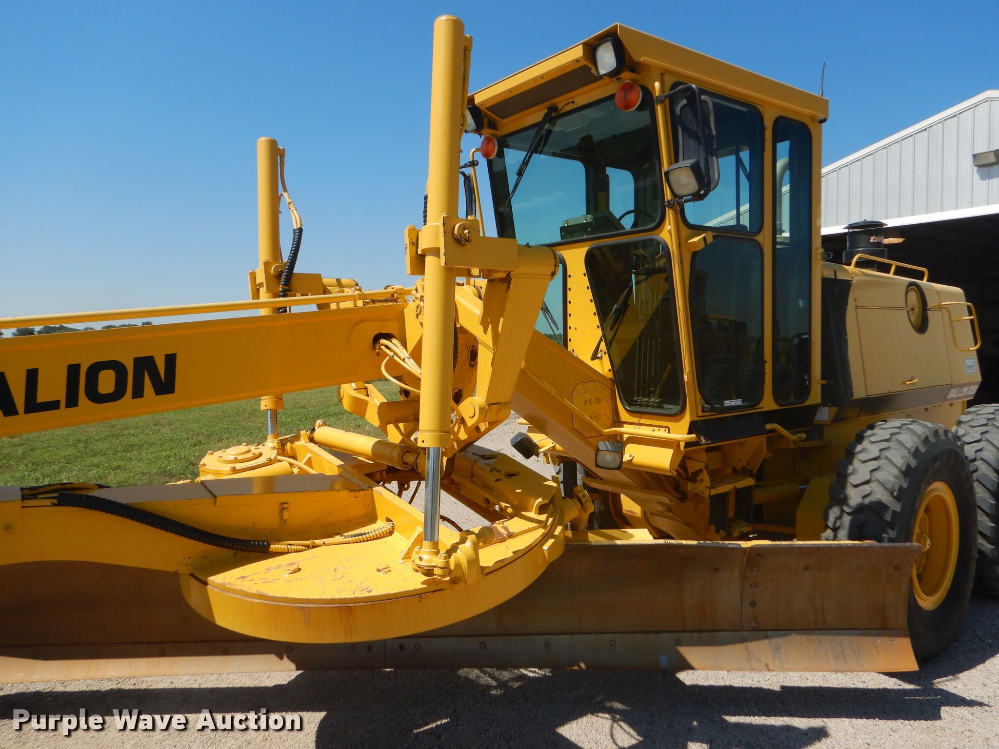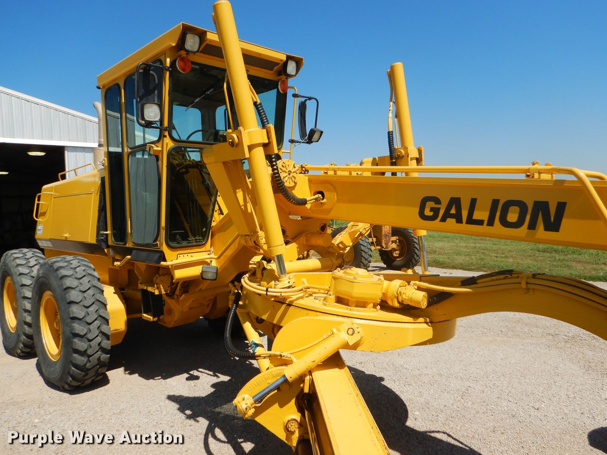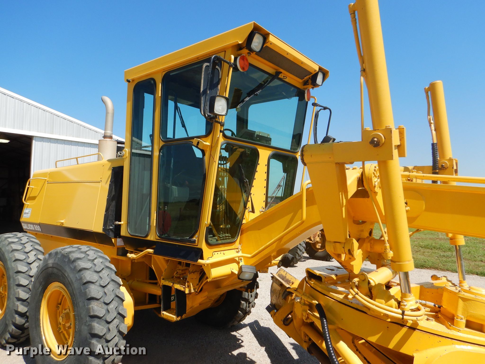 Purple Wave is selling a used Motor Grader in Kansas. This item is a 2002 Galion 850C motor grader with the following: 5,404 hours on meter, Komatsu 8.3L six cylinder diesel engine, 177 HP, Powershift transmission, 6F-3R gears, All wheel drive, Enclosed cab, AC and heat, Nine hydraulic control valves, 16'W moldboard, Tip control, Side shift, 14.00-24 tires, Additional tire and wheel, Serial G580063U210885