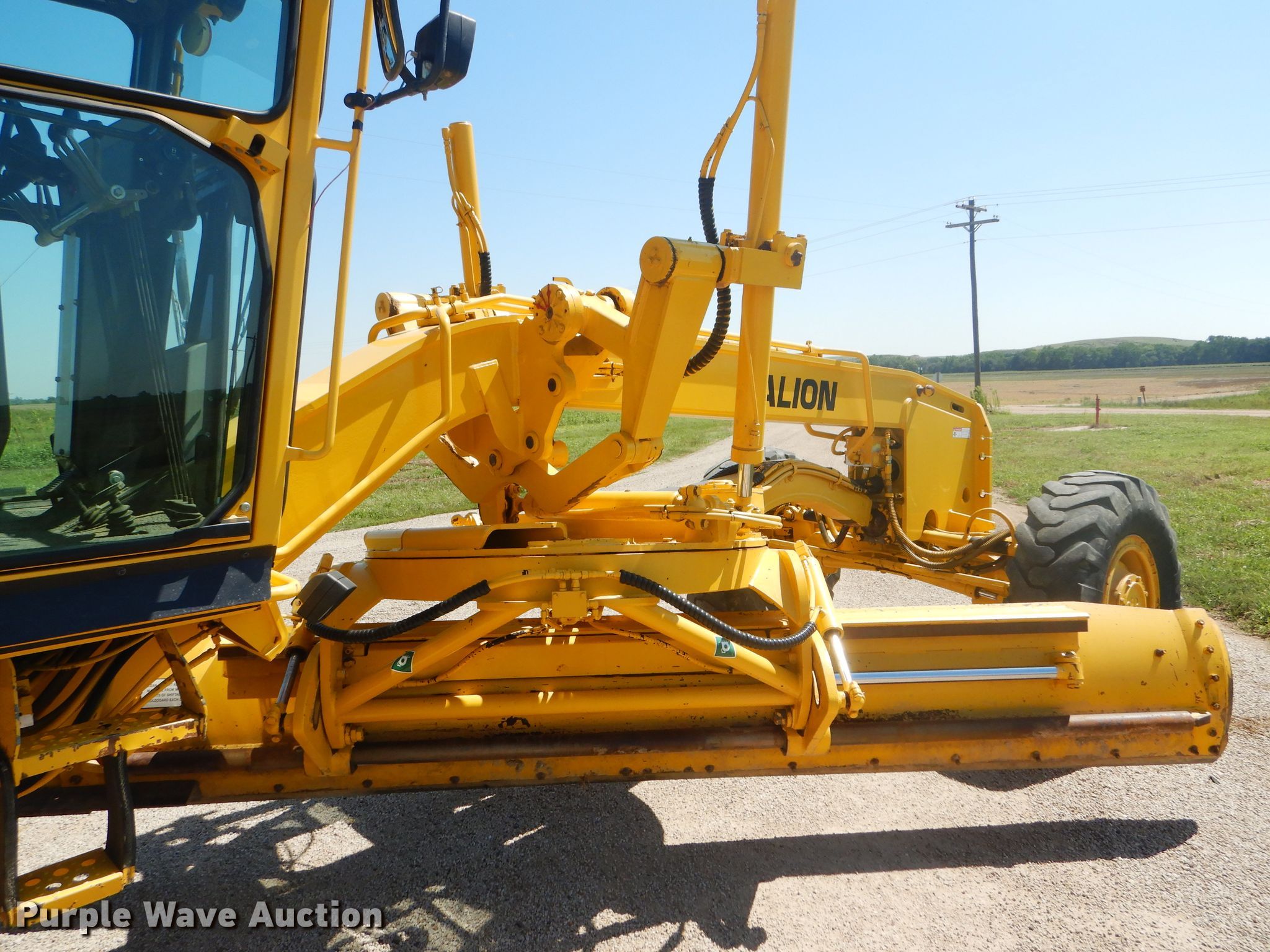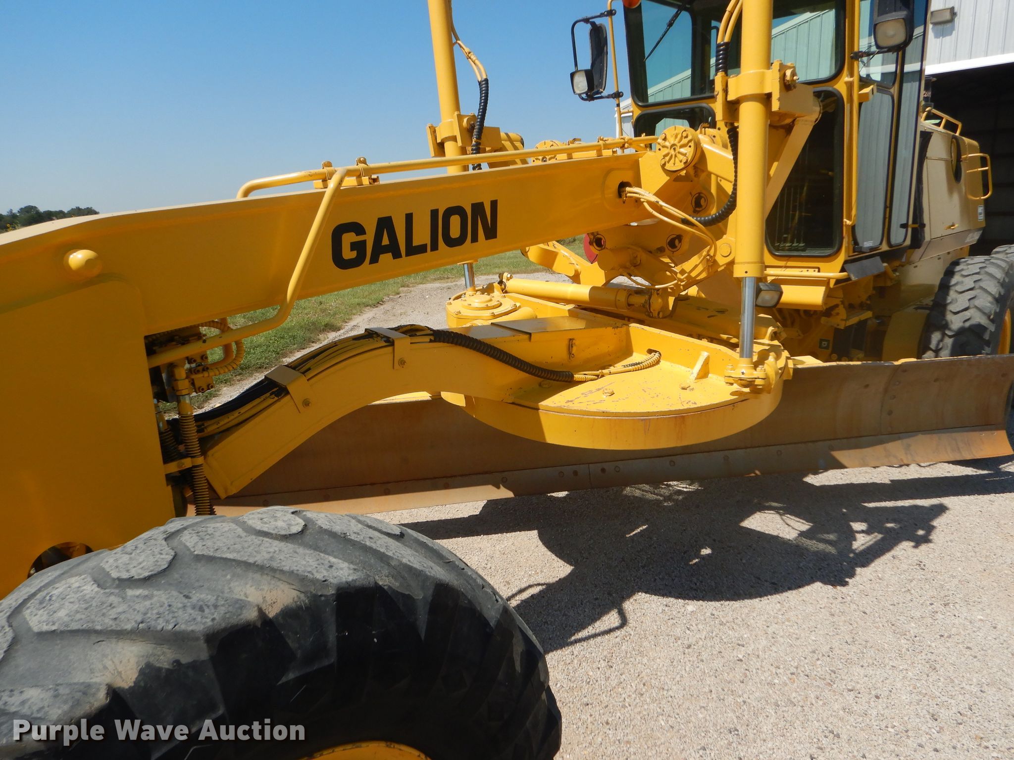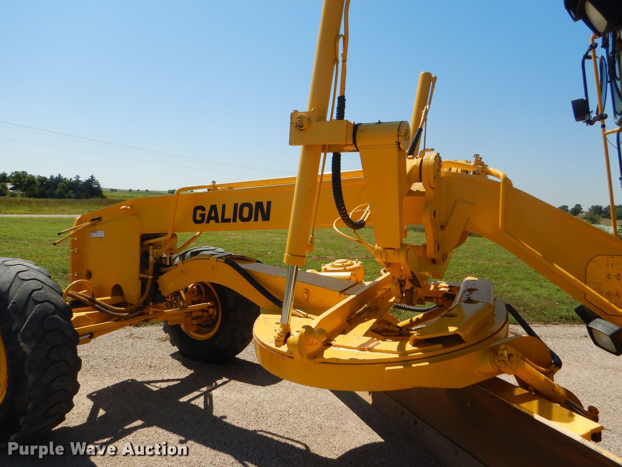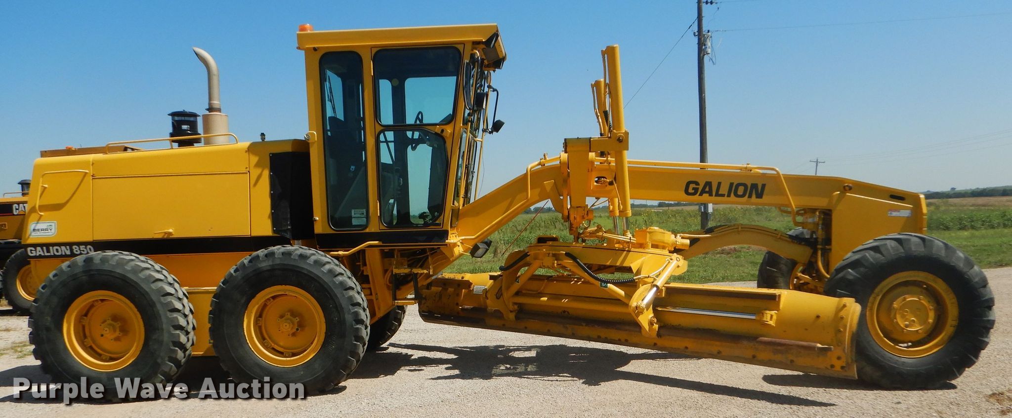 Purple Wave is selling a used Motor Grader in Kansas. This item is a 2002 Galion 850C motor grader with the following: 5,404 hours on meter, Komatsu 8.3L six cylinder diesel engine, 177 HP, Powershift transmission, 6F-3R gears, All wheel drive, Enclosed cab, AC and heat, Nine hydraulic control valves, 16'W moldboard, Tip control, Side shift, 14.00-24 tires, Additional tire and wheel, Serial G580063U210885