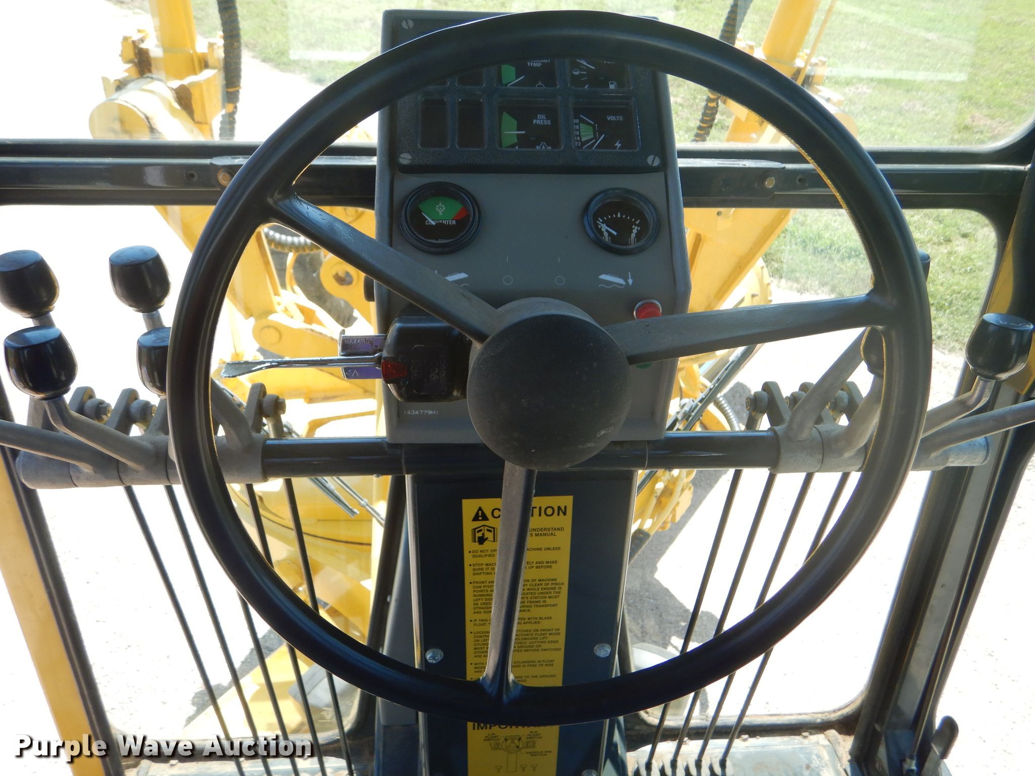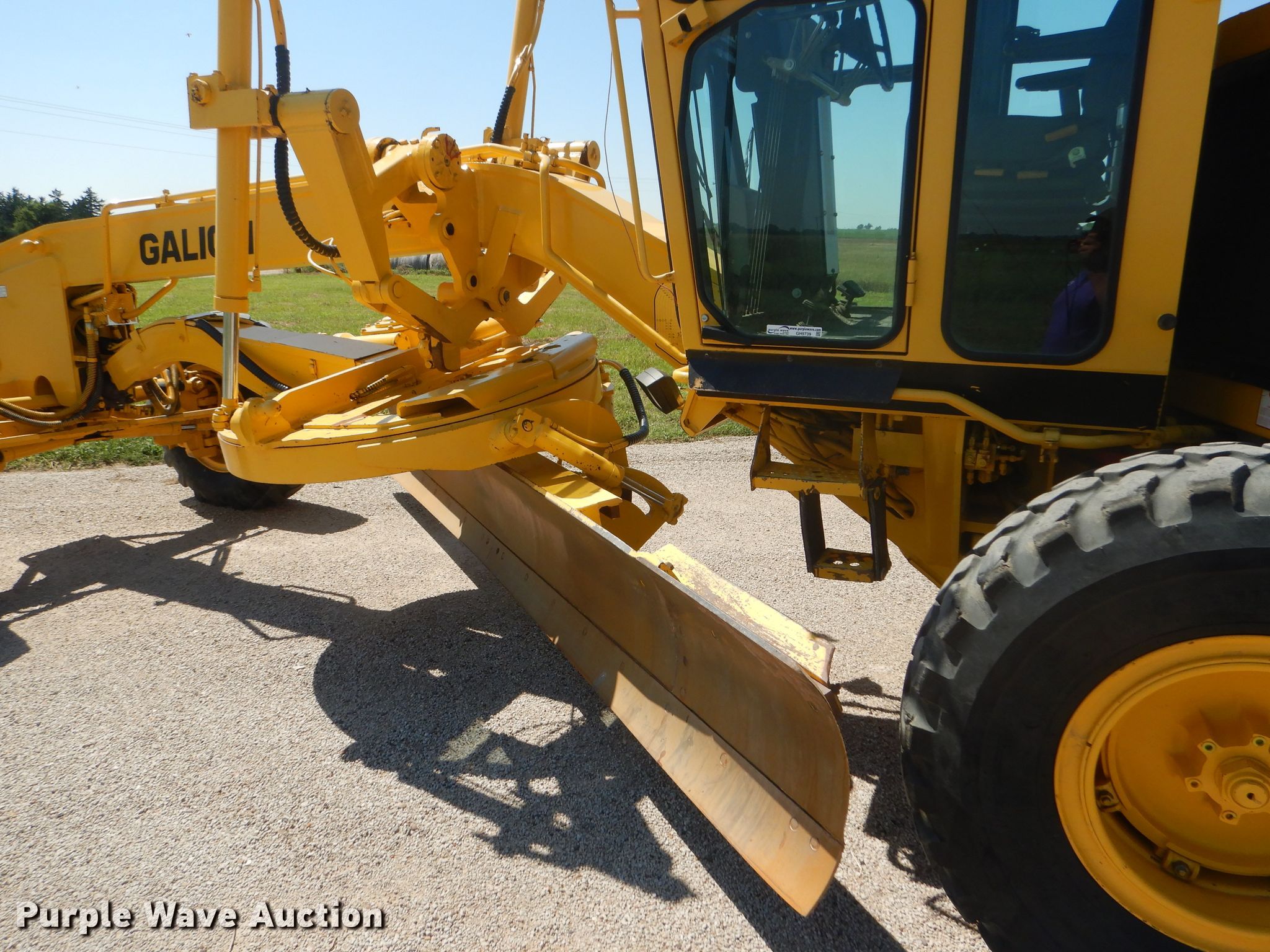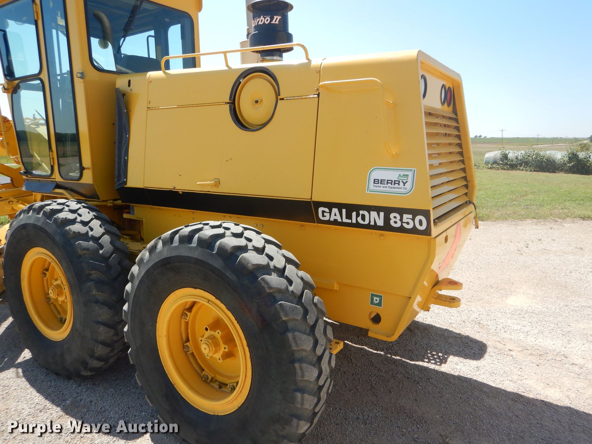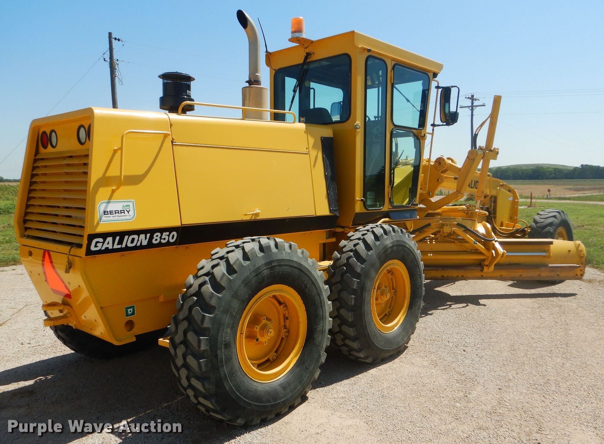 Purple Wave is selling a used Motor Grader in Kansas. This item is a 2002 Galion 850C motor grader with the following: 5,404 hours on meter, Komatsu 8.3L six cylinder diesel engine, 177 HP, Powershift transmission, 6F-3R gears, All wheel drive, Enclosed cab, AC and heat, Nine hydraulic control valves, 16'W moldboard, Tip control, Side shift, 14.00-24 tires, Additional tire and wheel, Serial G580063U210885