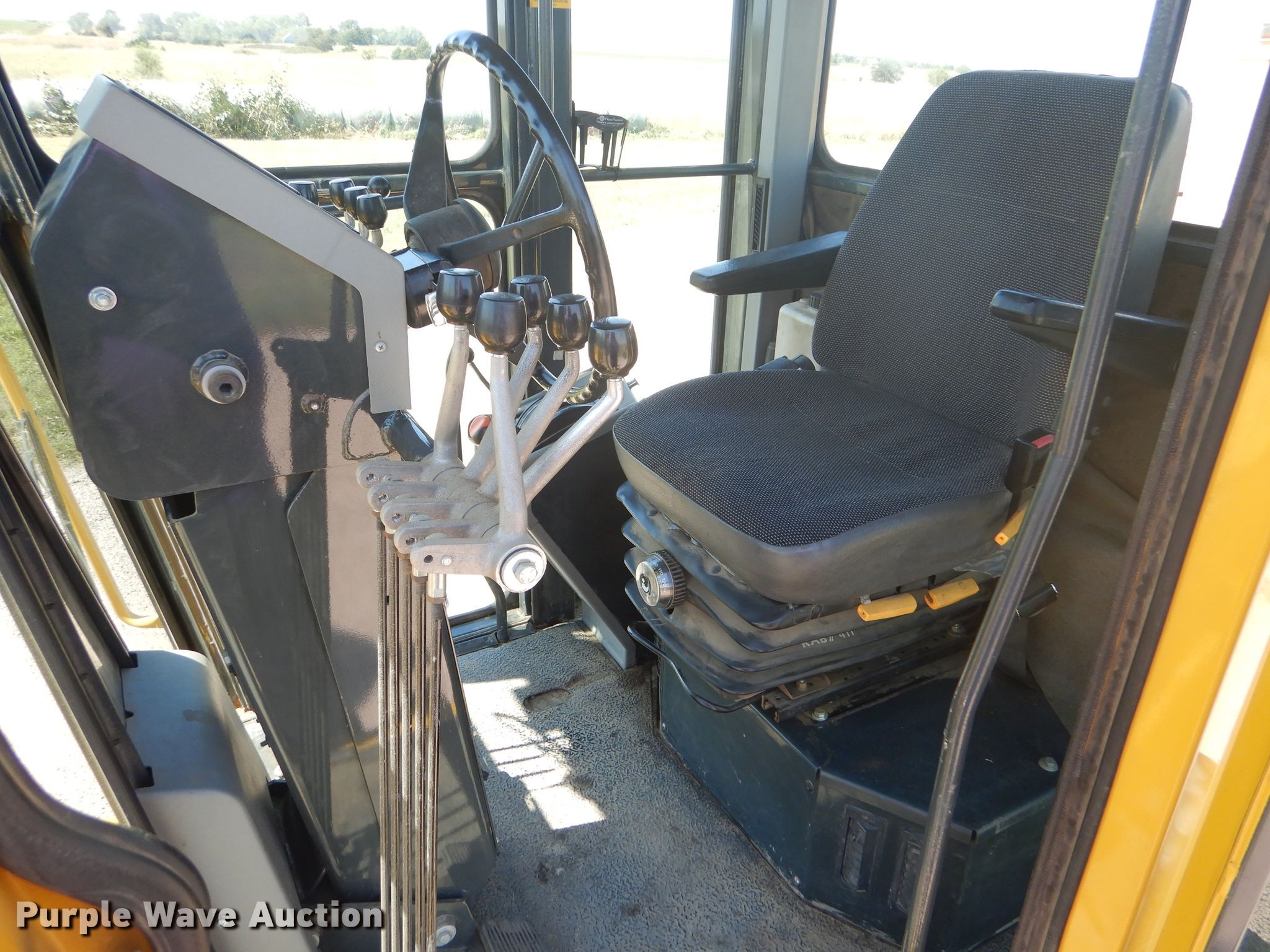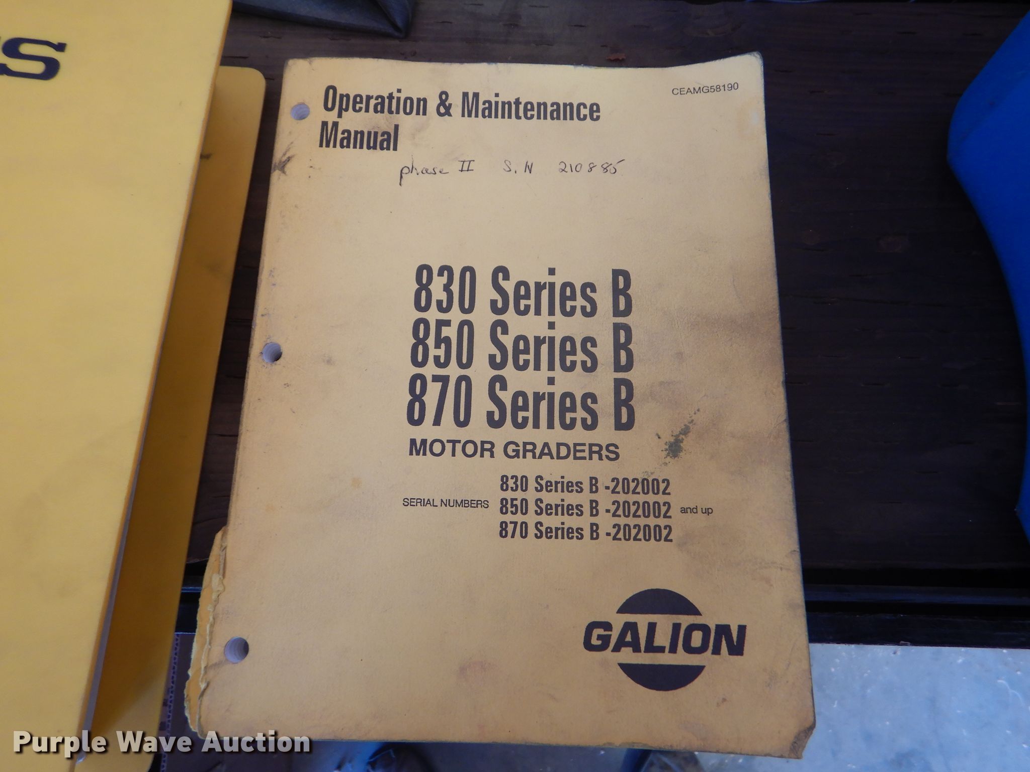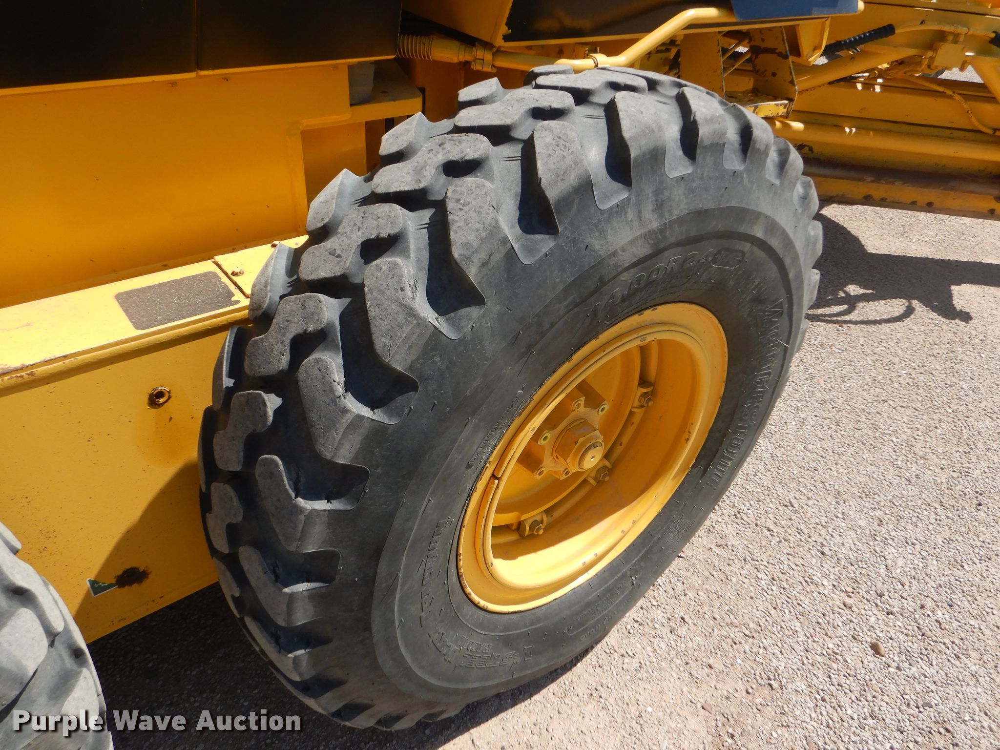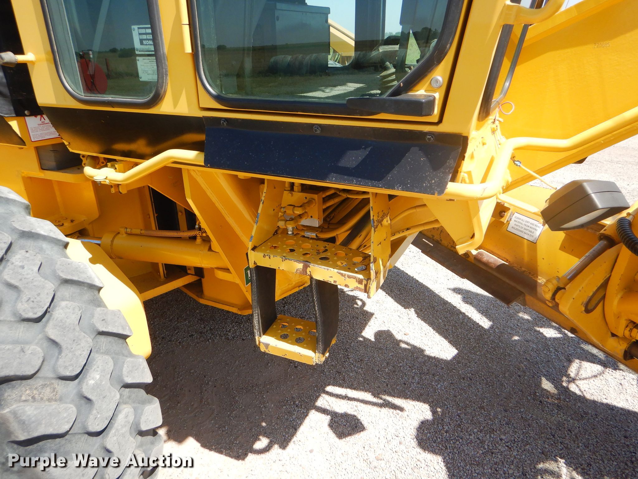 Purple Wave is selling a used Motor Grader in Kansas. This item is a 2002 Galion 850C motor grader with the following: 5,404 hours on meter, Komatsu 8.3L six cylinder diesel engine, 177 HP, Powershift transmission, 6F-3R gears, All wheel drive, Enclosed cab, AC and heat, Nine hydraulic control valves, 16'W moldboard, Tip control, Side shift, 14.00-24 tires, Additional tire and wheel, Serial G580063U210885