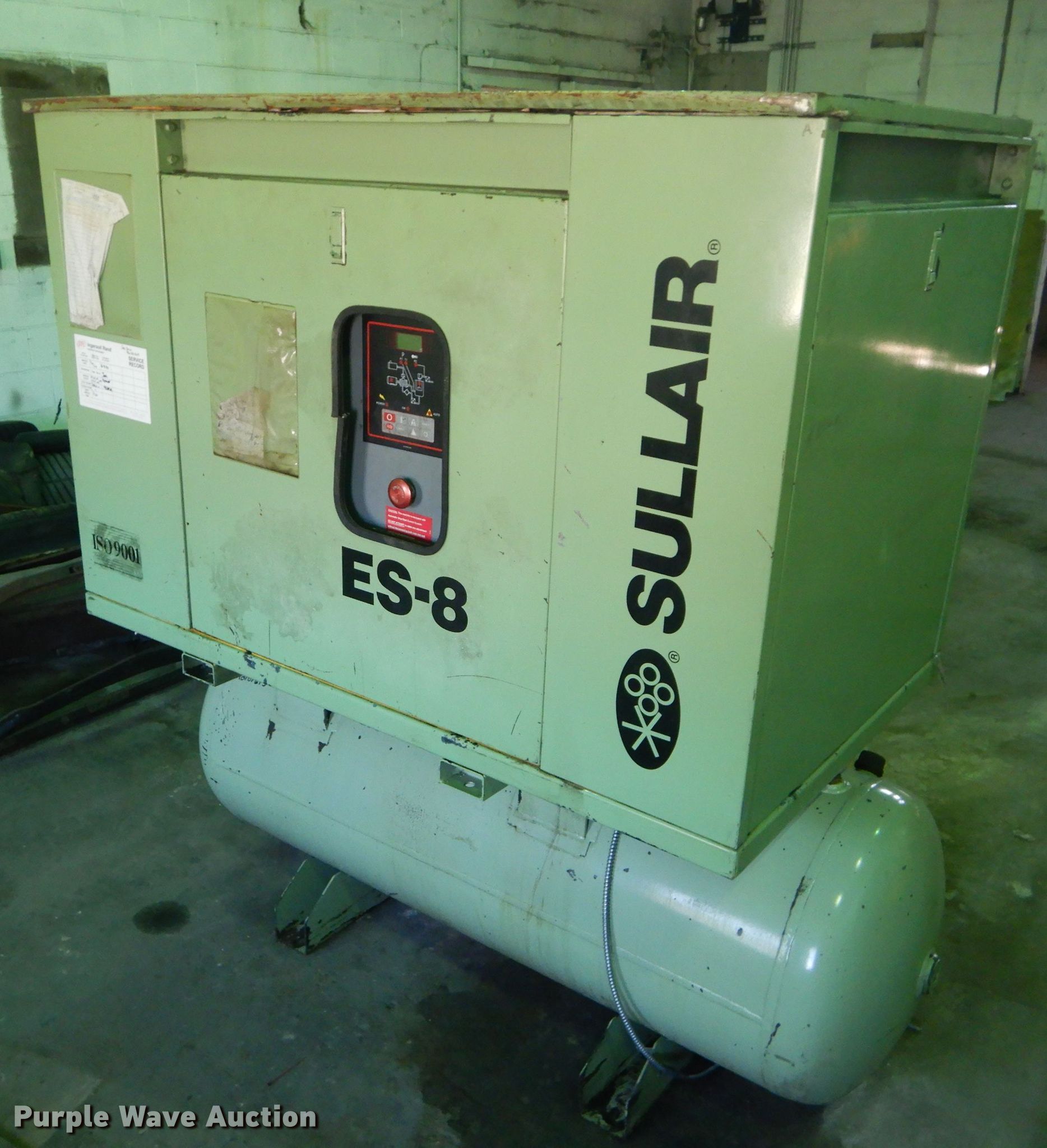 Purple Wave is selling a used Air Compressor in Kansas. This item is a Sullair ES-8 air compressor with the following: Three phase, Unknown operating condition