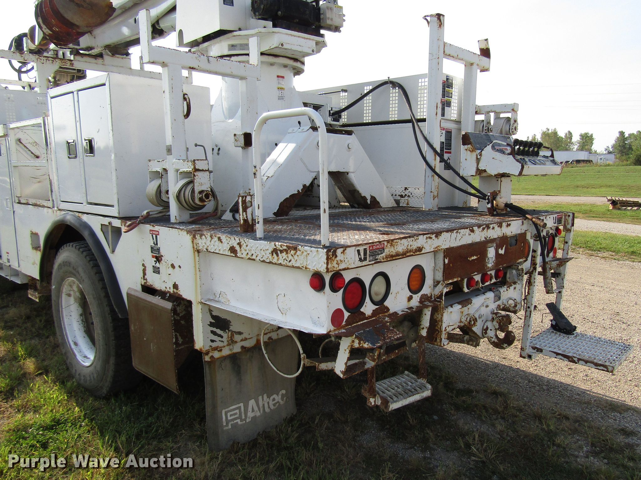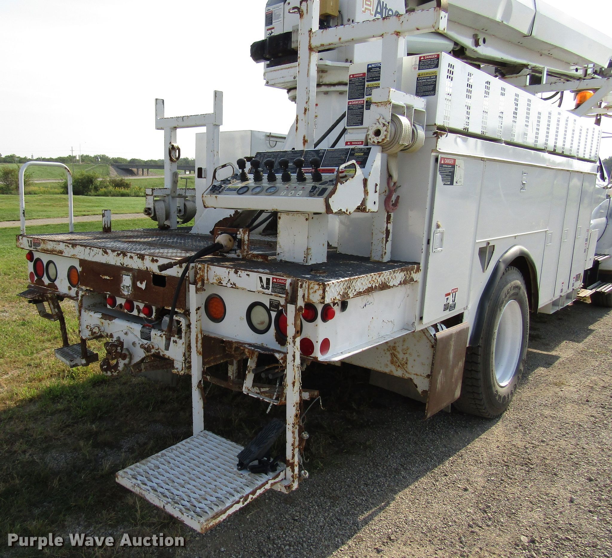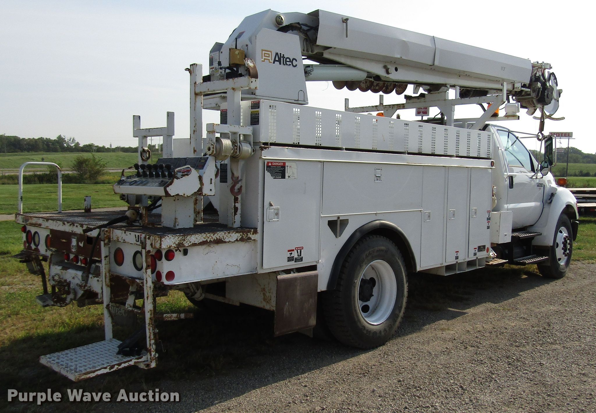 Purple Wave is selling a used Digger Derrick Truck in Kansas. This item is a 2008 Ford F750 Super Duty digger derrick truck with the following: 107,723 miles on odometer, Caterpillar C7 7.2L L6 diesel engine, Allison automatic transmission, Single axle, AC and heat, PTO, Altec 17.5'L utility bed, Serial 37-11194772, 2008 Altec DM45BR insulated, telescopic boom, 35' boom length, Ground controls, Remote control, Material handler, Pole guide, 18" diameter auger, Serial 0608DV3610, Winch, 15,000 lbs capacity, Air brakes, Spring suspension, GVWR 33,000 lbs, 11R22.5 tires