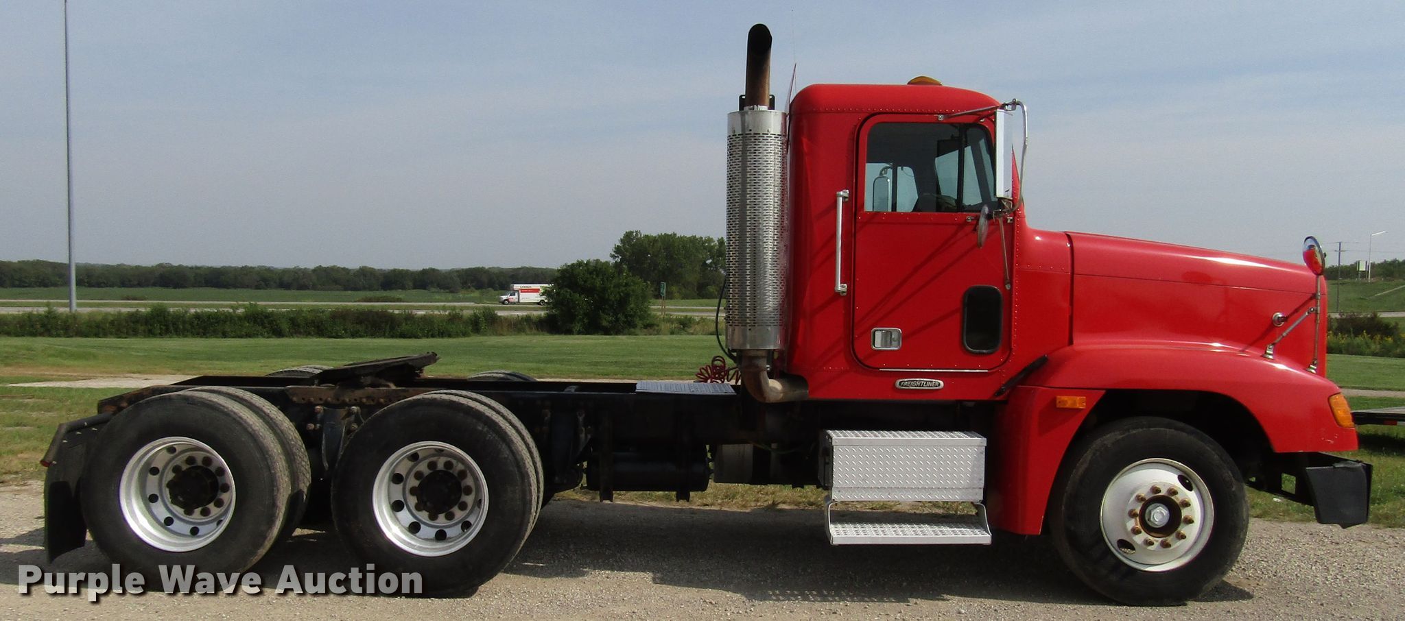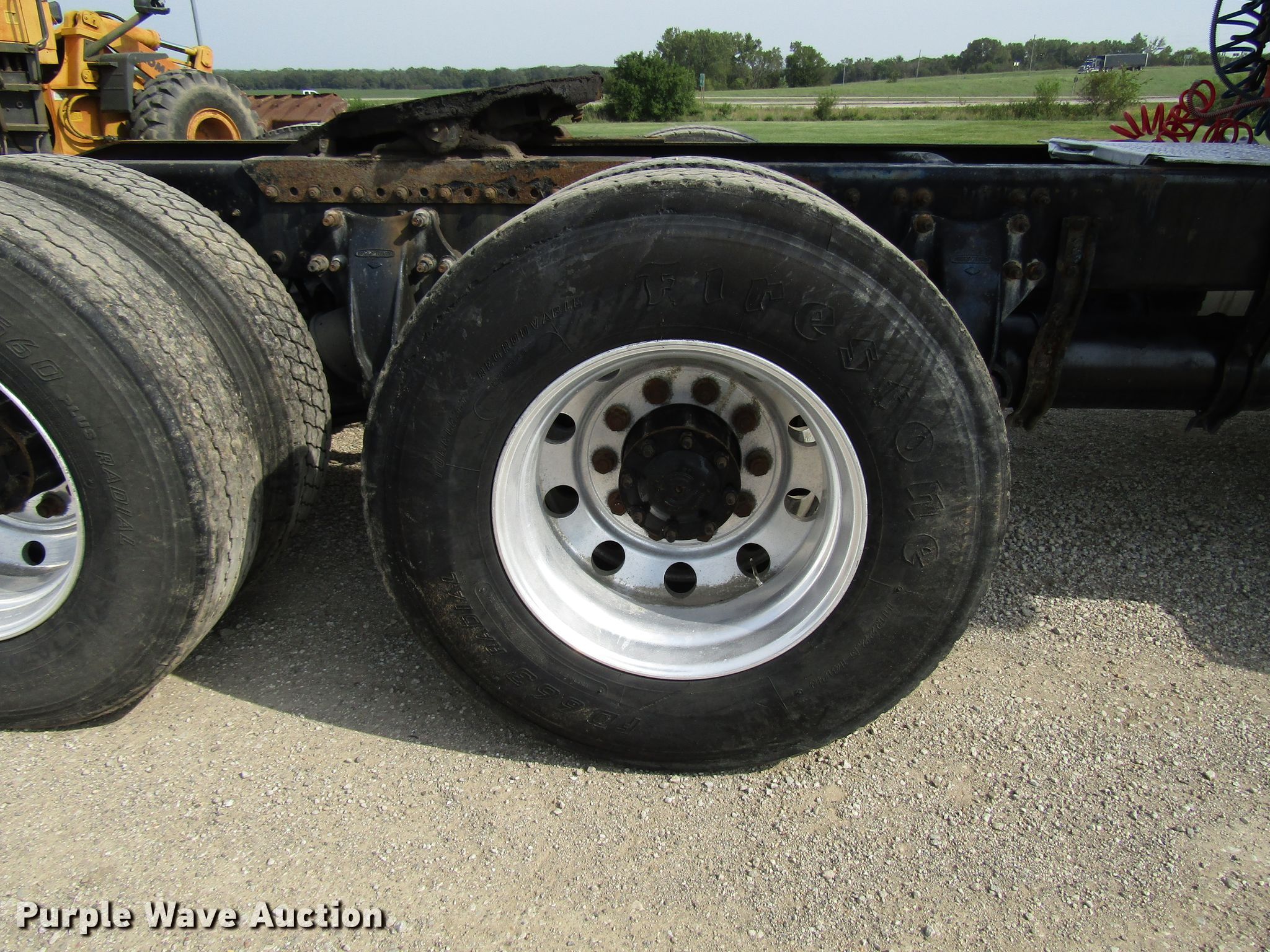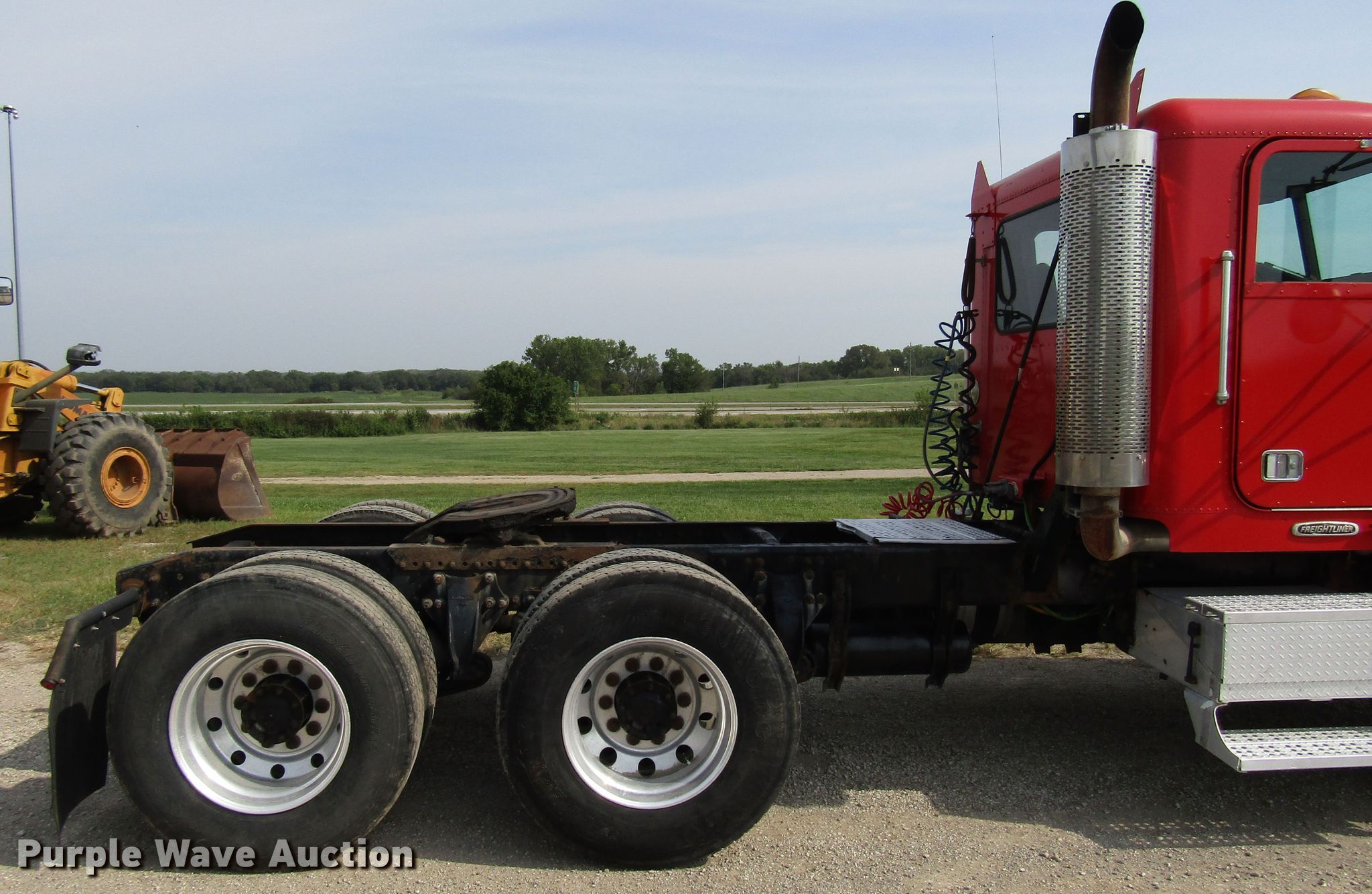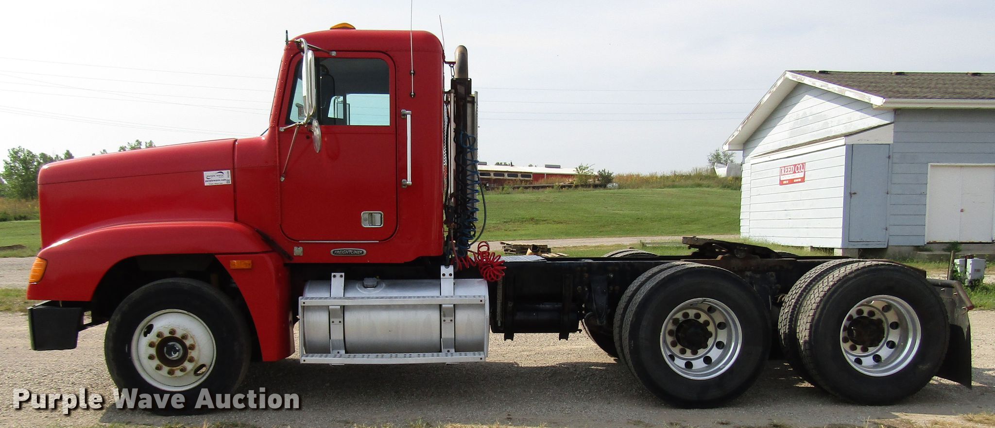 Purple Wave is selling a used Truck Tractor in Kansas. This item is a 1998 Freightliner FLD semi truck with the following: Detroit Diesel Series 55 12.0L six cylinder diesel engine, 400 HP, Rockwell nine speed manual transmission, Tandem axle, Inter-axle differential lock, AC and heat, Cruise, Dump valves, Air ride cab, Aluminum deck plate, Fixed fifth wheel plate, Single fuel tank, Air suspension, Air brakes, 275/80R22.5 front tires, 11R22.5 rear tires, GVWR 52,000 lbs, FAWR 12,000 lbs, IAWR 20,000 lbs, RAWR 20,000 lbs