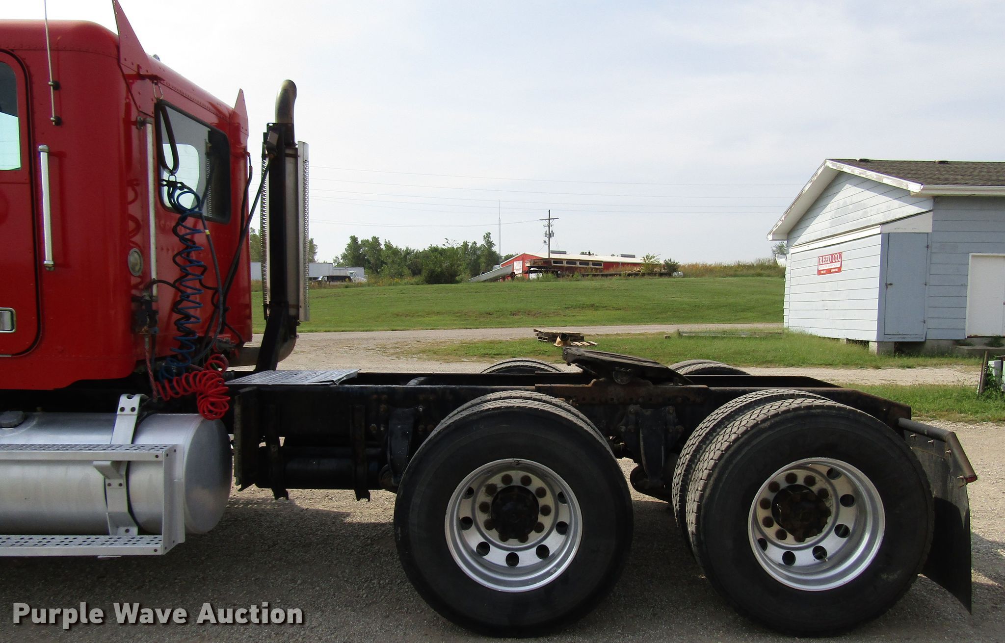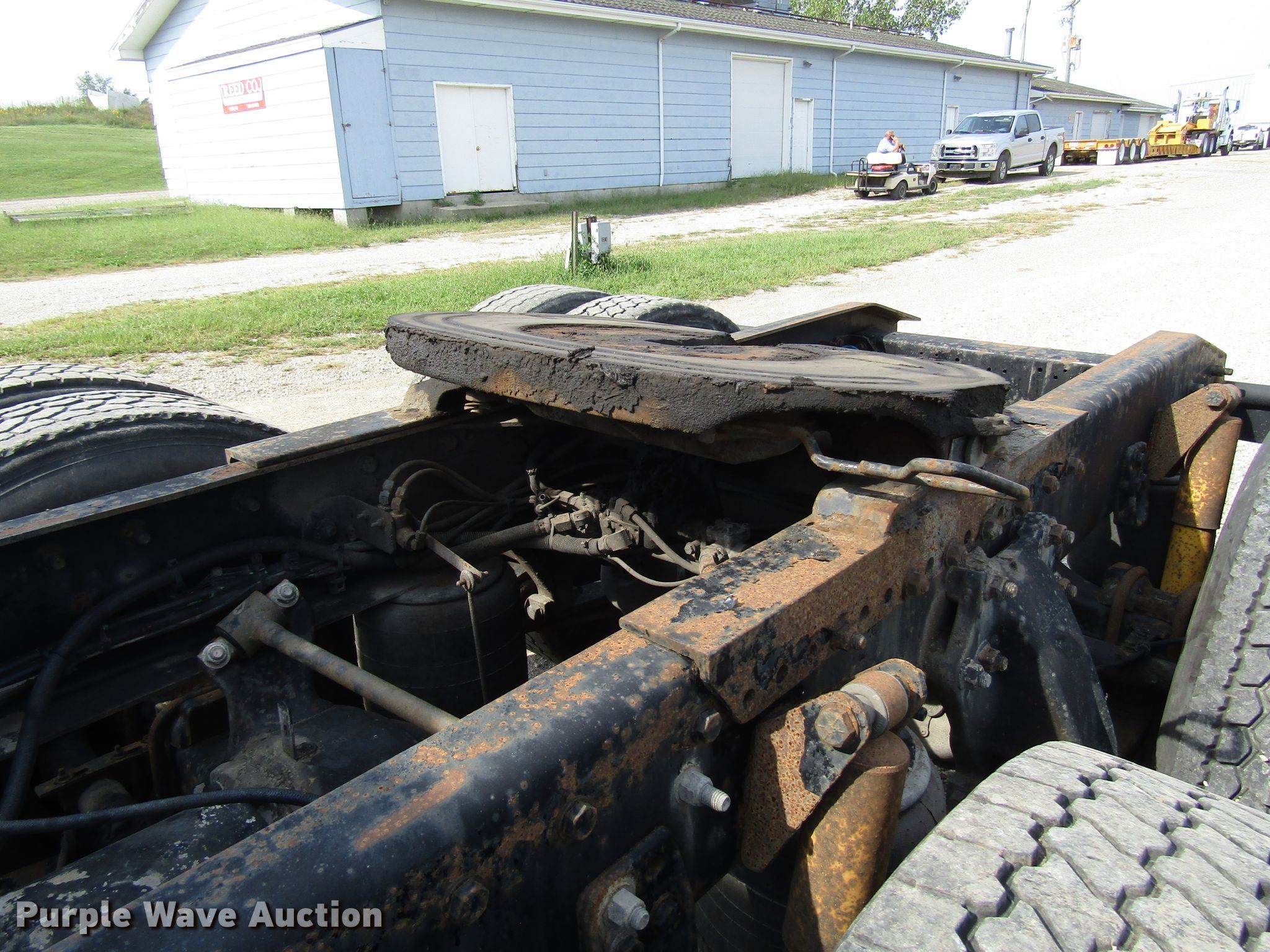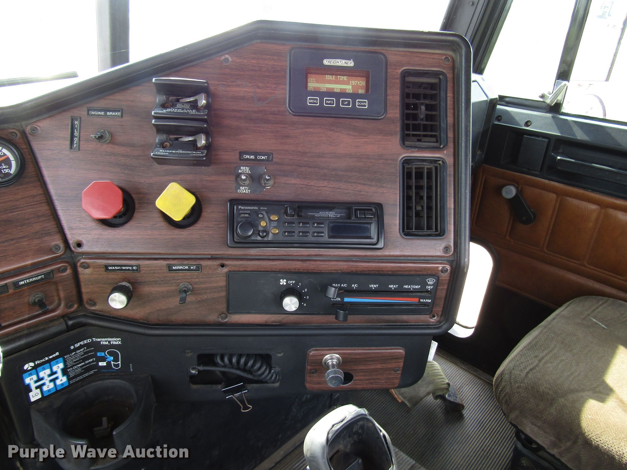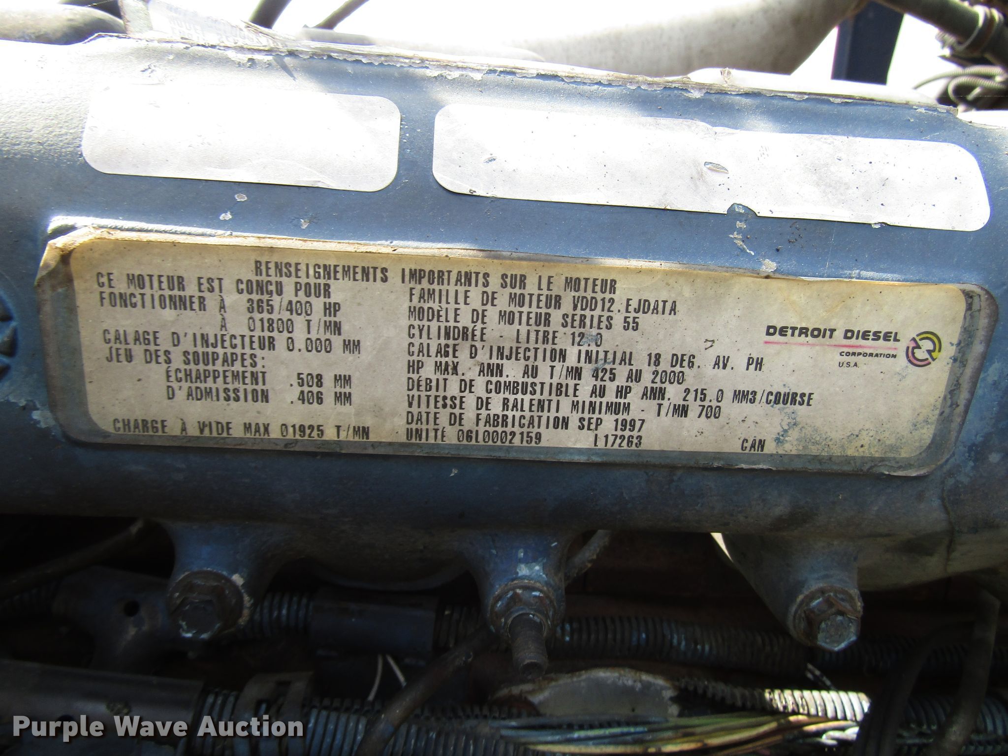 Purple Wave is selling a used Truck Tractor in Kansas. This item is a 1998 Freightliner FLD semi truck with the following: Detroit Diesel Series 55 12.0L six cylinder diesel engine, 400 HP, Rockwell nine speed manual transmission, Tandem axle, Inter-axle differential lock, AC and heat, Cruise, Dump valves, Air ride cab, Aluminum deck plate, Fixed fifth wheel plate, Single fuel tank, Air suspension, Air brakes, 275/80R22.5 front tires, 11R22.5 rear tires, GVWR 52,000 lbs, FAWR 12,000 lbs, IAWR 20,000 lbs, RAWR 20,000 lbs