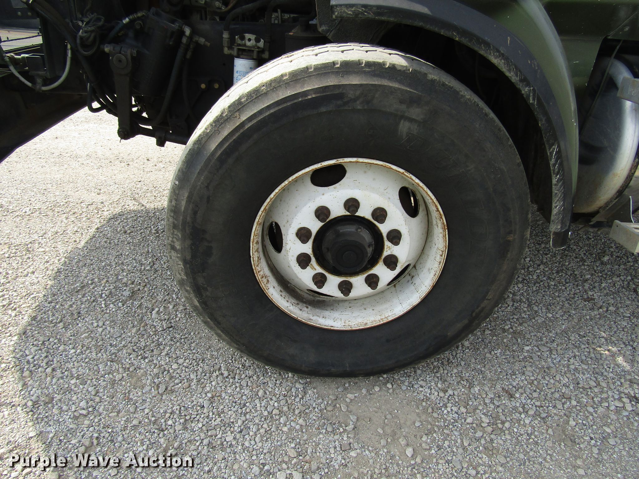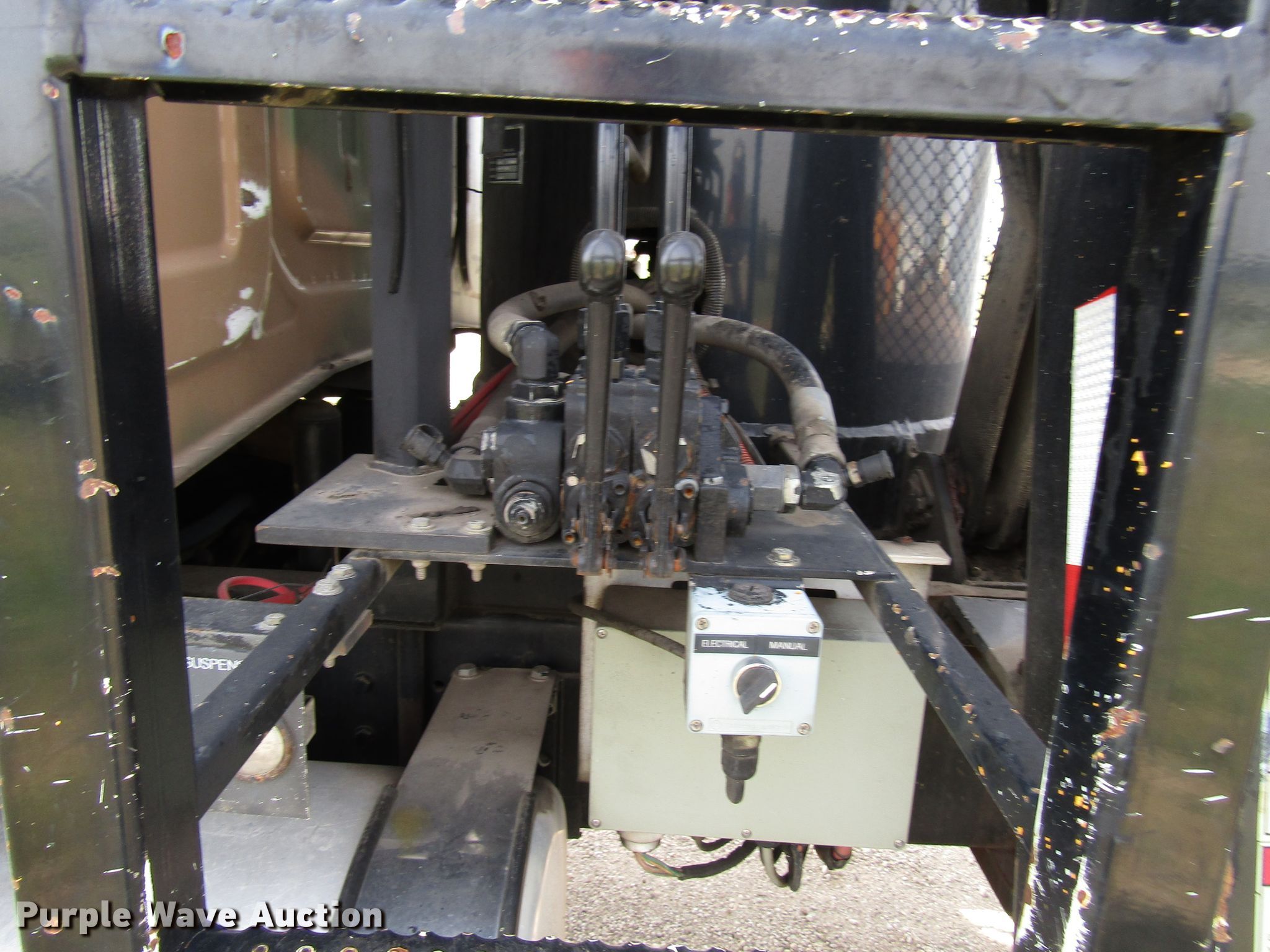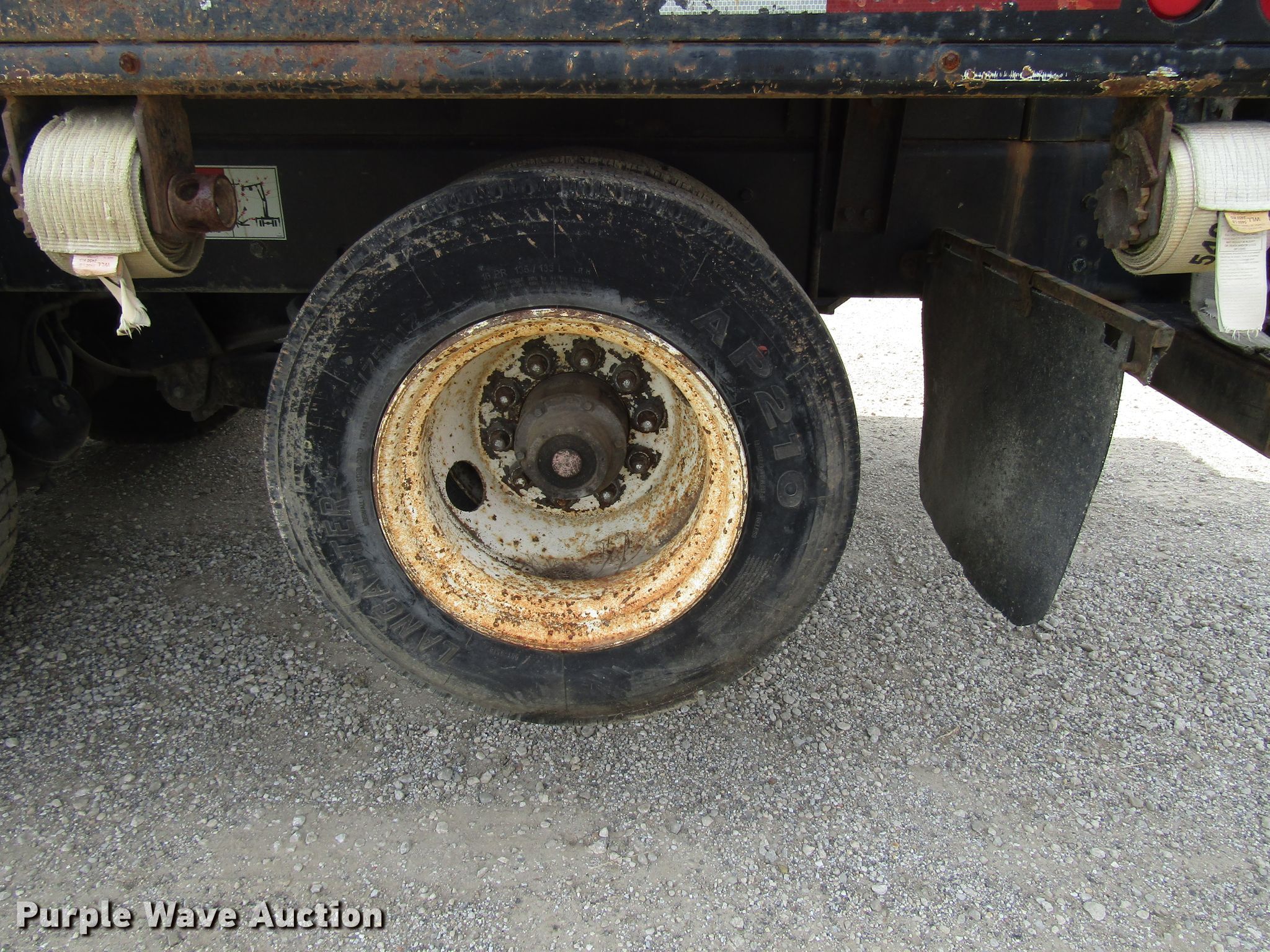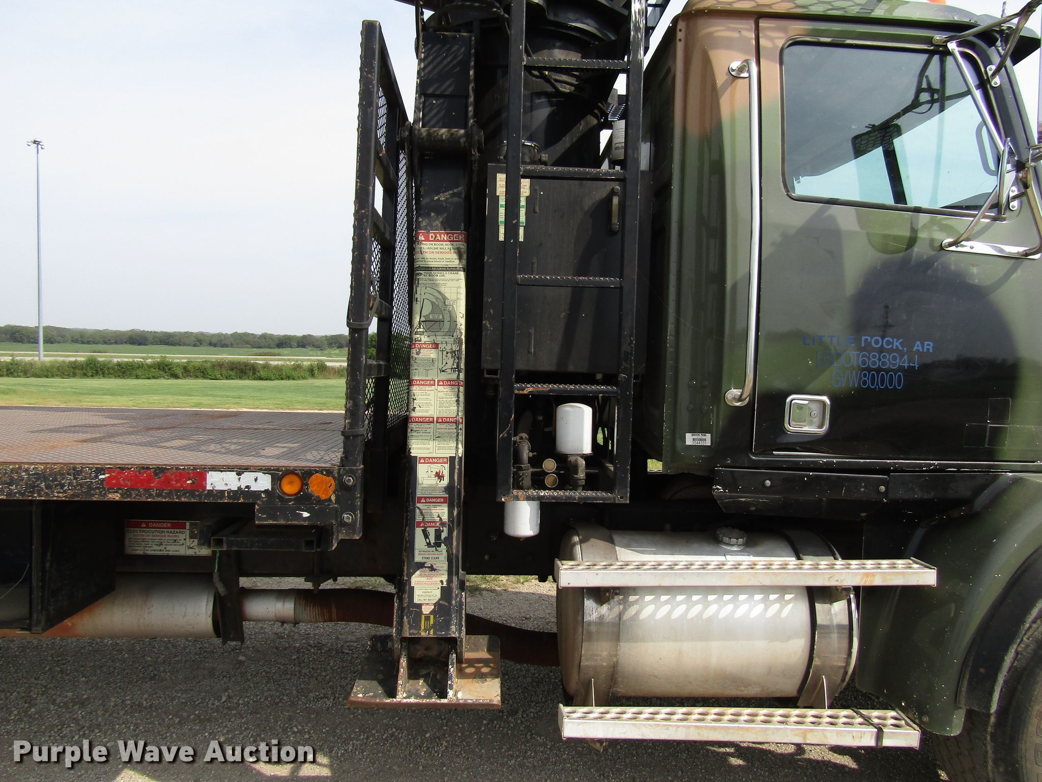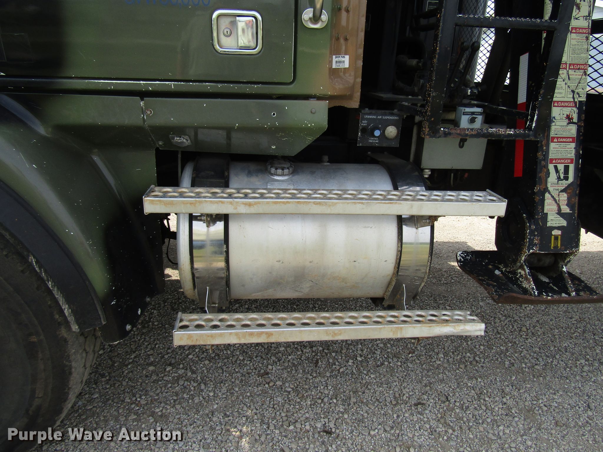 Purple Wave is selling a used Crane Truck in Kansas. This item is a 2004 Western Star crane truck with the following: 4,753 hours on meter, Mercedes Benz six cylinder diesel engine, 435 HP, Eaton Fuller 10 speed manual transmission, Tandem axle, Inter-axle differential lock, AC and heat, 24'7"L flatbed, 2003 IMT 16000S telescopic, knuckle boom crane, Three section boom, 42' boom length, 5,825 lbs maximum lift capacity, 54'3" maximum lift height, Platform controls, 44"L forks, Air brakes, 425/65R22.5 front tries, 215/75R17.5 tag axle tires, 11R22.5 rear tires, GVWR 66,000 lbs, FAWR 20,000 lbs, IAWR 23,000 lbs, RAWR 23,000 lbs