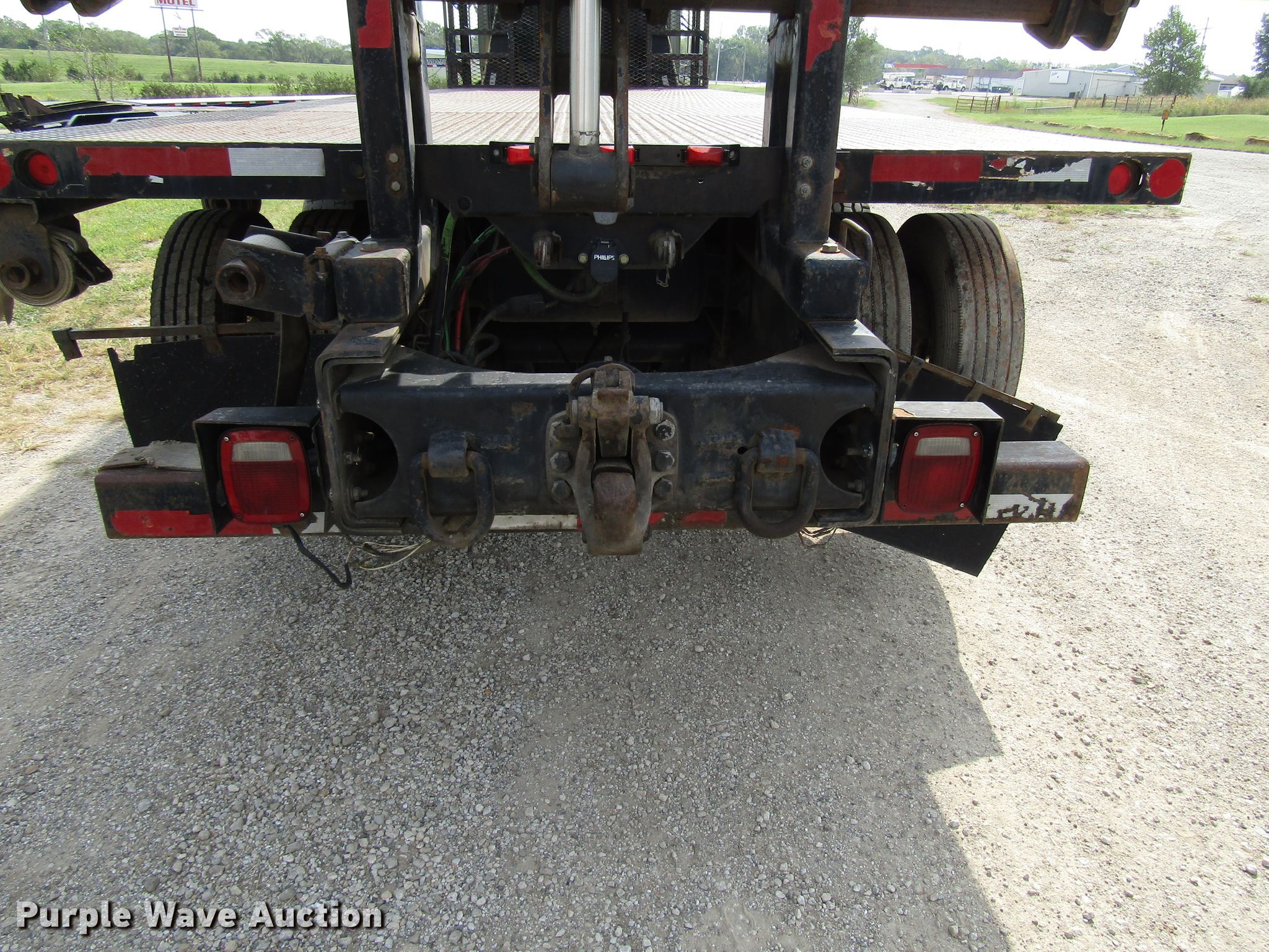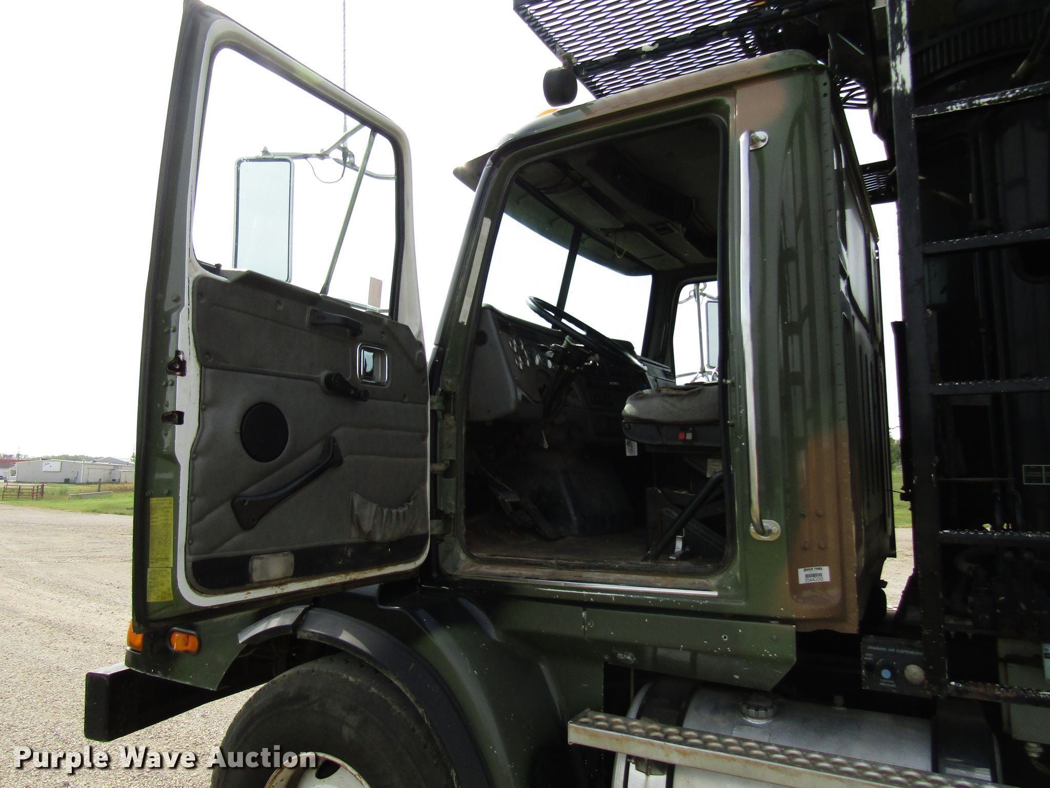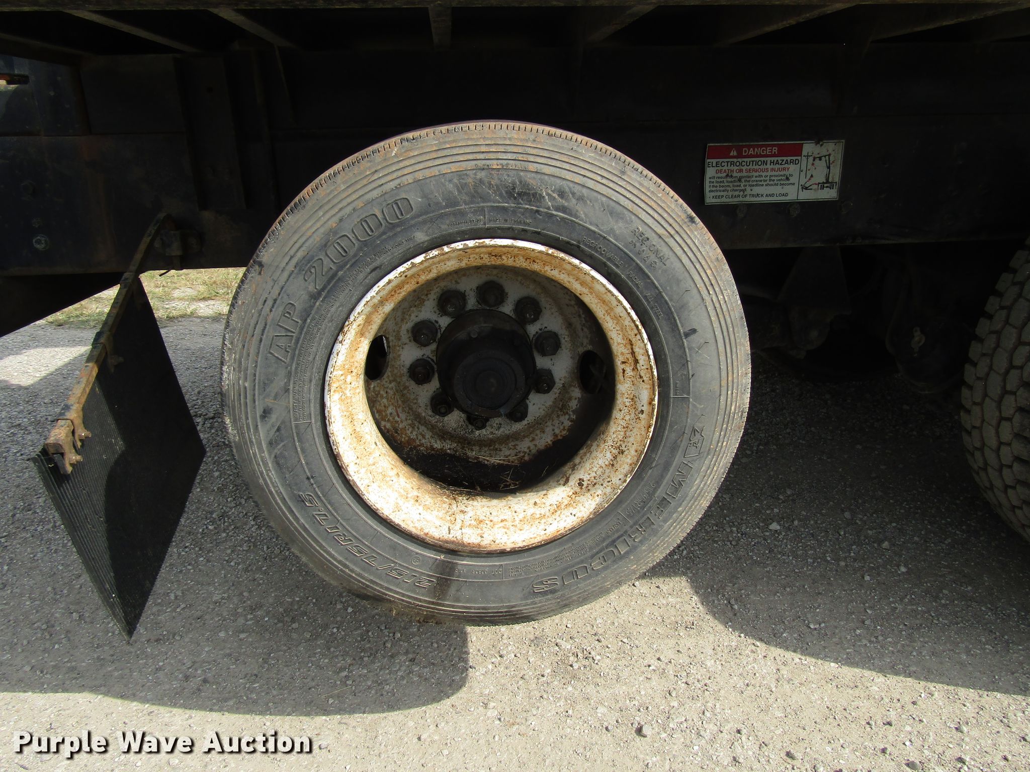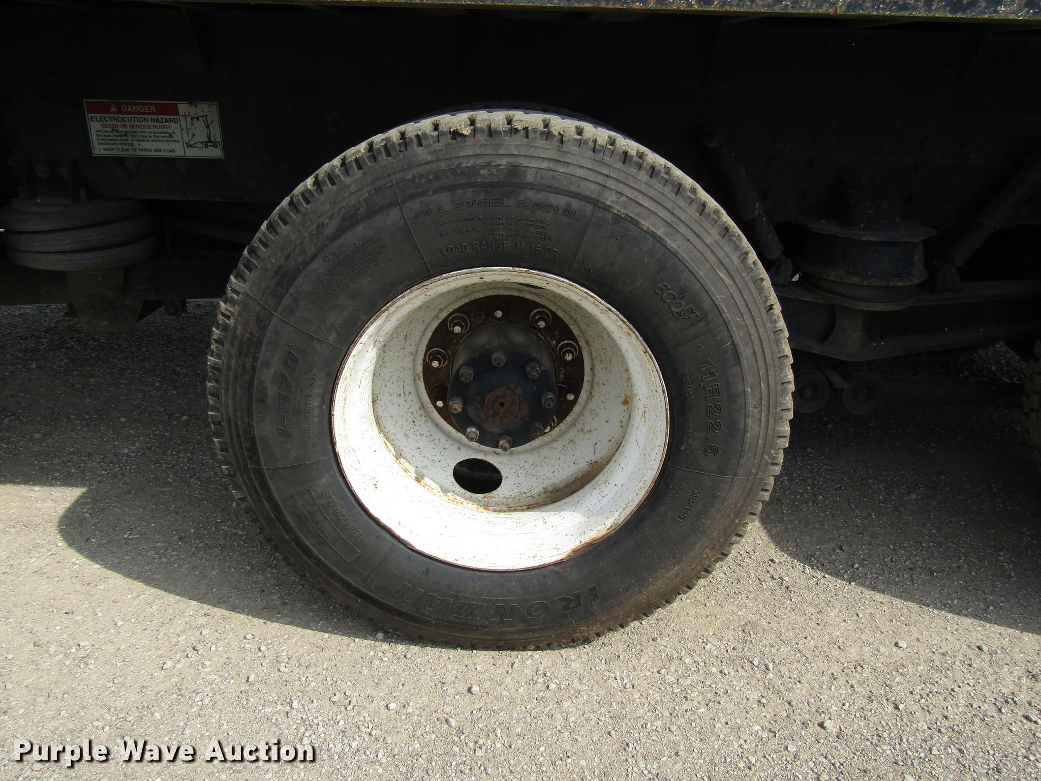 Purple Wave is selling a used Crane Truck in Kansas. This item is a 2004 Western Star crane truck with the following: 4,753 hours on meter, Mercedes Benz six cylinder diesel engine, 435 HP, Eaton Fuller 10 speed manual transmission, Tandem axle, Inter-axle differential lock, AC and heat, 24'7"L flatbed, 2003 IMT 16000S telescopic, knuckle boom crane, Three section boom, 42' boom length, 5,825 lbs maximum lift capacity, 54'3" maximum lift height, Platform controls, 44"L forks, Air brakes, 425/65R22.5 front tries, 215/75R17.5 tag axle tires, 11R22.5 rear tires, GVWR 66,000 lbs, FAWR 20,000 lbs, IAWR 23,000 lbs, RAWR 23,000 lbs