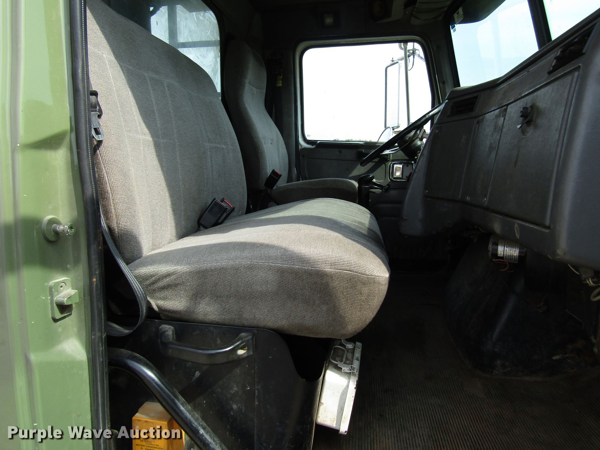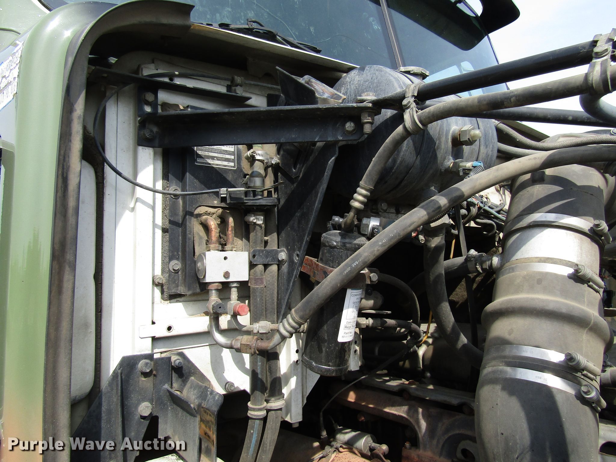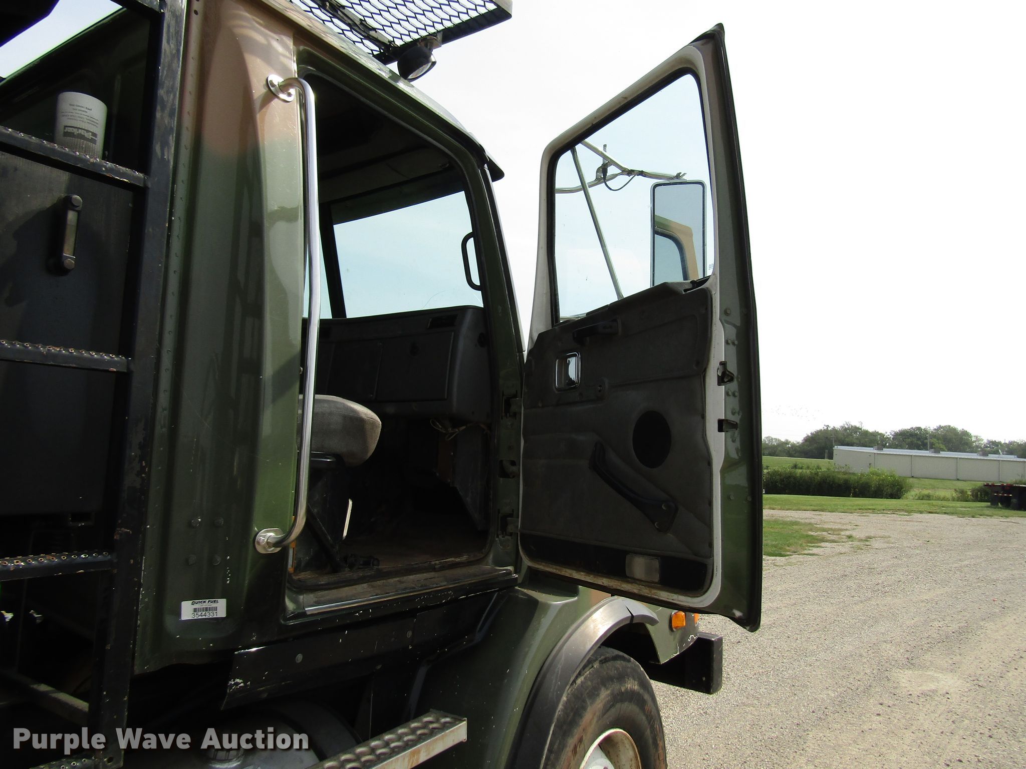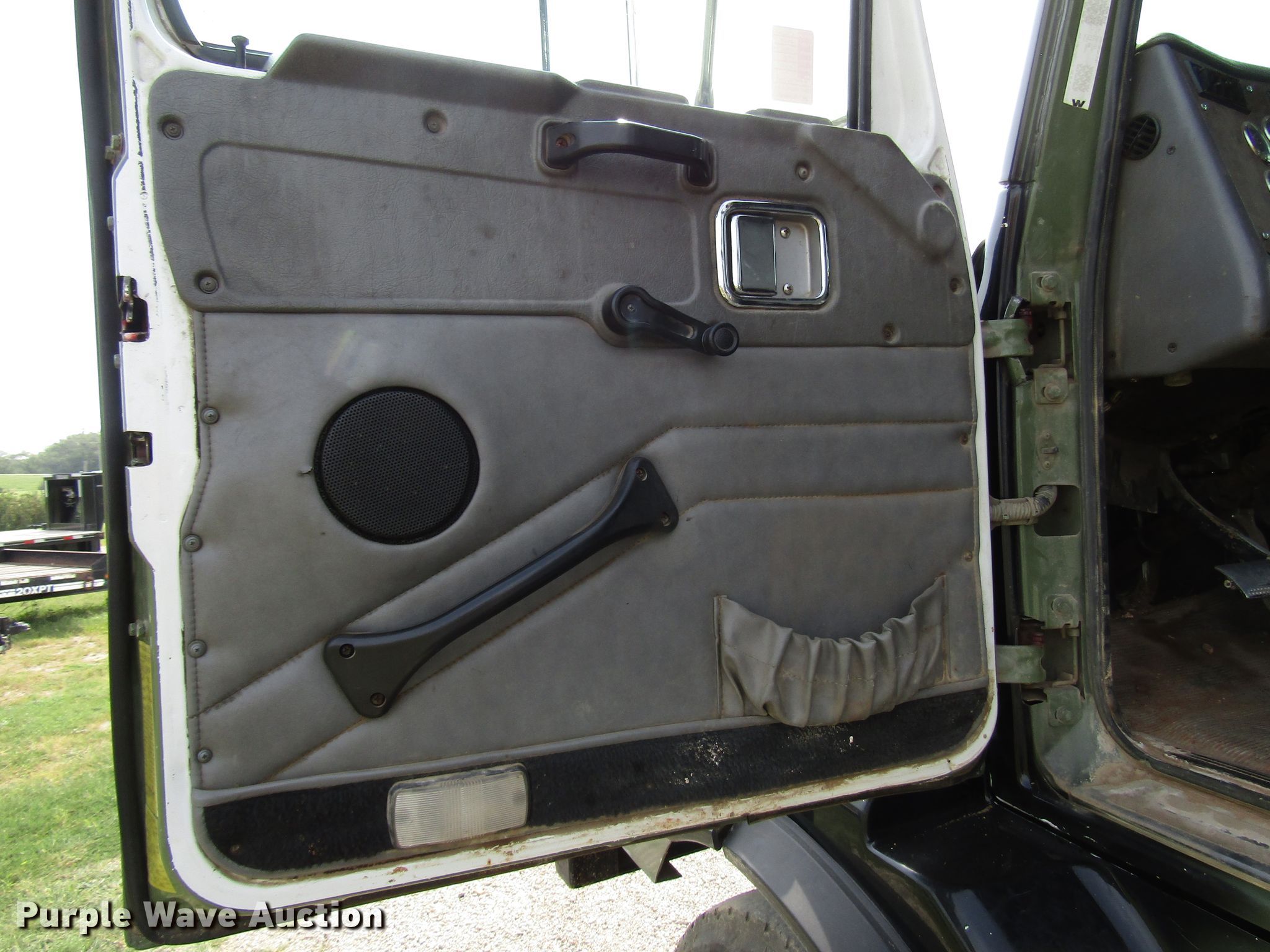 Purple Wave is selling a used Crane Truck in Kansas. This item is a 2004 Western Star crane truck with the following: 4,753 hours on meter, Mercedes Benz six cylinder diesel engine, 435 HP, Eaton Fuller 10 speed manual transmission, Tandem axle, Inter-axle differential lock, AC and heat, 24'7"L flatbed, 2003 IMT 16000S telescopic, knuckle boom crane, Three section boom, 42' boom length, 5,825 lbs maximum lift capacity, 54'3" maximum lift height, Platform controls, 44"L forks, Air brakes, 425/65R22.5 front tries, 215/75R17.5 tag axle tires, 11R22.5 rear tires, GVWR 66,000 lbs, FAWR 20,000 lbs, IAWR 23,000 lbs, RAWR 23,000 lbs