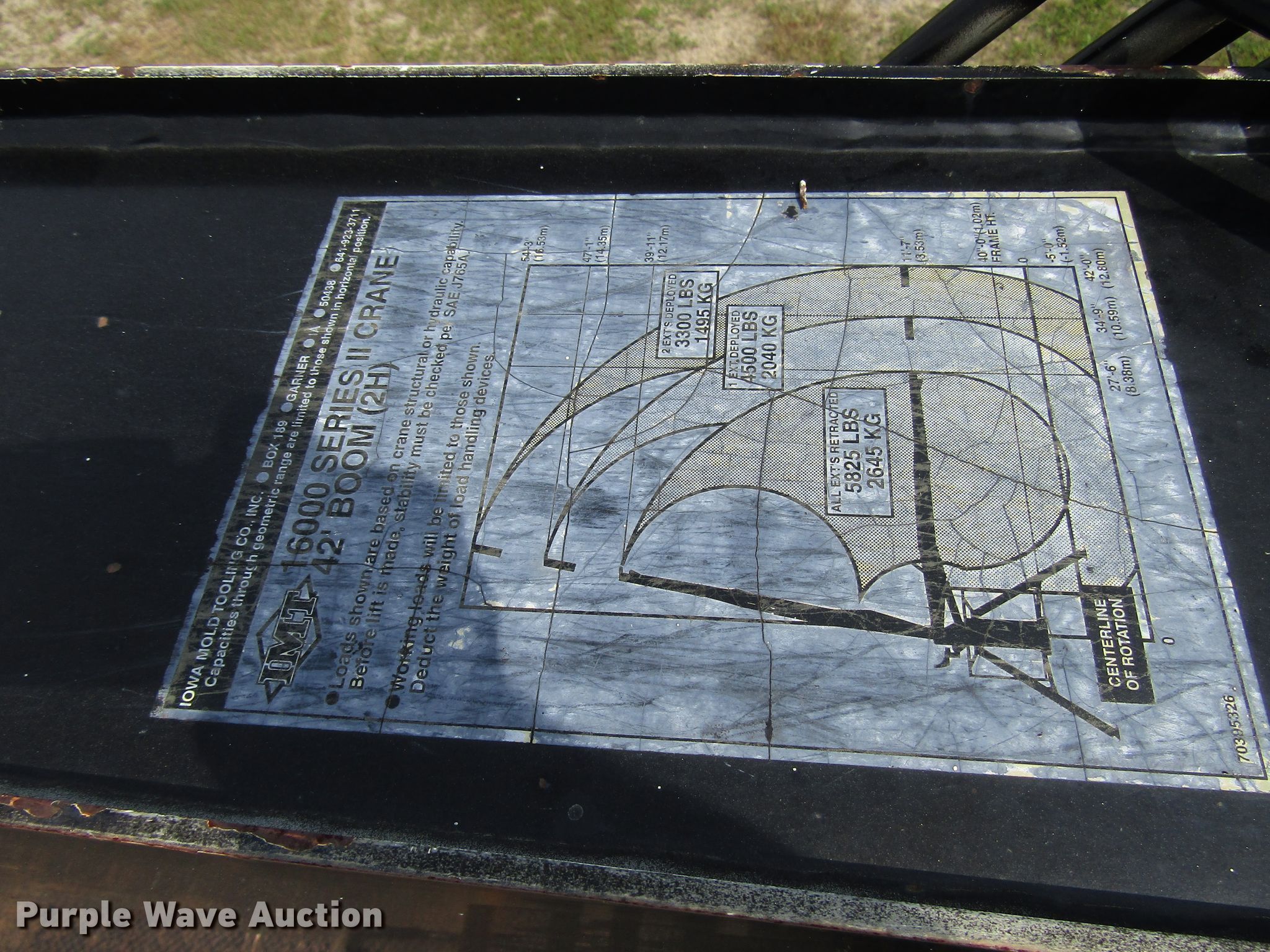 2004 Western Star crane truck. 4,753 hours on meter, Mercedes Benz six cylinder diesel engine 435 HP, Eaton Fuller 10 speed manual transmission, Tandem axle, Inter-axle differential lock, AC and heat, 24'7"L flatbed, 2003 IMT 16000S telescopic, knuckle boom crane Three section boom, 42' boom length, 5,825 lbs maximum lift capacity, 54'3" maximum lift height, Platform controls, 44"L forks, Air brakes, 425/65R22.5 front tries, 215/75R17.5 tag axle tires, 11R22.5 rear tires, GVWR 66,000 lbs, FAWR 20,000 lbs, IAWR 23,000 lbs, RAWR 23,000 lbs. Tennessee title. Seller is a licensed motor vehicle dealer. Purple Wave Inc will collect sales tax from Kansas buyers. Title distribution may be delayed up to 30 days from verification of funds. 5KKHALCV84PM36700. Reed Company, LLC. 2738 Fauna Rd NW. Lebo, KS 66856