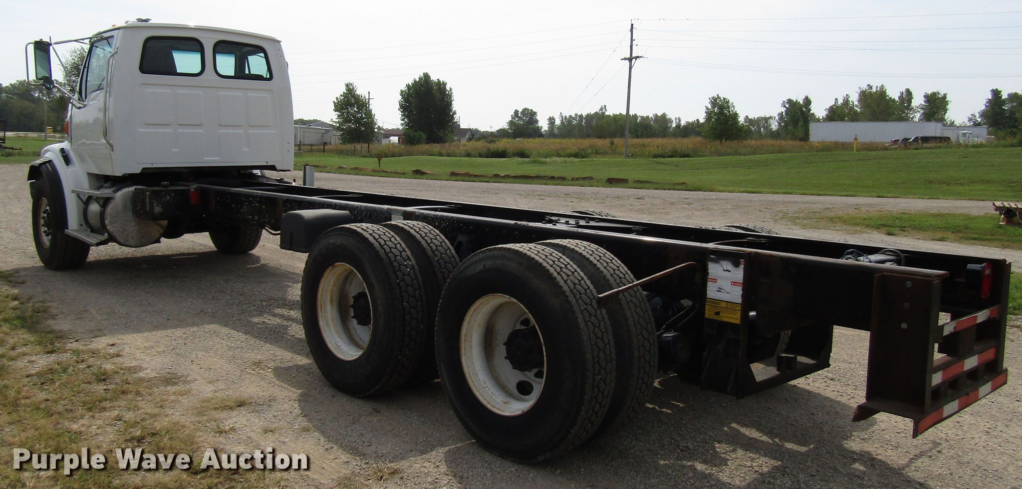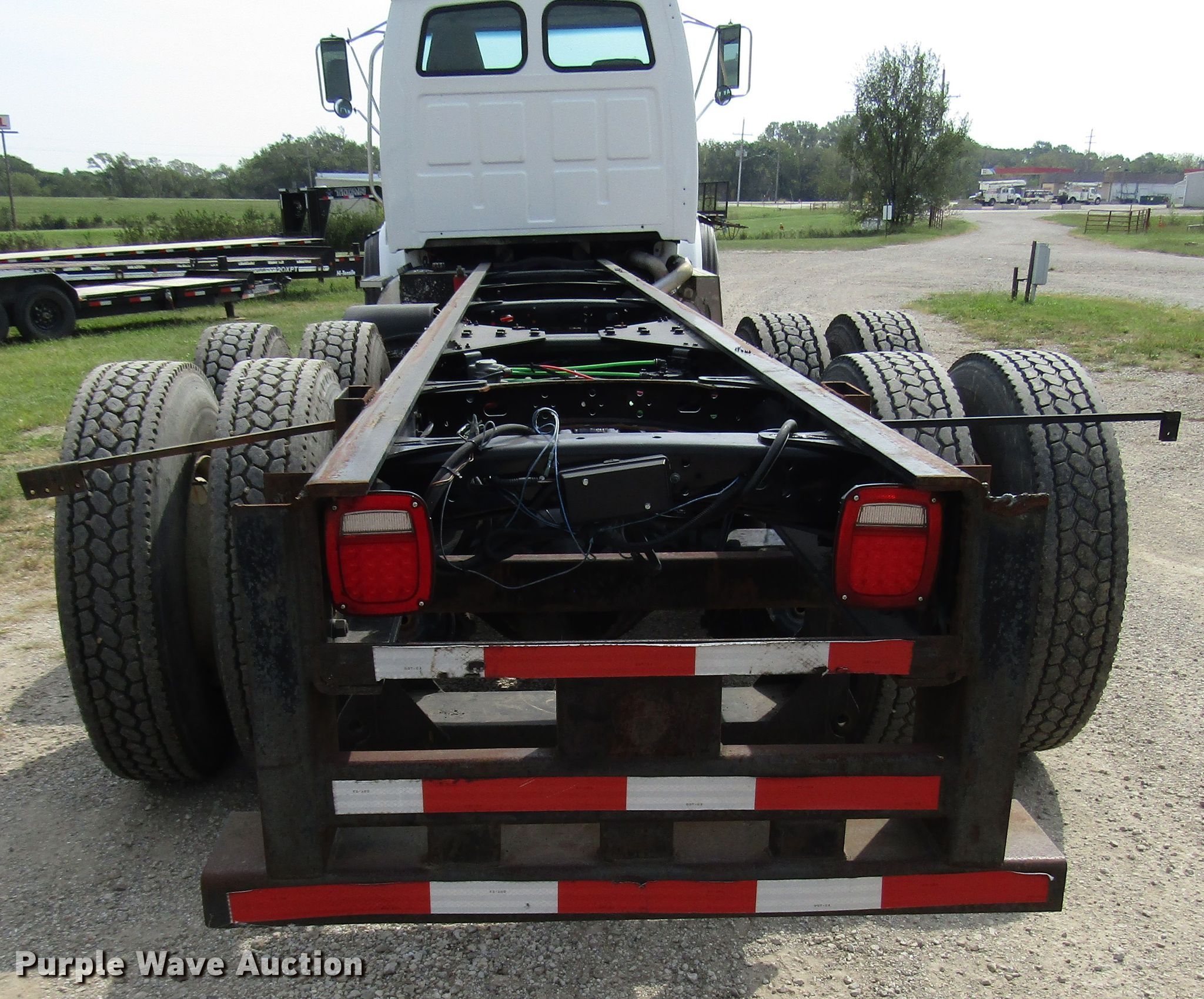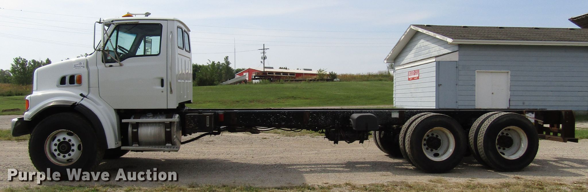 Purple Wave is selling a used Truck Chassis in Kansas. This item is a 2008 Sterling truck cab and chassis with the following: 211,637 miles on odometer, 11,120 hours on meter, Cummins six cylinder diesel engine, Eaton Fuller nine speed manual transmission, Tandem axle, Inter-axle differential lock, Full differential lock, AC and heat, PTO, 24'4"L from rear of cab to end of frame, Spring over walking beam, Air brakes, 273" wheel base, 425/65R22.5 front tires, 11R22.5 rear tires, GVWR 59,950 lbs, FAWR 20,000 lbs, IAWR 19,975 lbs, RAWR 19,975 lbs