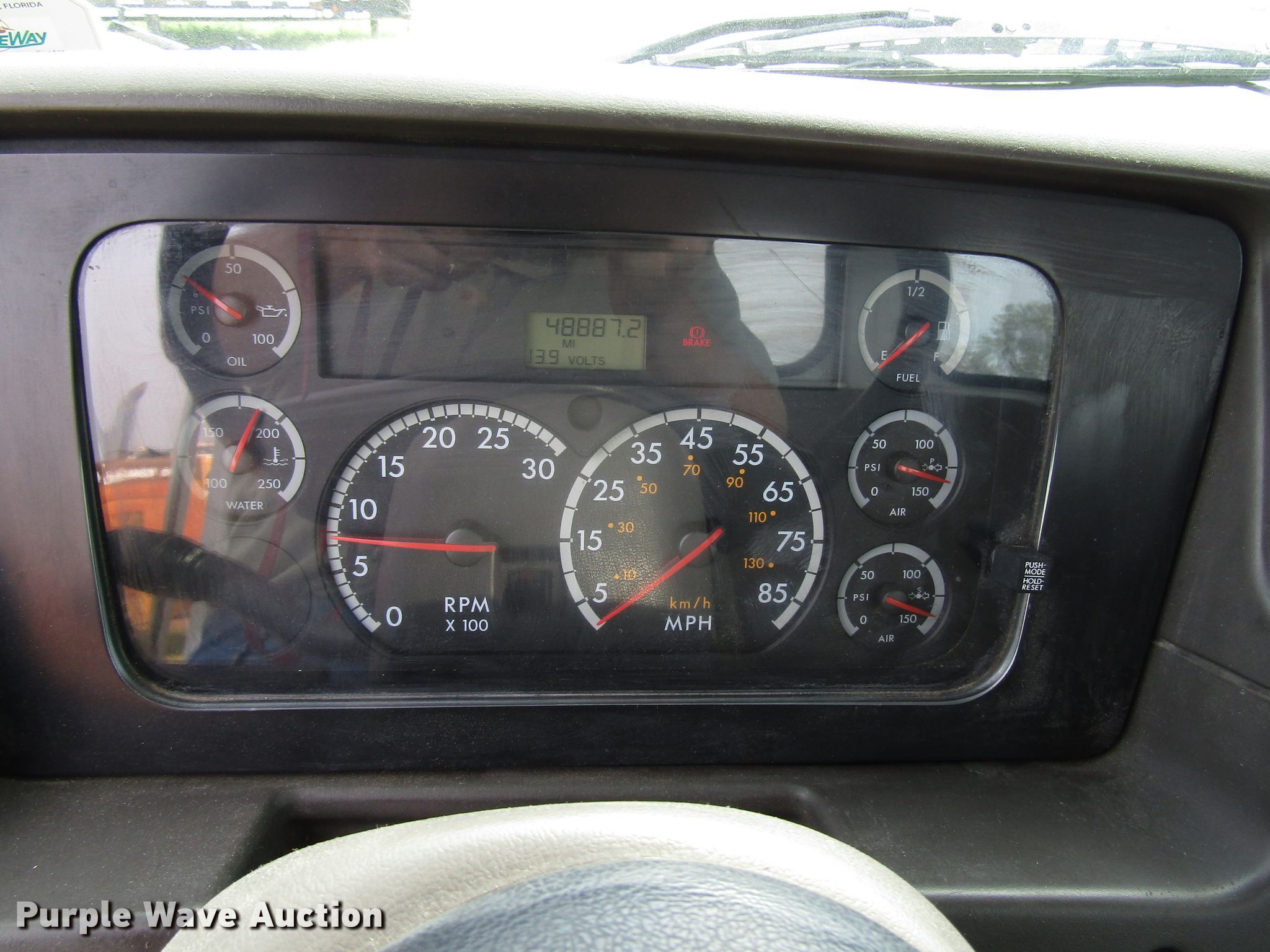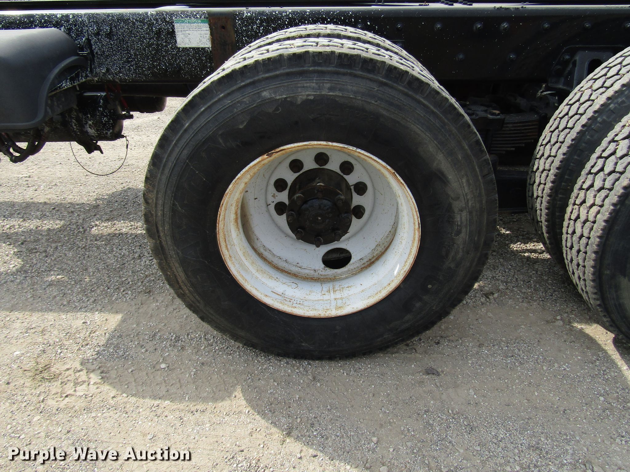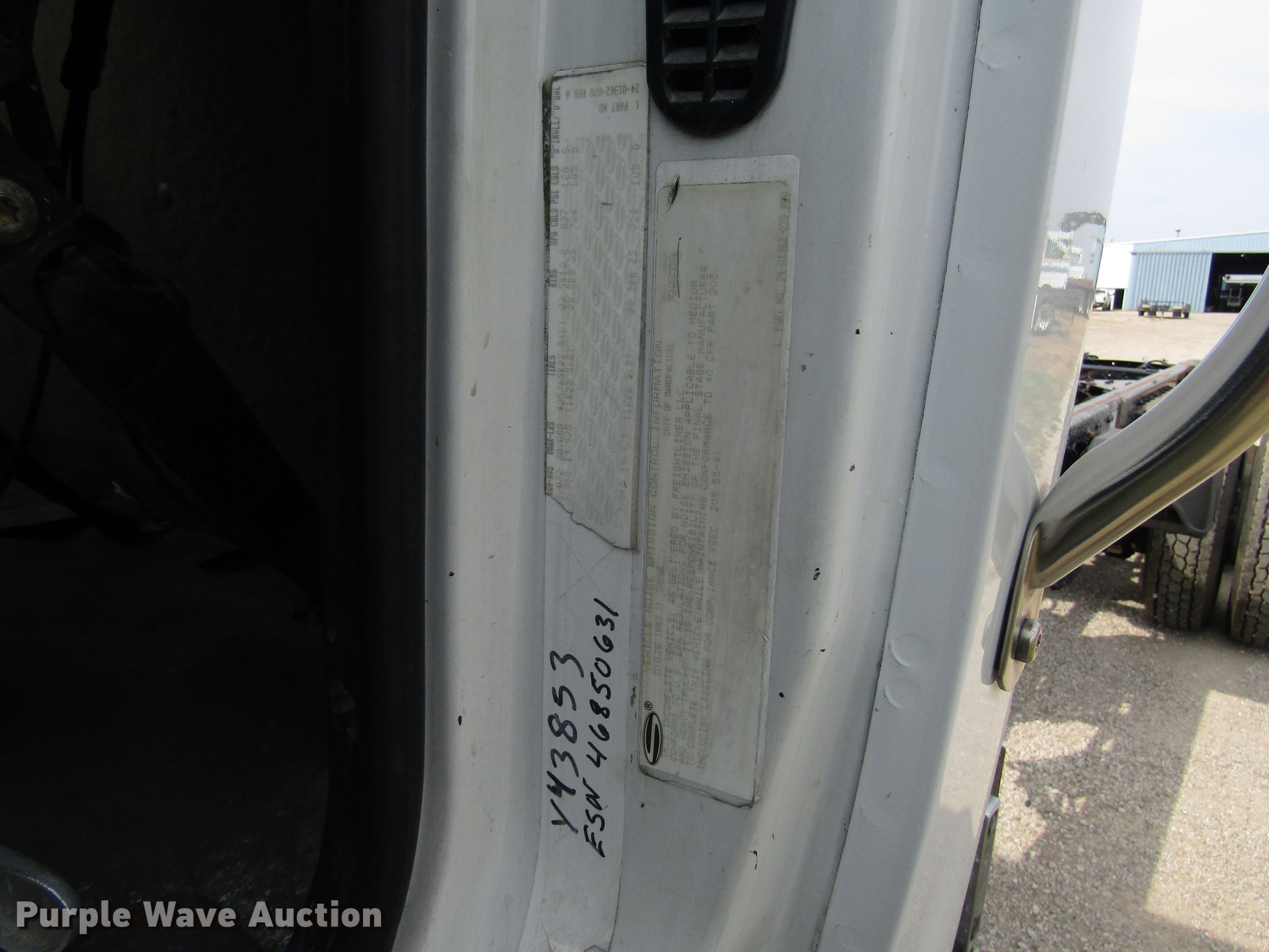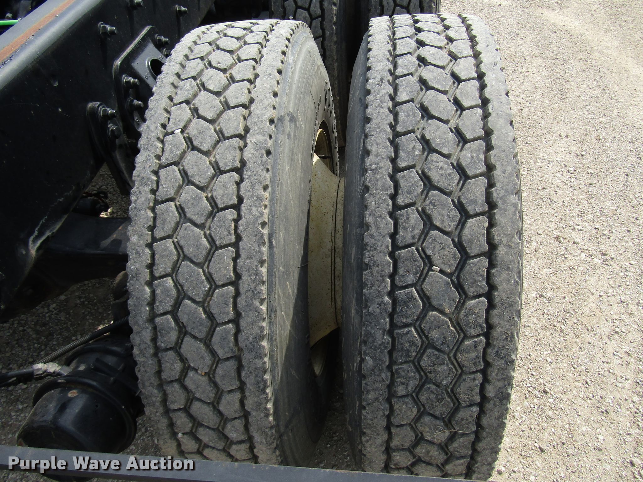 Purple Wave is selling a used Truck Chassis in Kansas. This item is a 2008 Sterling truck cab and chassis with the following: 211,637 miles on odometer, 11,120 hours on meter, Cummins six cylinder diesel engine, Eaton Fuller nine speed manual transmission, Tandem axle, Inter-axle differential lock, Full differential lock, AC and heat, PTO, 24'4"L from rear of cab to end of frame, Spring over walking beam, Air brakes, 273" wheel base, 425/65R22.5 front tires, 11R22.5 rear tires, GVWR 59,950 lbs, FAWR 20,000 lbs, IAWR 19,975 lbs, RAWR 19,975 lbs