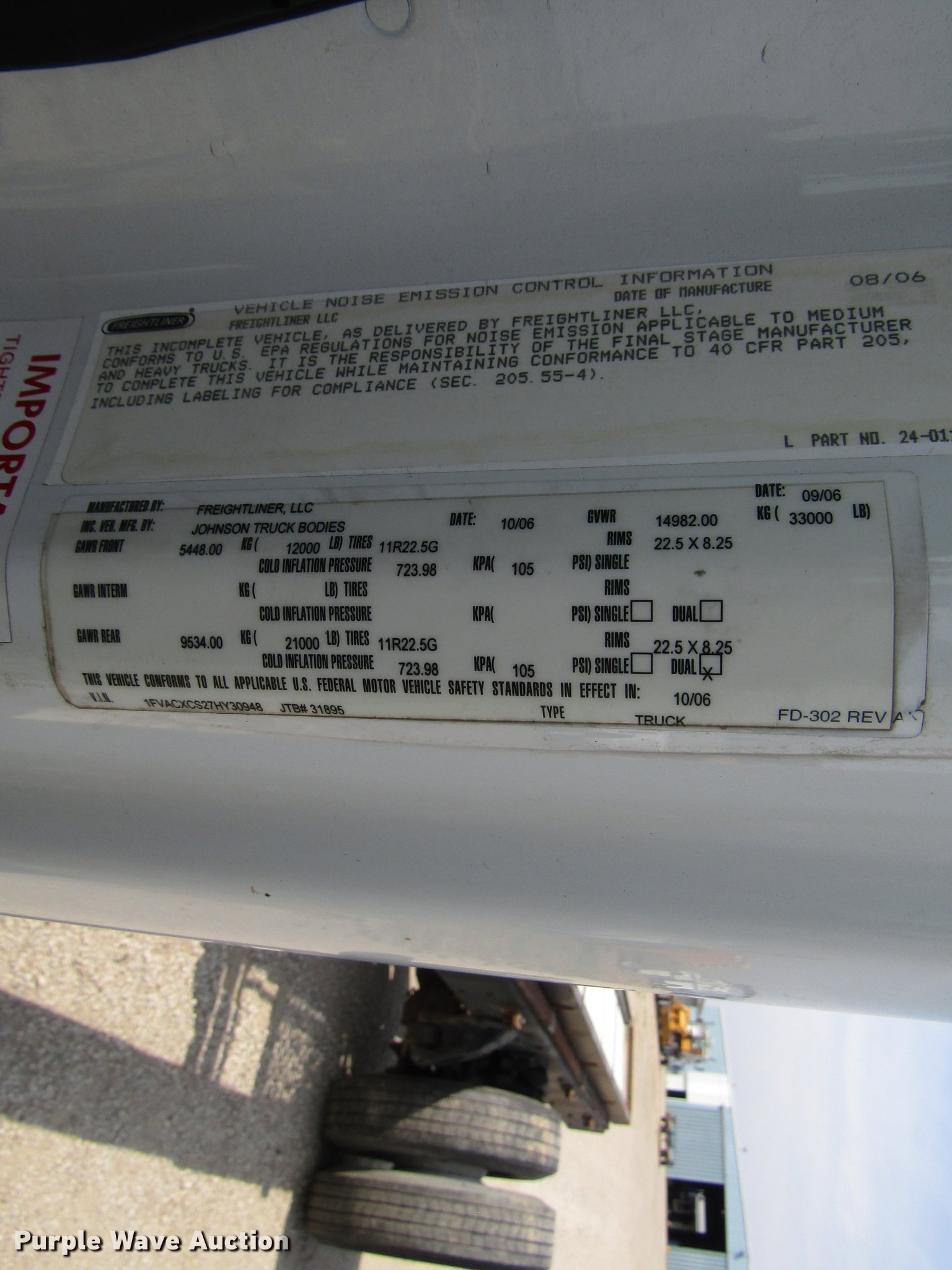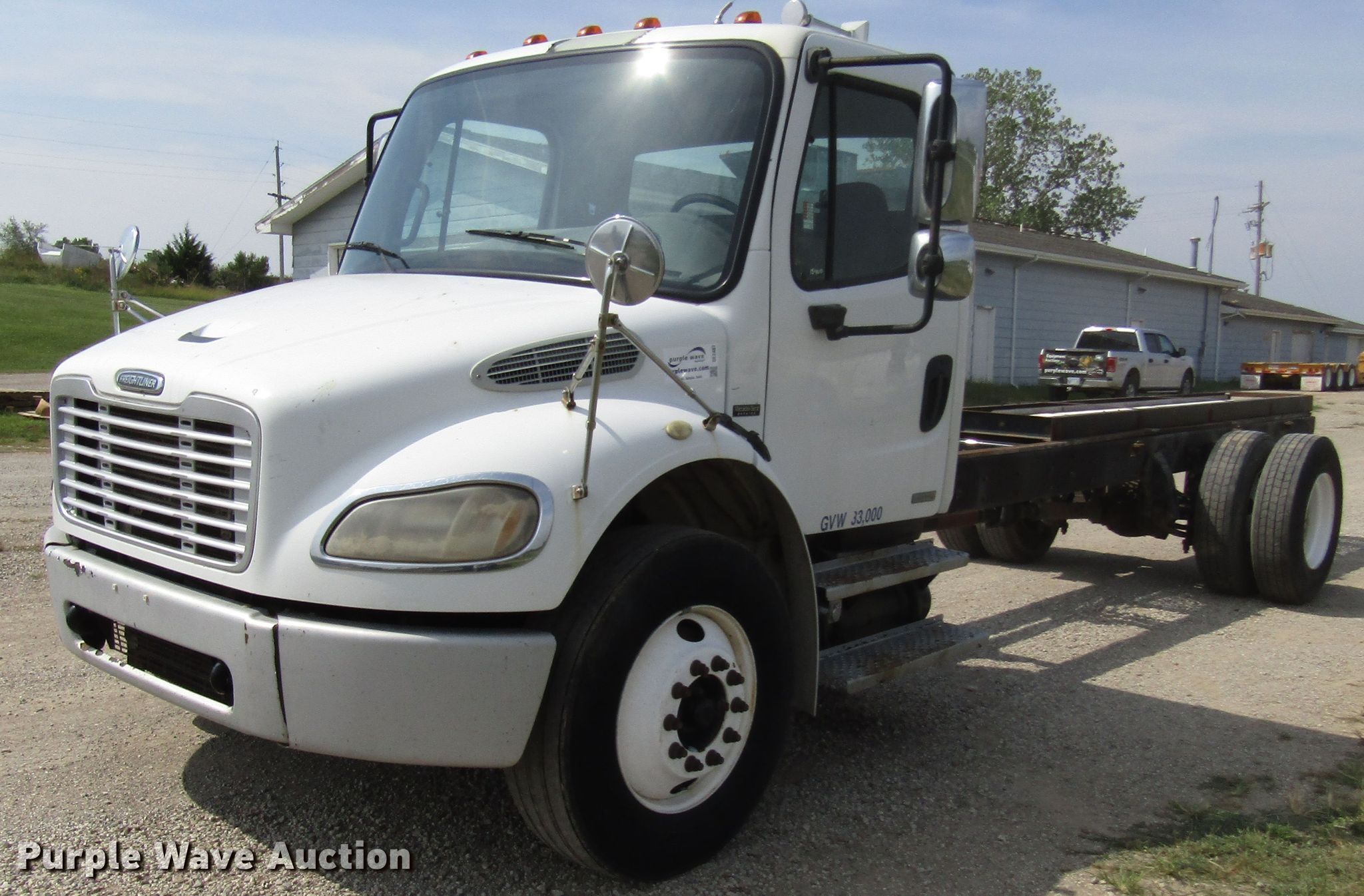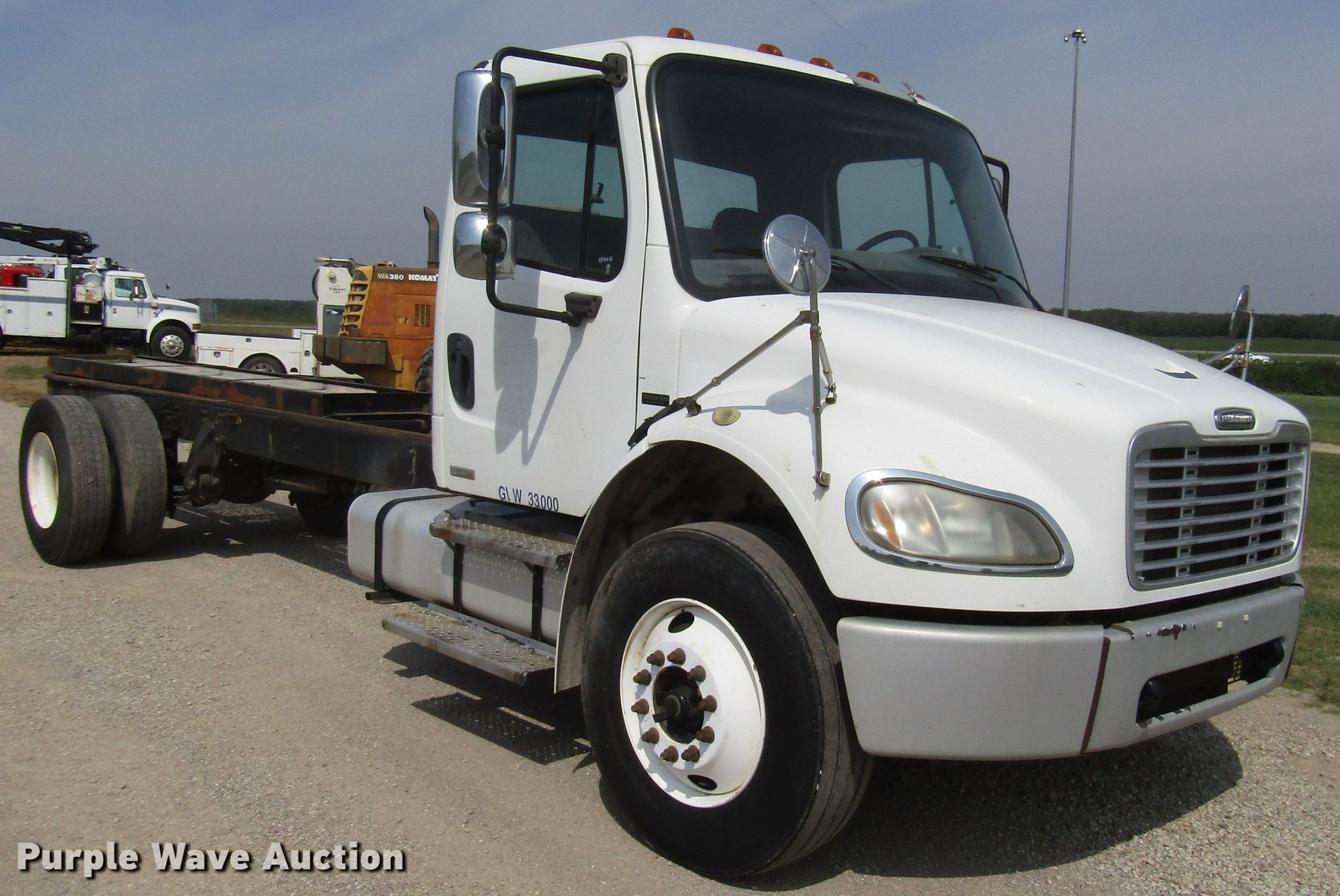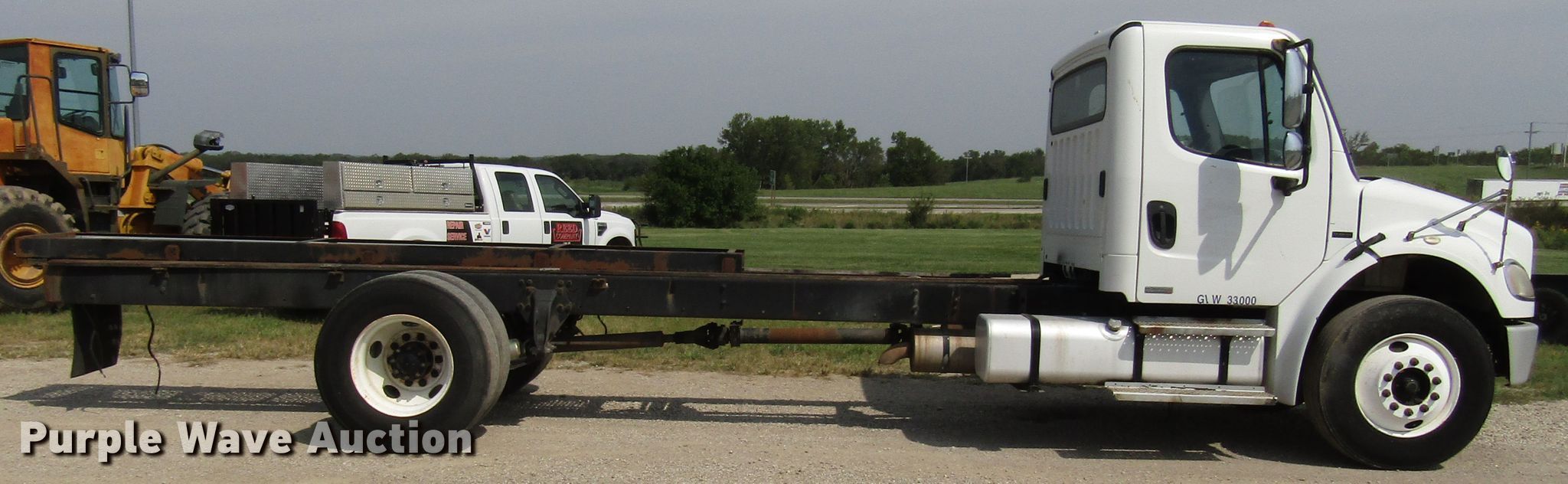 Purple Wave is selling a used Truck Chassis in Kansas. This item is a 2007 Freightliner Business Class M2 truck cab and chassis with the following: 210,189 miles on odometer, 15,145 hours on meter, Mercedes Benz OM906LA six cylinder diesel engine, 260 HP, Automatic transmission, Single axle, AC and heat, 160" from rear of cab to rear axle, Spring suspenison, Air brakes, 227" wheelbase, 295/75R22.5 front tires, 11R22.5 rear tires, GVWR 33,000 lbs, AC does not blow cold