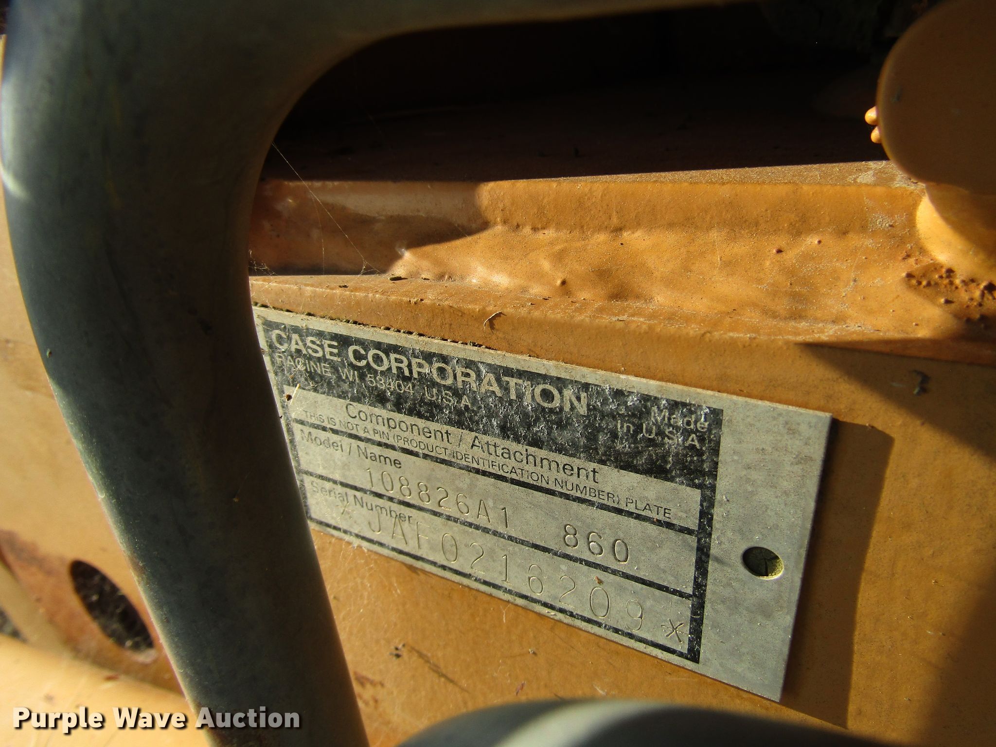 Purple Wave is selling a used Trencher Attach. in Kansas. This item is a Case 108826A1.860 backhoe with the following: 4' stick length, 19"W bucket, (4) teeth, Serial JAF0216209