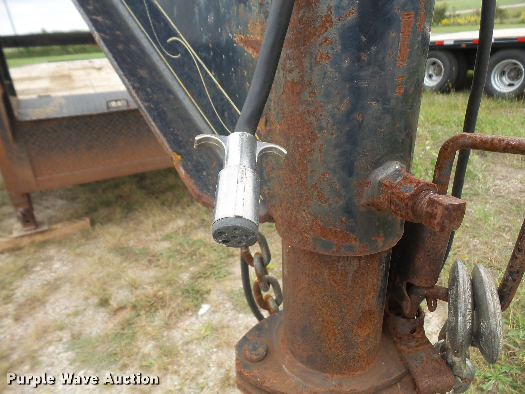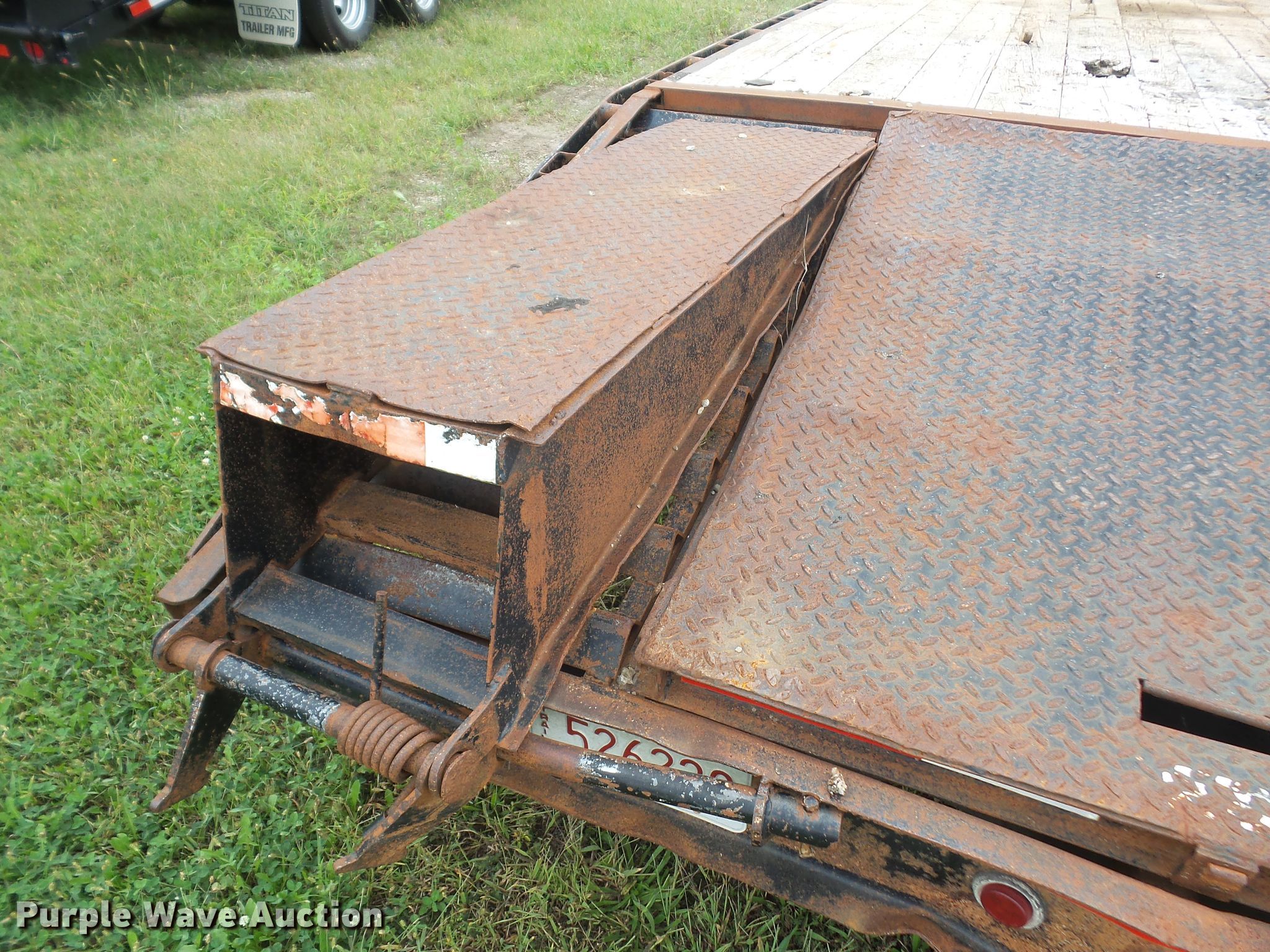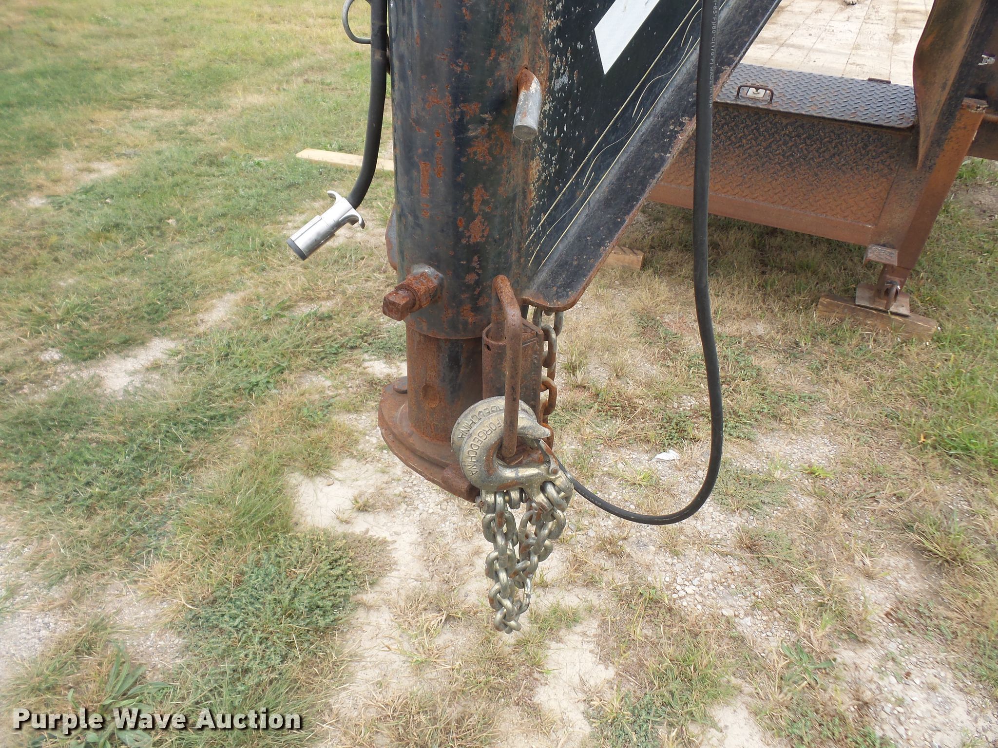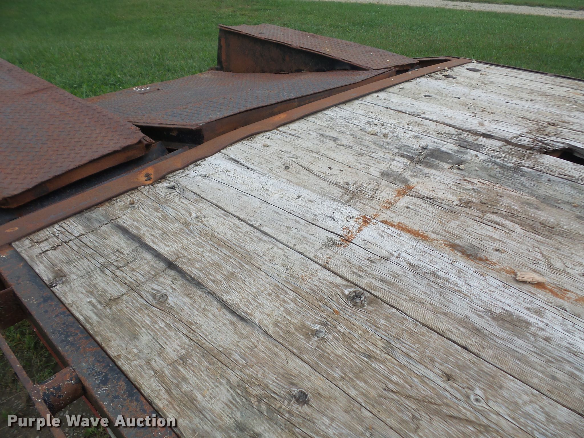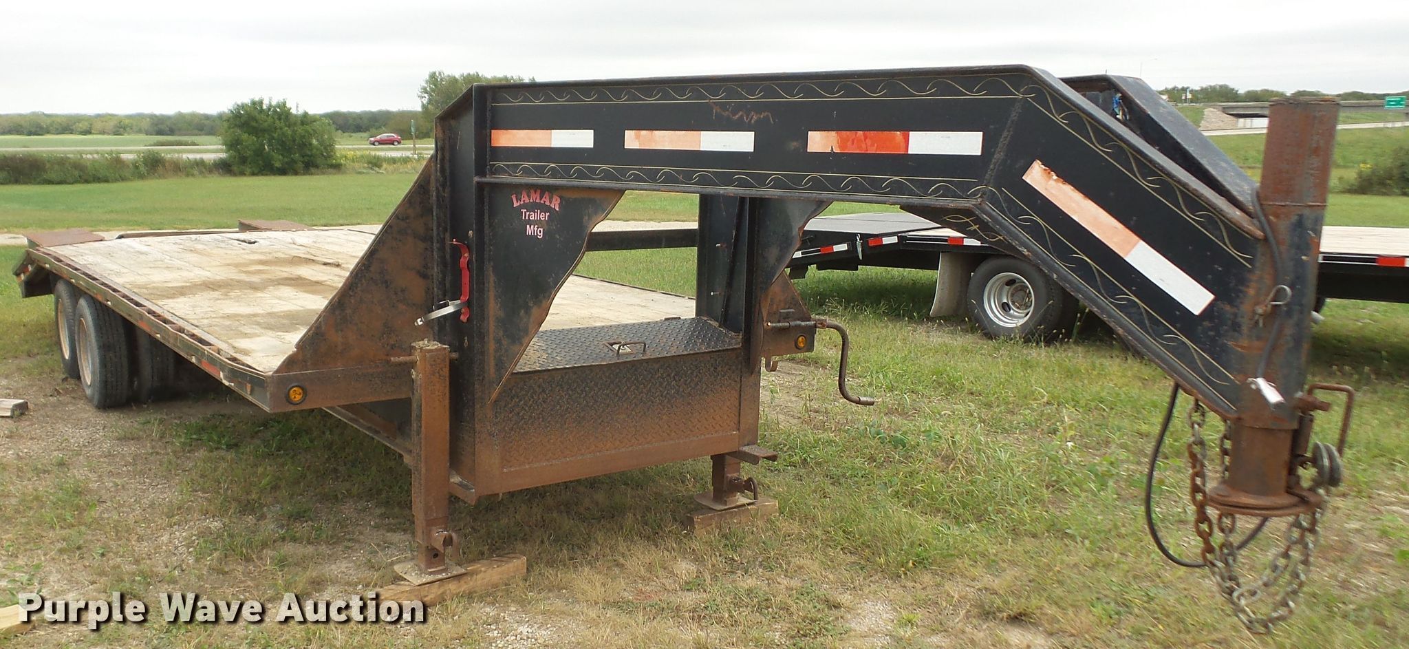Purple Wave is selling a used Equip. Trailer in Kansas. This item is a 2006 Lamar equipment trailer with the following: 25' overall length, 20'L x 101"W wood deck, 5' tail length, 5'L ramps, Dual leg landing gear, Spring suspension, Tandem axle, 8.75-16.5 tires, GVWR 20,000 lbs, GAWR 10,000 lbs