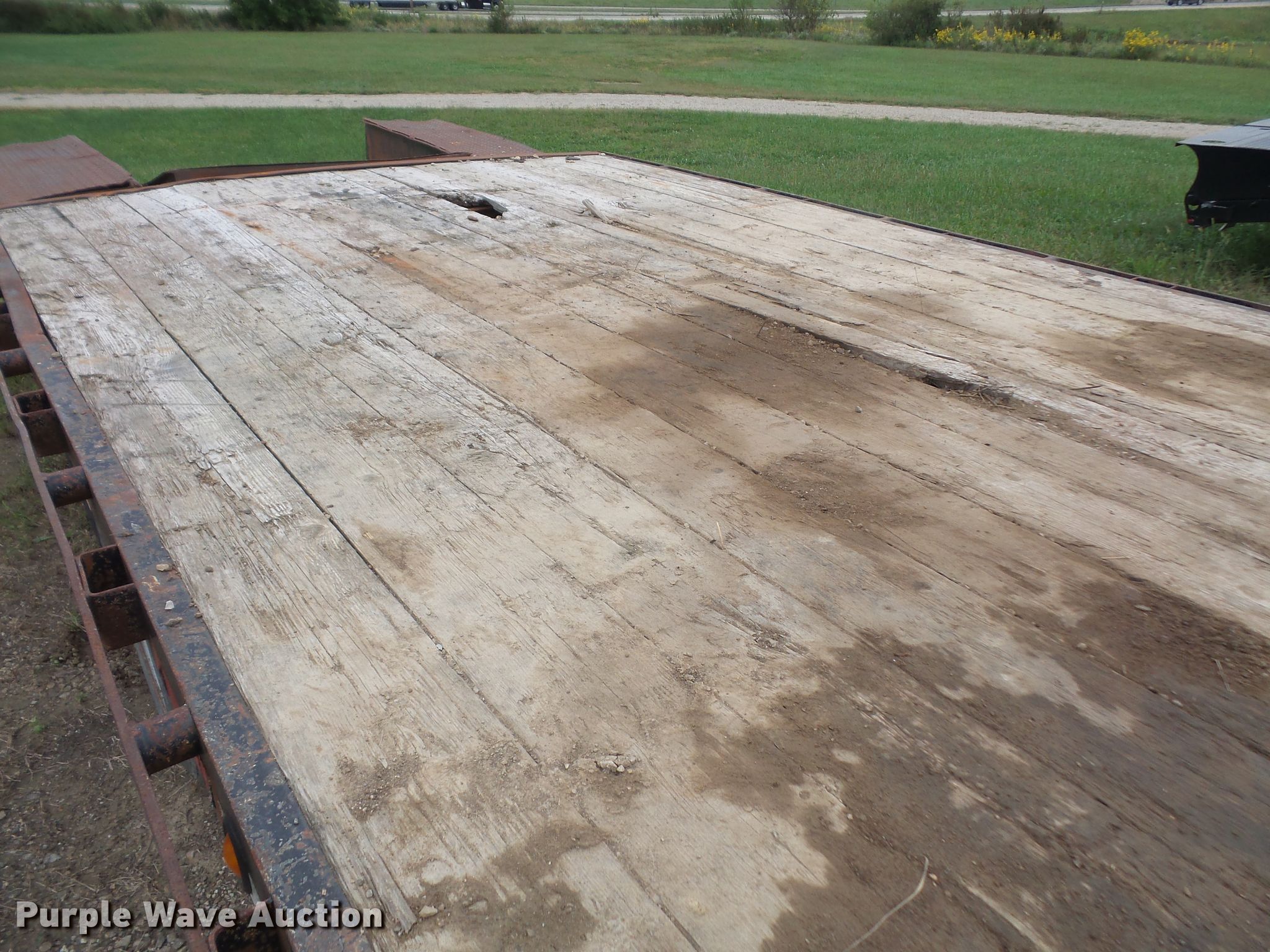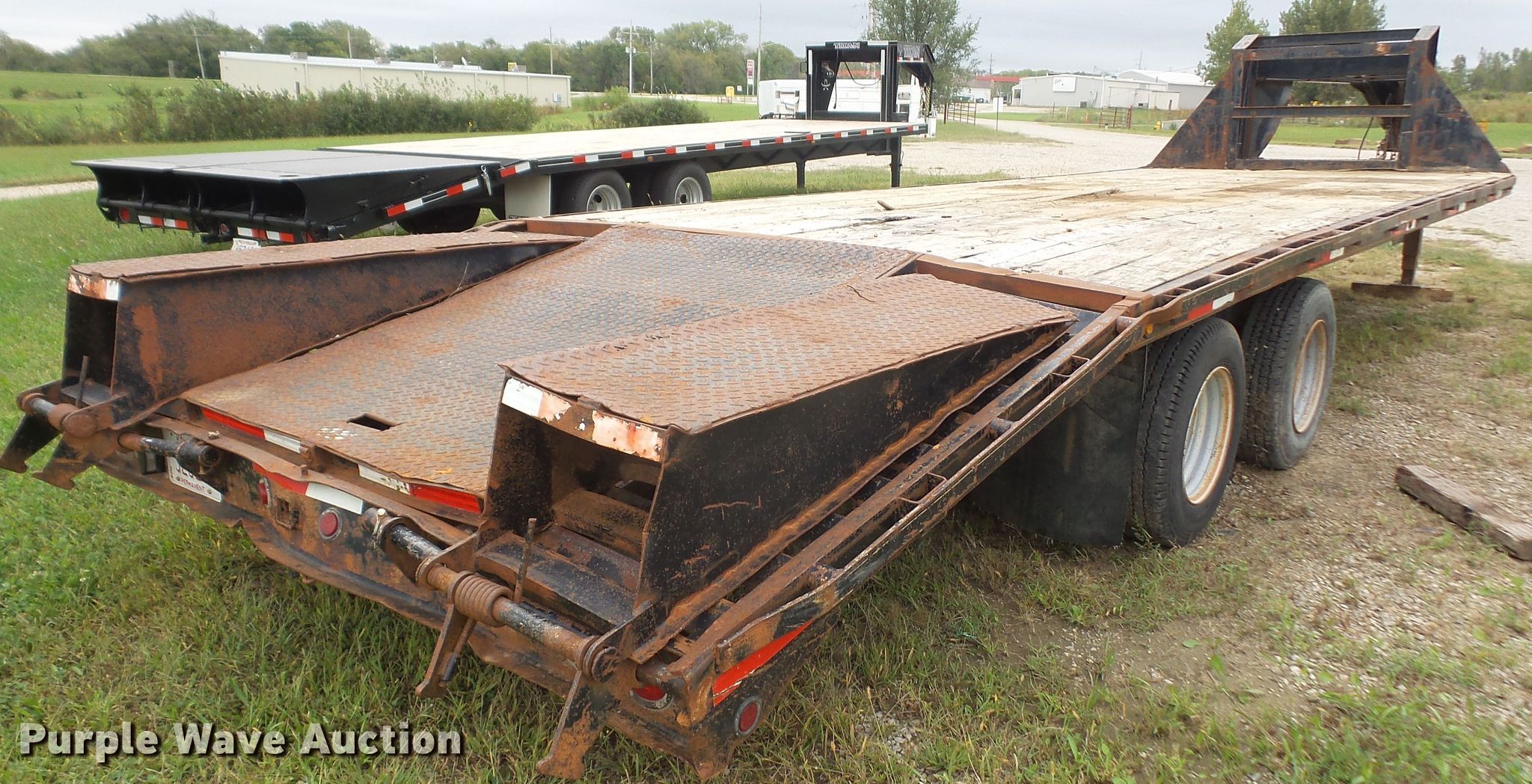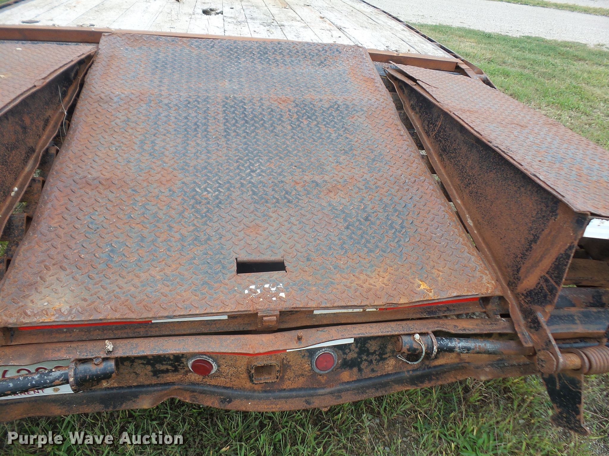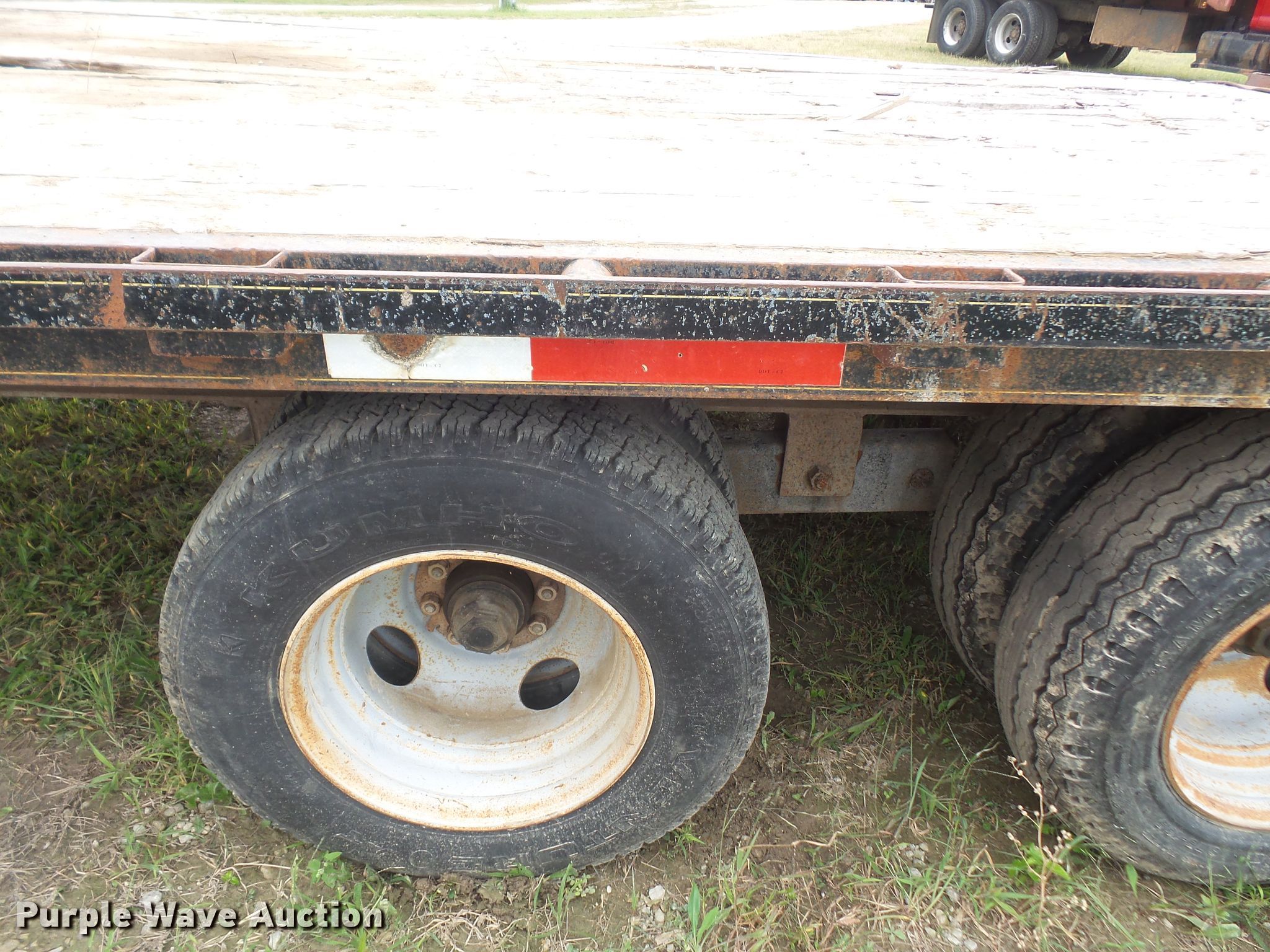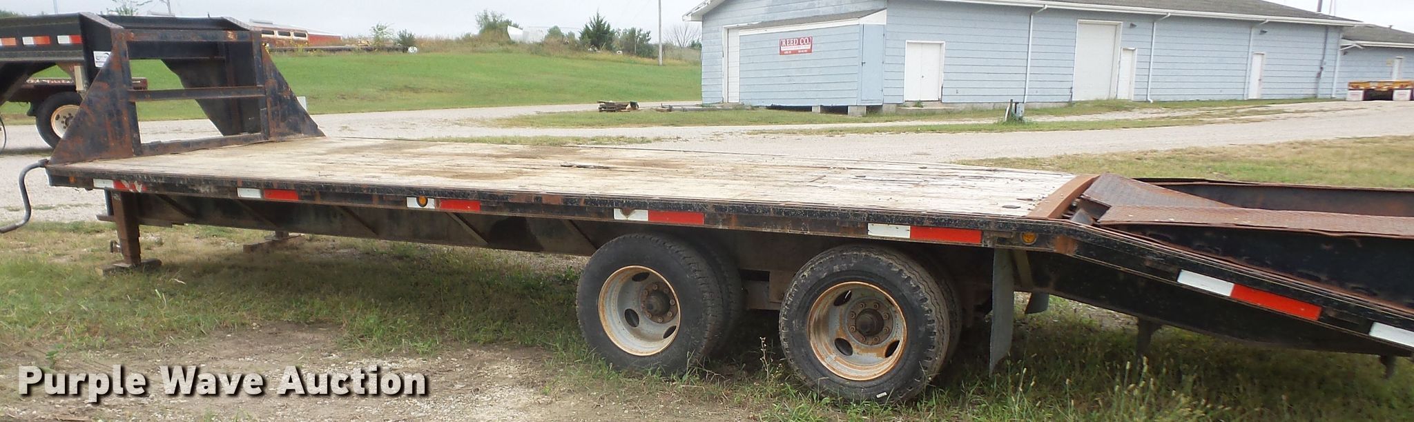 Purple Wave is selling a used Equip. Trailer in Kansas. This item is a 2006 Lamar equipment trailer with the following: 25' overall length, 20'L x 101"W wood deck, 5' tail length, 5'L ramps, Dual leg landing gear, Spring suspension, Tandem axle, 8.75-16.5 tires, GVWR 20,000 lbs, GAWR 10,000 lbs