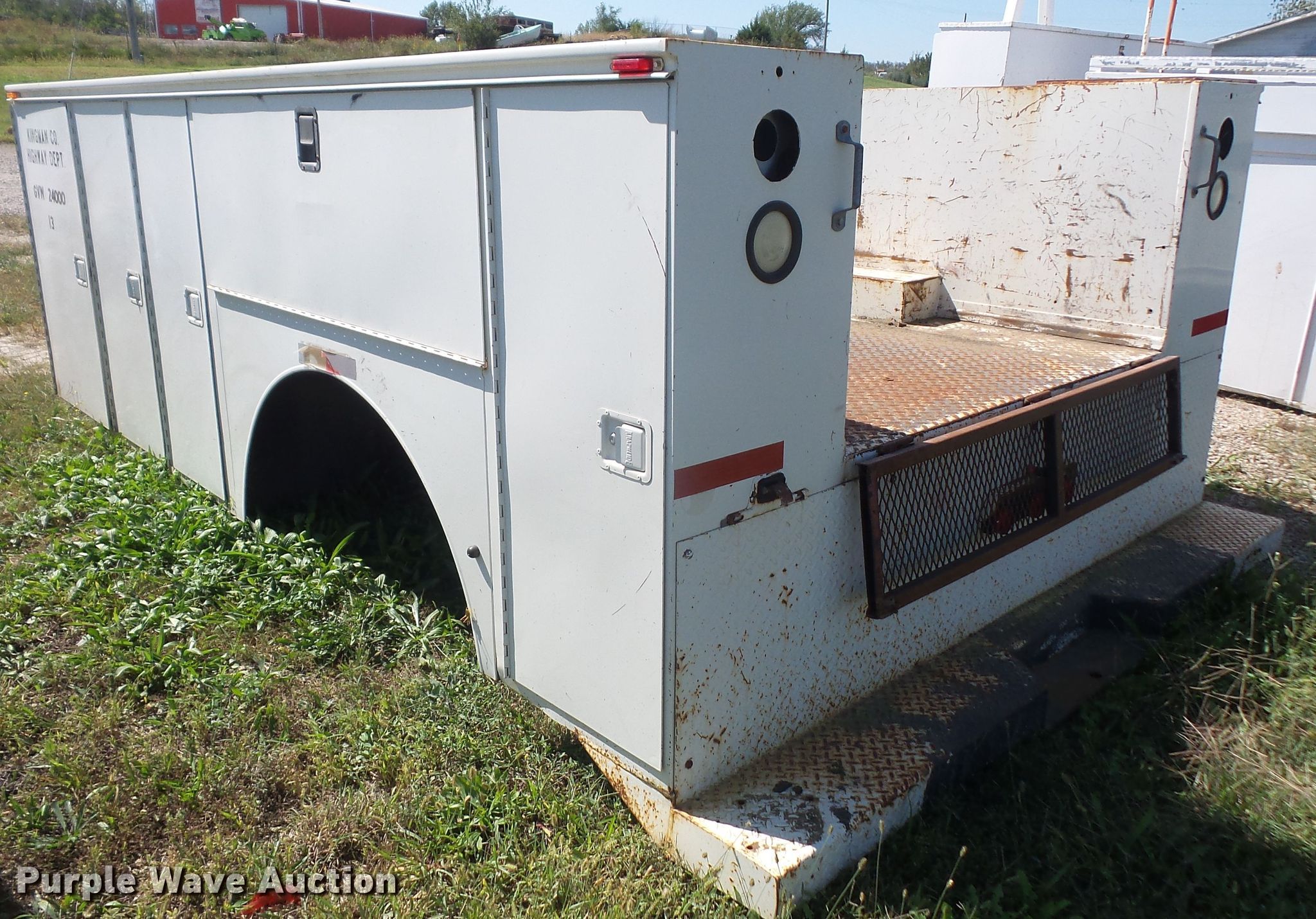 Knapheide utility bed. 12'3"L x 94"W. Reed Company, LLC. 2738 Fauna Rd NW. Lebo, KS 66856