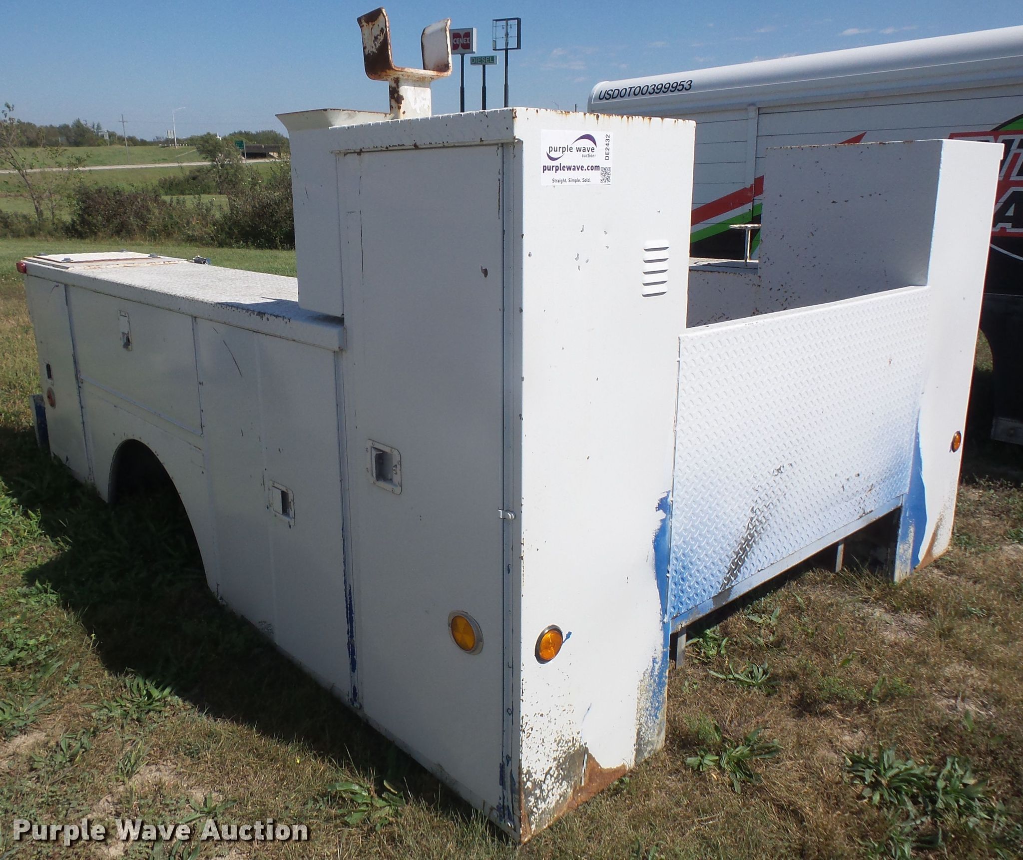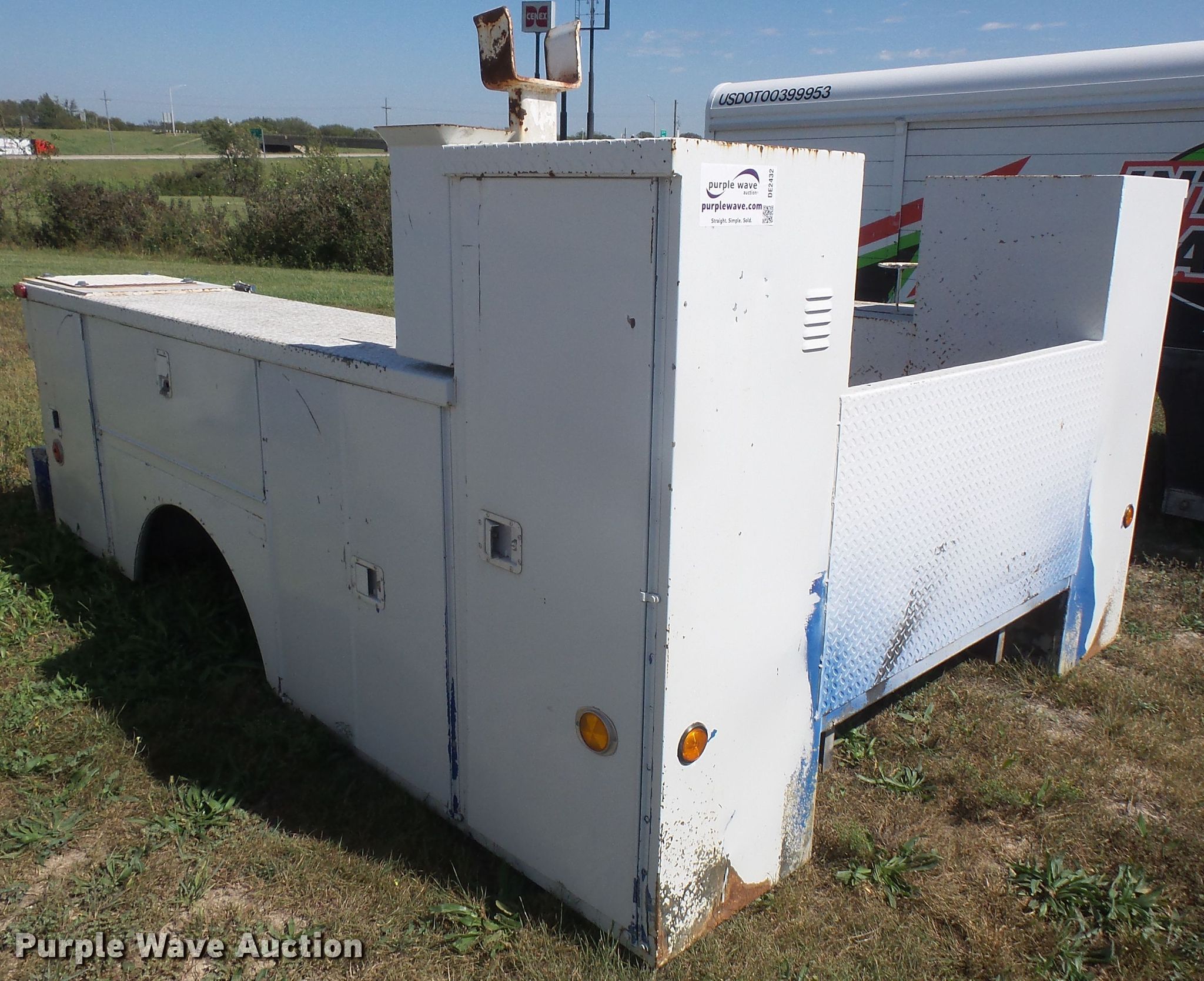 Purple Wave is selling a used Truck Part and Attach. in Kansas. This item is a Adkins utility bed with the following: 11'L x 94"W
