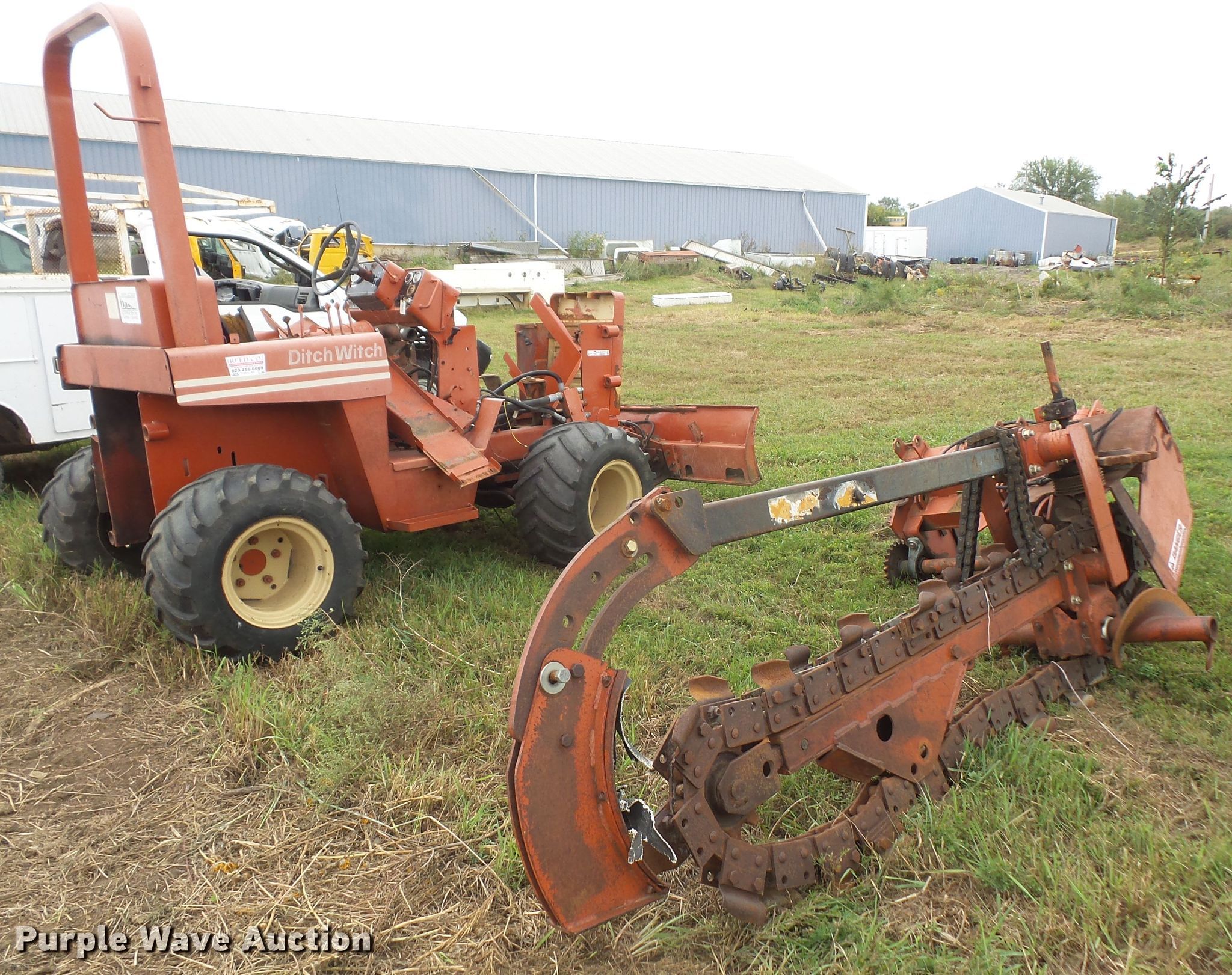 Purple Wave is selling a used Trencher or Rock Saw in Kansas. This item is a Ditch Witch 4010 trencher with the following: 72"W backfill blade, Trencher model A450, 31 x 16.50-15 tires, Non-operational unit, Parts only, No engine