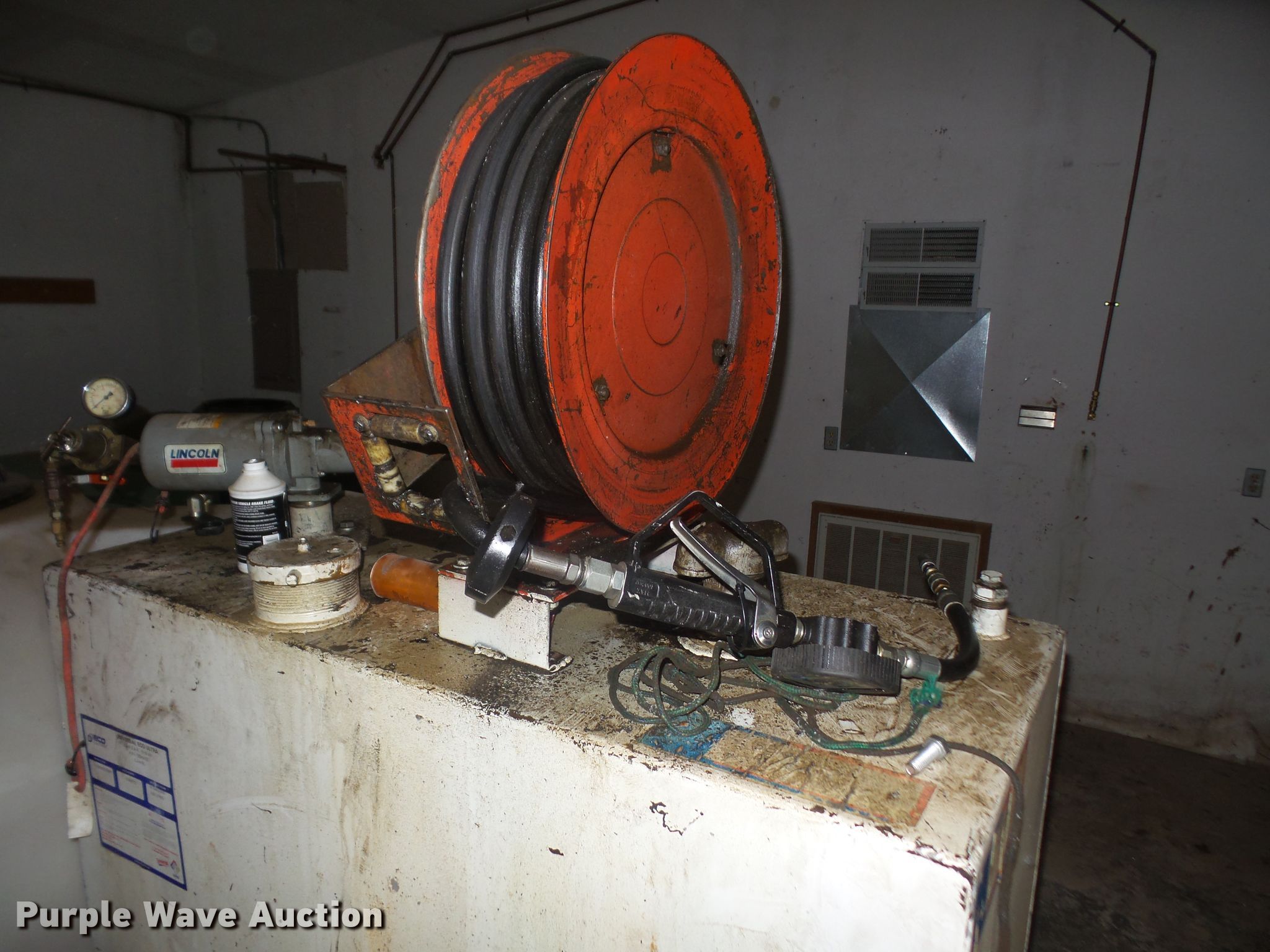 Purple Wave is selling a used Fuel and Lube in Kansas. This item is a (4) lube tanks with the following: (2) 180 gallon, (2) 90 gallon, Pump, Hose reels, Metered guns