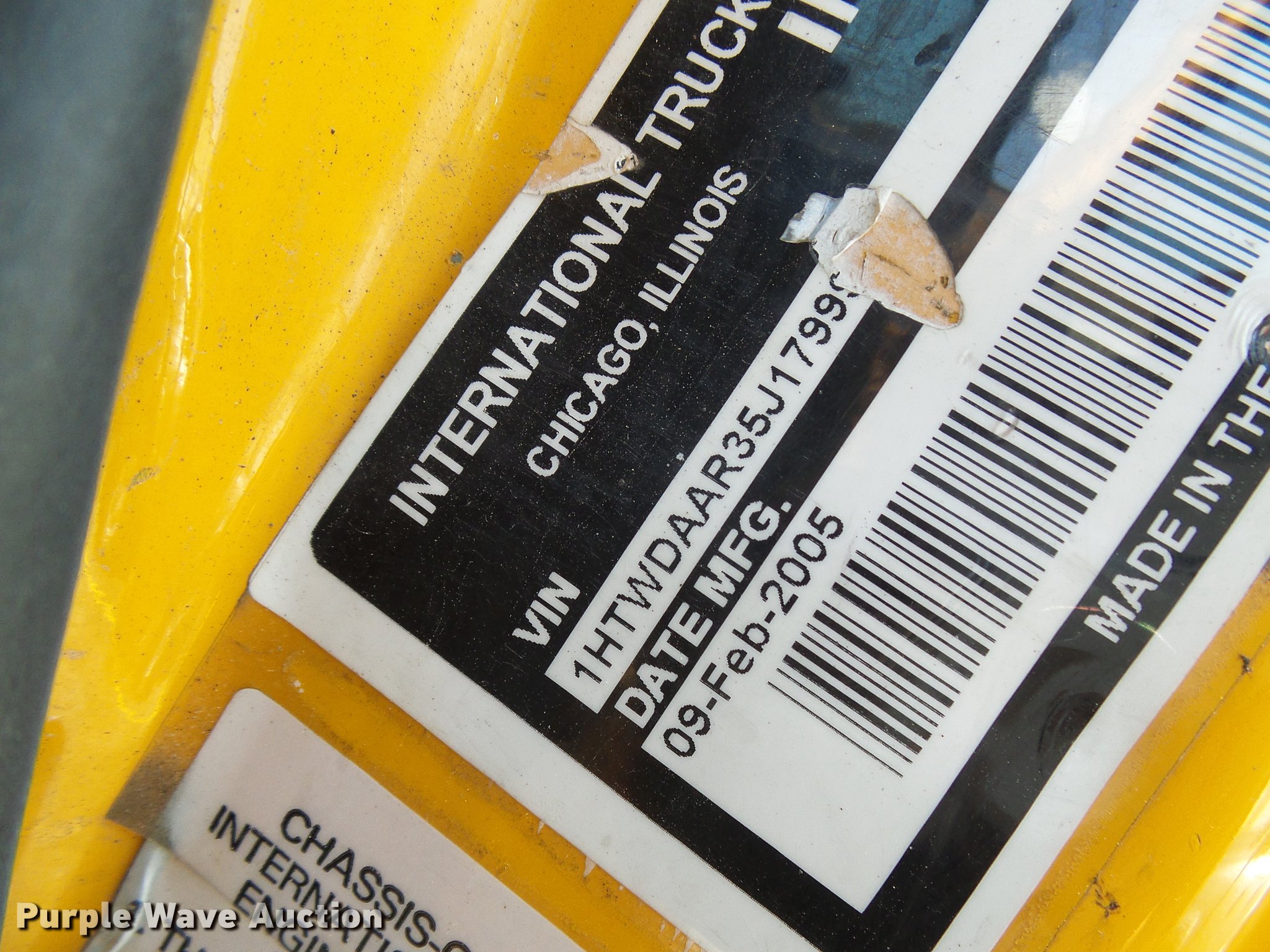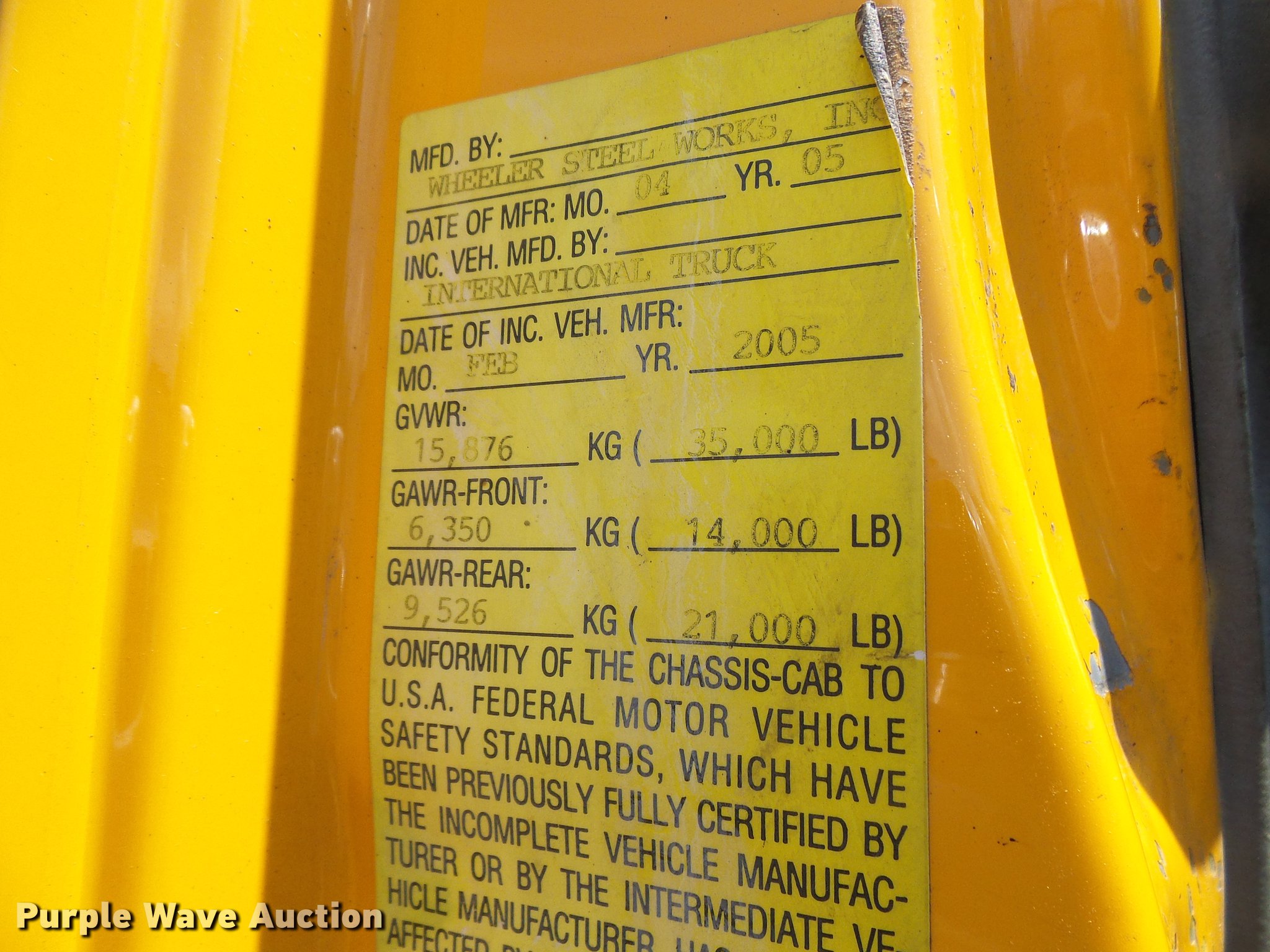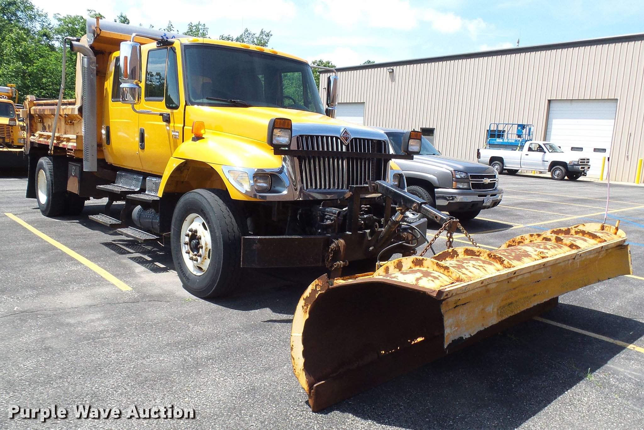 Purple Wave is selling a used Construction Dump Truck in Missouri. This item is a 2005 International 7400 Crew Cab dump truck with the following: 229,785 miles on odometer, 12,862 hours on meter, International DT466 7.6L L6 diesel engine, Allison automatic transmission, Single axle, AC and heat, Cruise, Power windows, Heated mirrors, PTO, Wheeler steel dump bed, 10'L x 8'W, 26" side height, Single ram hoist, Air operated end gate, 11'W snow plow, Spring suspension, Air brakes, 315/80R22.5 front tires, 11R22.5 rear tires, GVWR 35,000 lbs, MODOT ID 7504
