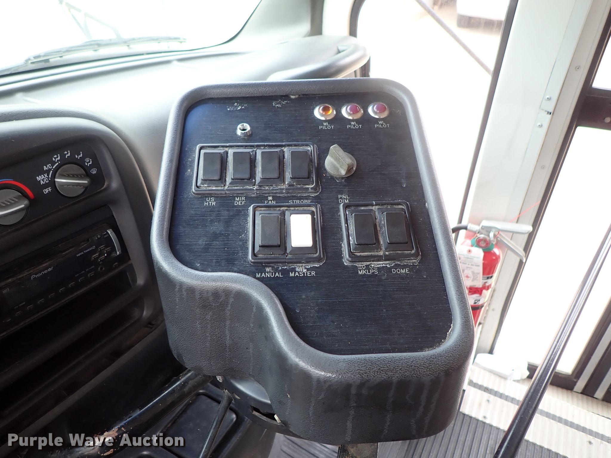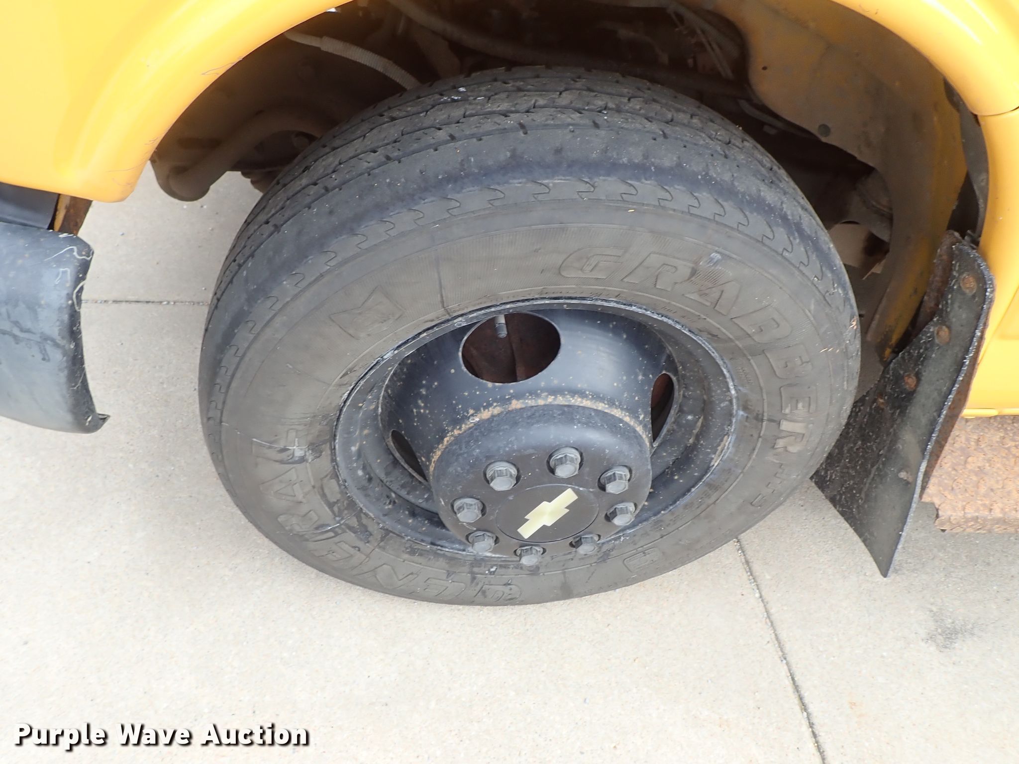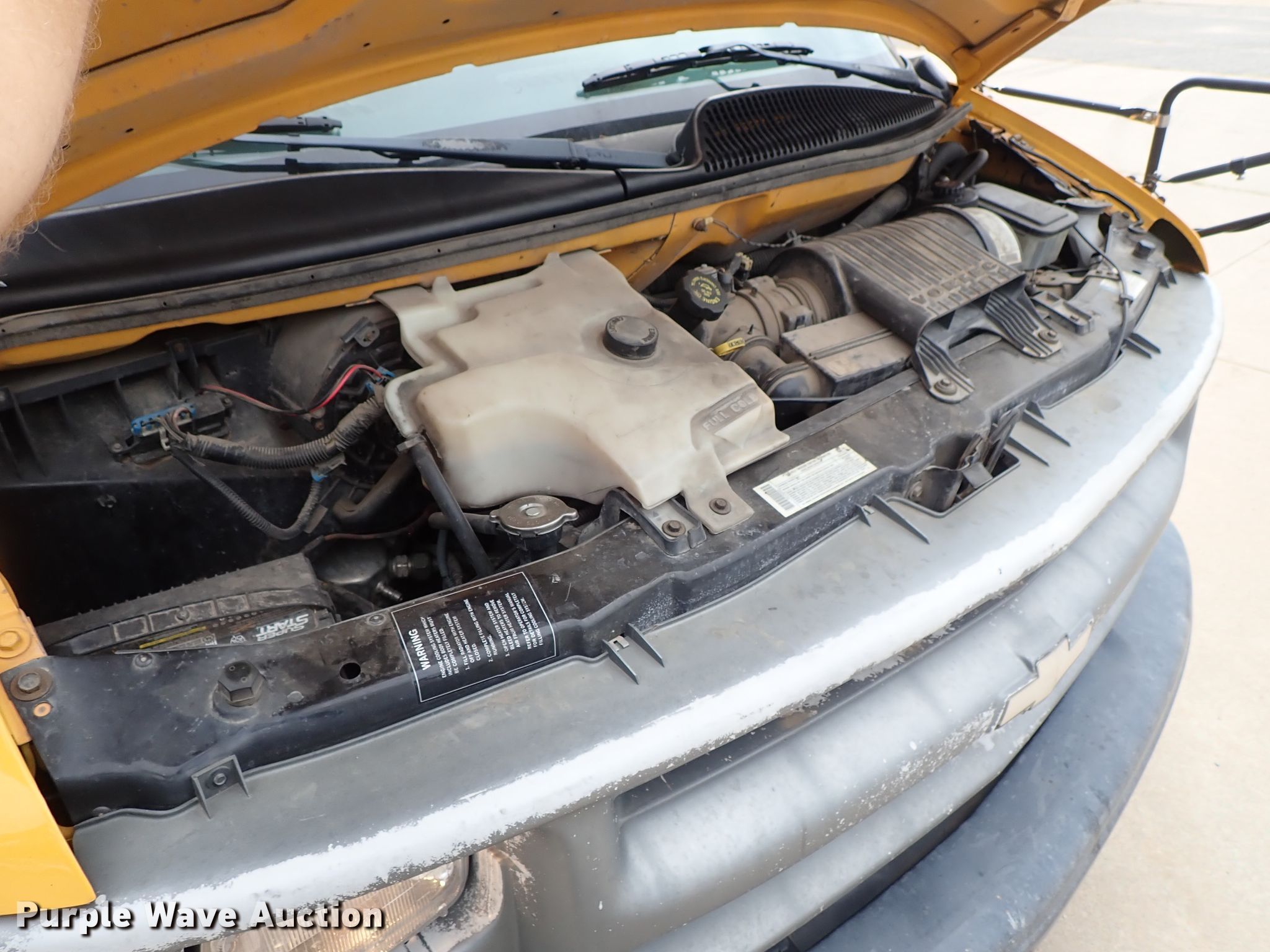 Purple Wave is selling a used Bus in Kansas. This item is a 2002 Chevrolet Express G3500 Blue Bird school bus with the following: 204,054 miles on odometer, 5.7L V8 OHV 16V gas engine, Automatic transmission, Single axle, AC and heat, 14 passenger capacity, Spring suspension, Hydraulic brakes, LT225/75R16 tires, Weak battery, Unit# 29